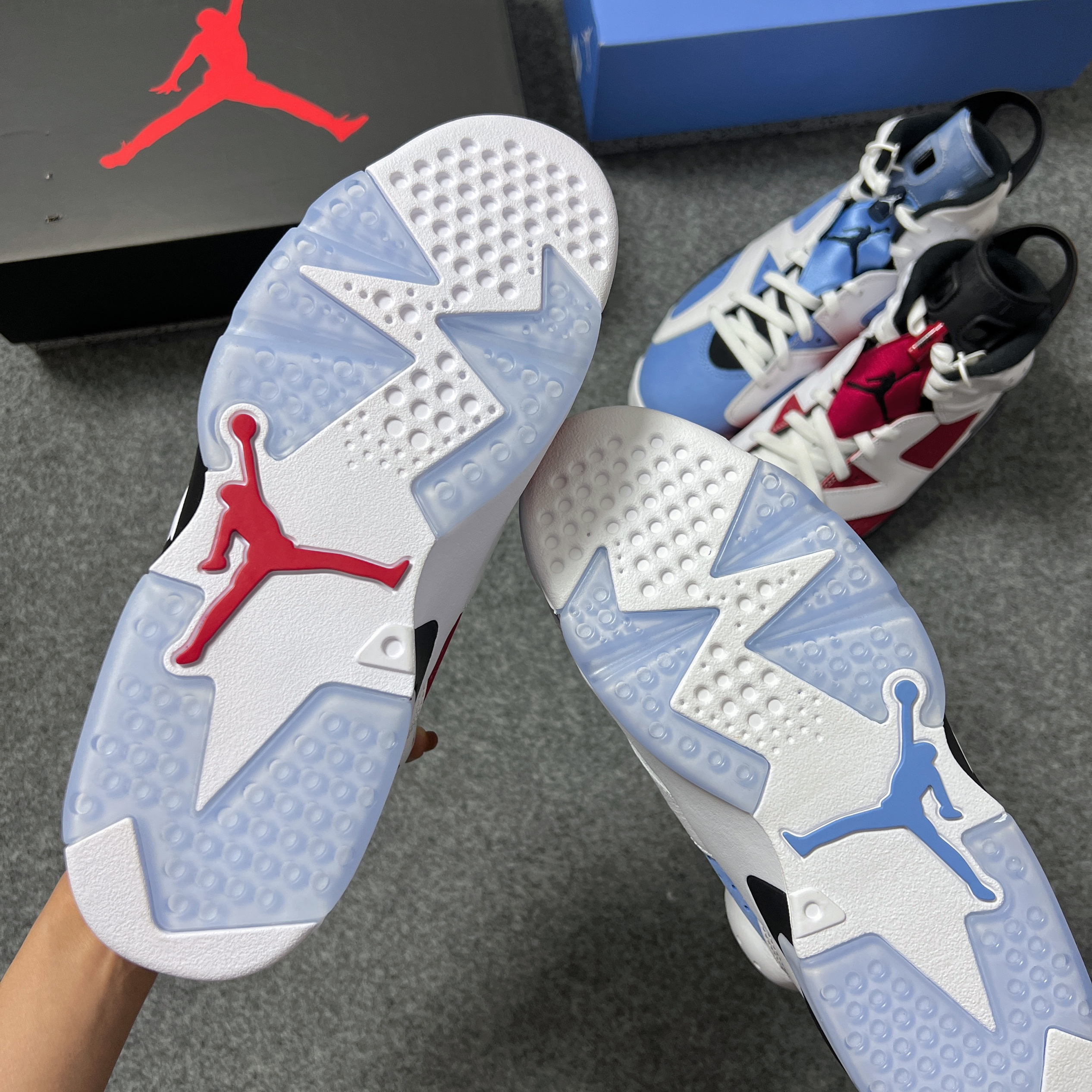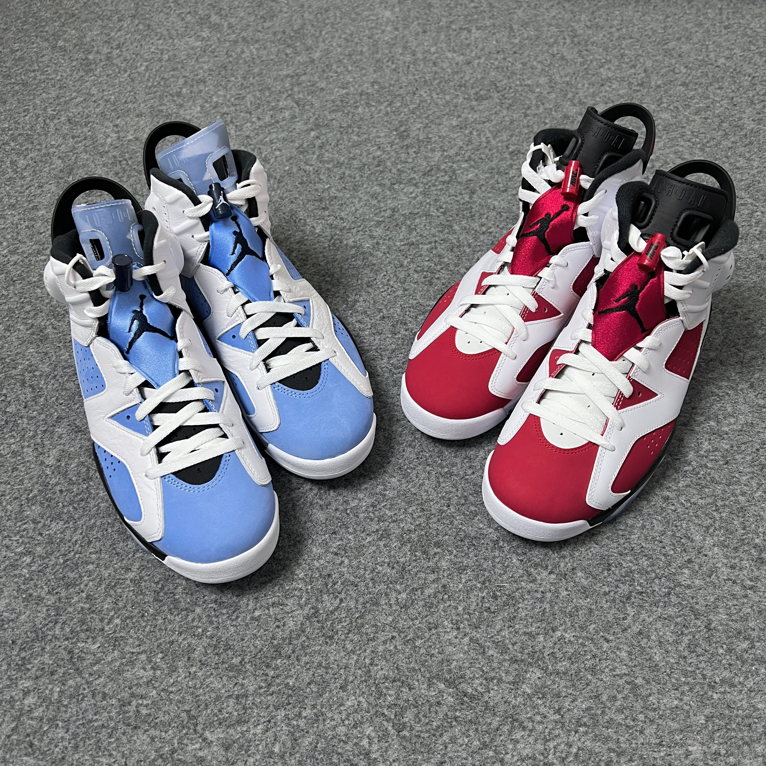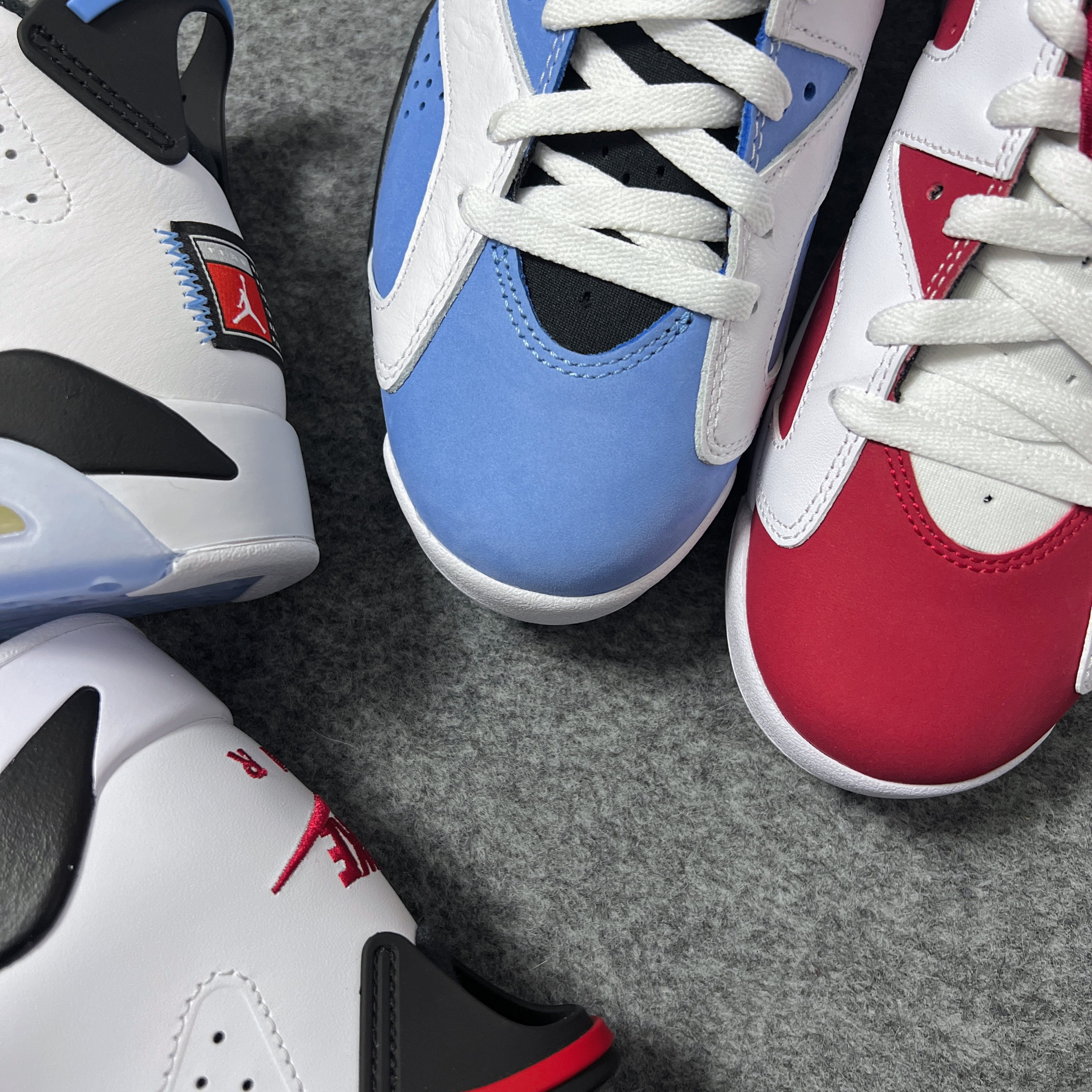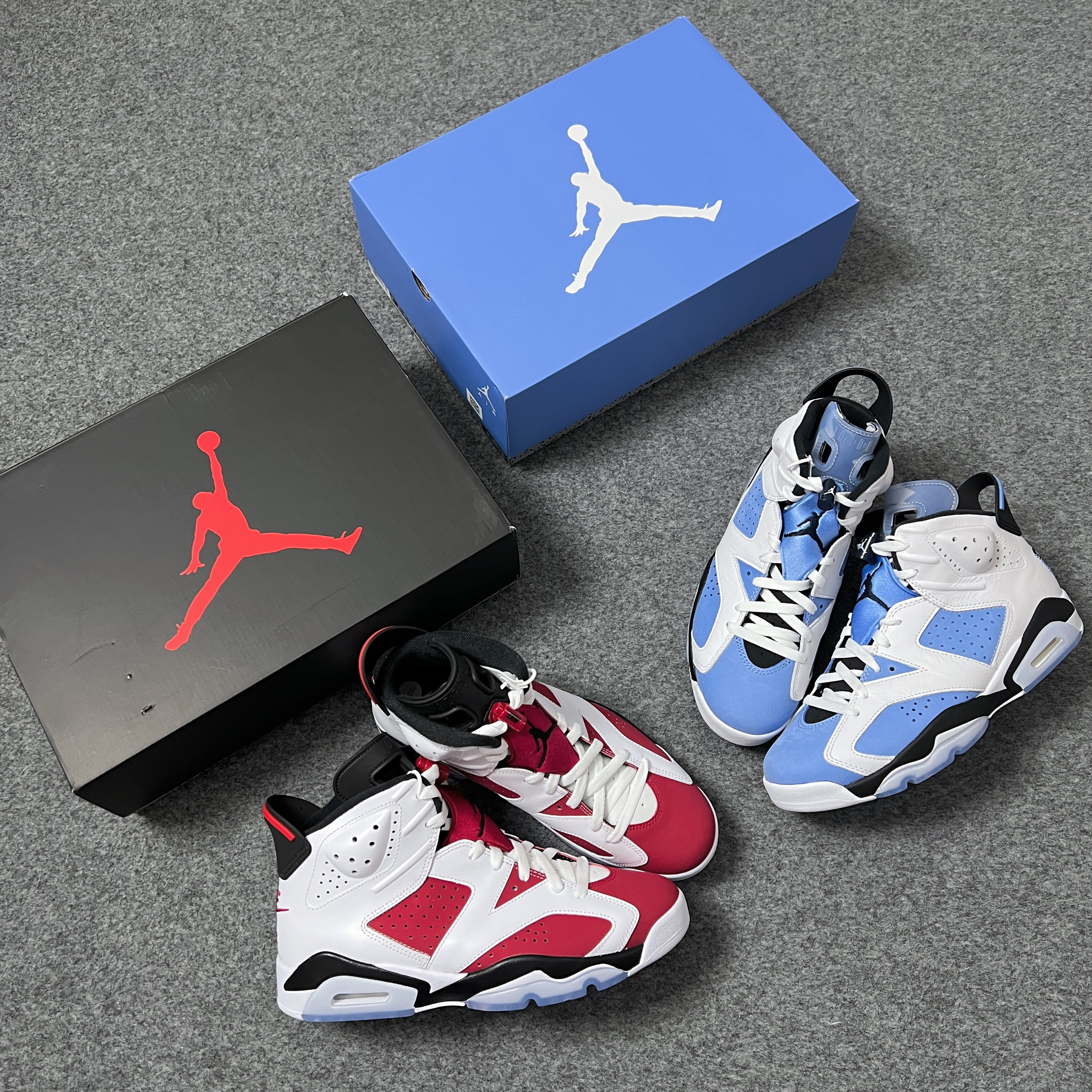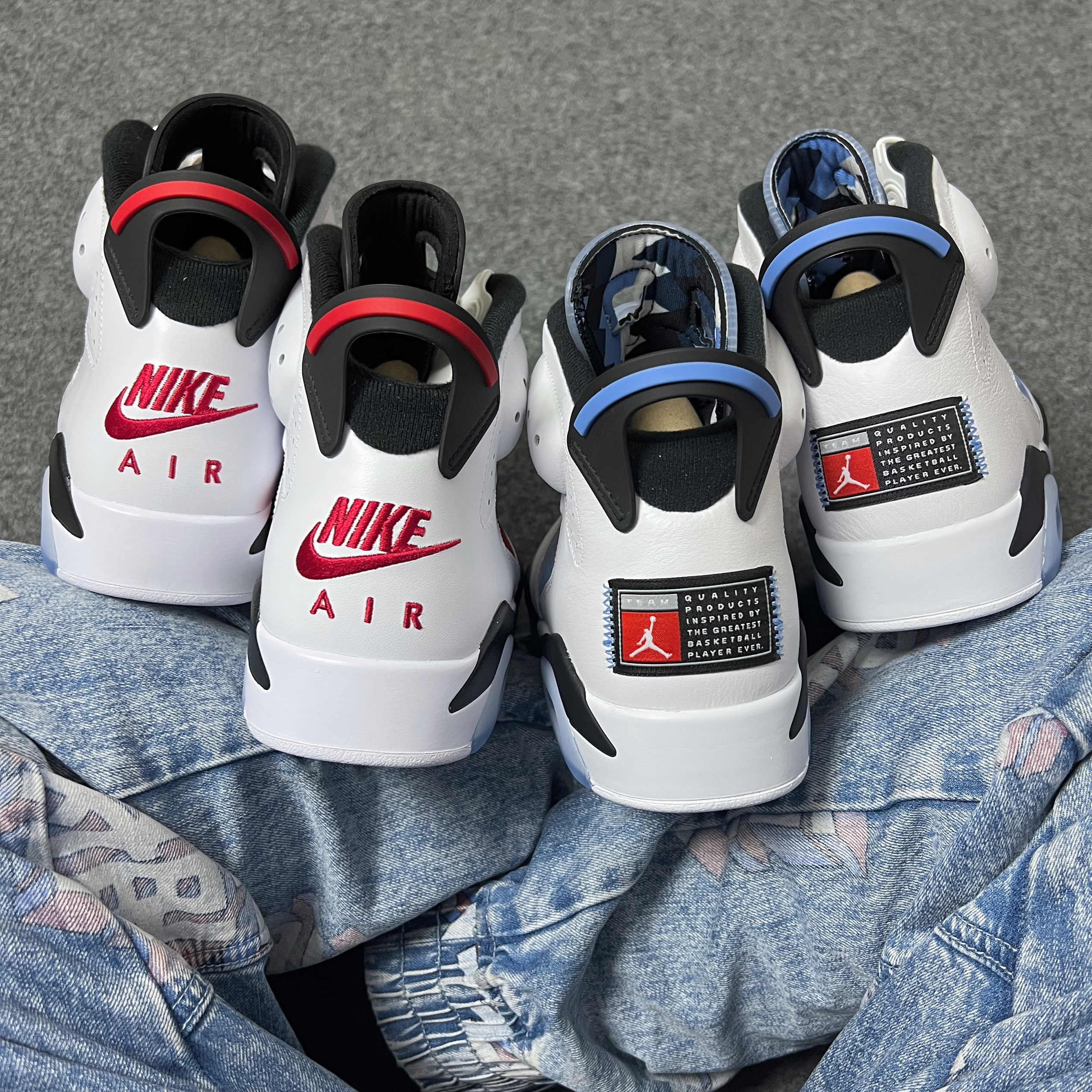 🔸你更喜欢哪个后跟呢? 胭脂红经典刺绣标志 or 北卡蓝球衣下摆标志 我选择经典刺绣✅ 🔸最新发售的AJ6UNC颜值还是非常高的 完全不输胭脂红 两双鞋配色结构完全相同 不过皮质上有些差别 胭脂红的白色皮革更硬但光滑整洁 北卡蓝的白色皮革偏软弹褶皱明显 有没有兄弟敢用这两双鞋搭配鸳鸯 如果是五年前或许我还可以 不过现在真的老了