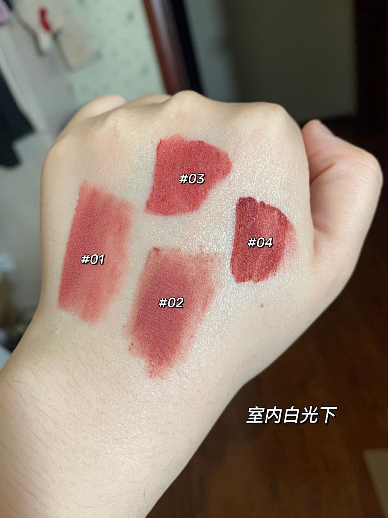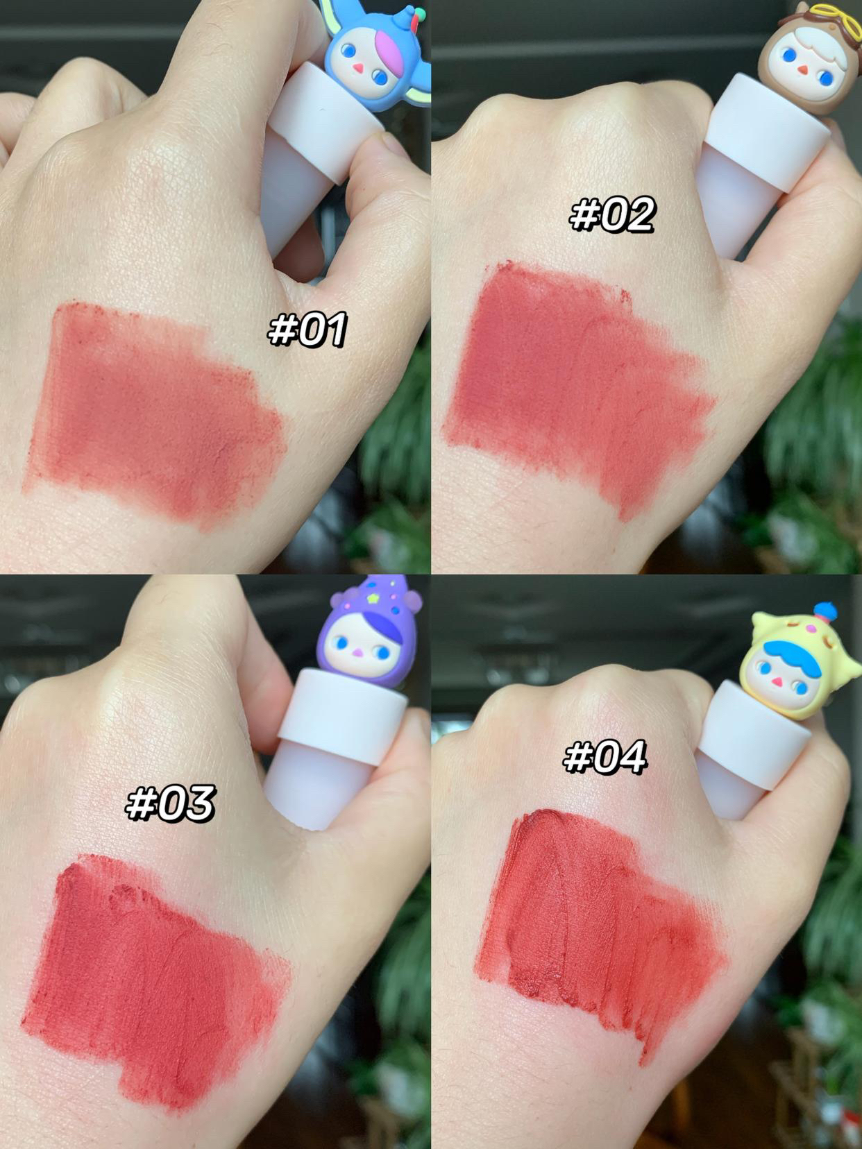 橘朵小奶泥真的可爱爆炸!!! 橘朵泡泡玛特联名盲盒小奶泥唇泥4只装 雾面哑光的唇泥质地! 贼爱这种雾蒙蒙的感觉!! 颜色都特别元气和日常~上面的娃娃头贼拉可爱! 我最喜欢03和04提气色!一个是那种红豆沙色 一个是偏橘一点的枫叶🍁色!而且质地特别顺滑 不会干和卡纹!01可以当打底~都超级好看 全员美丽子!!都是iphonexr后置原相机试色 姐妹们理性种草哇!