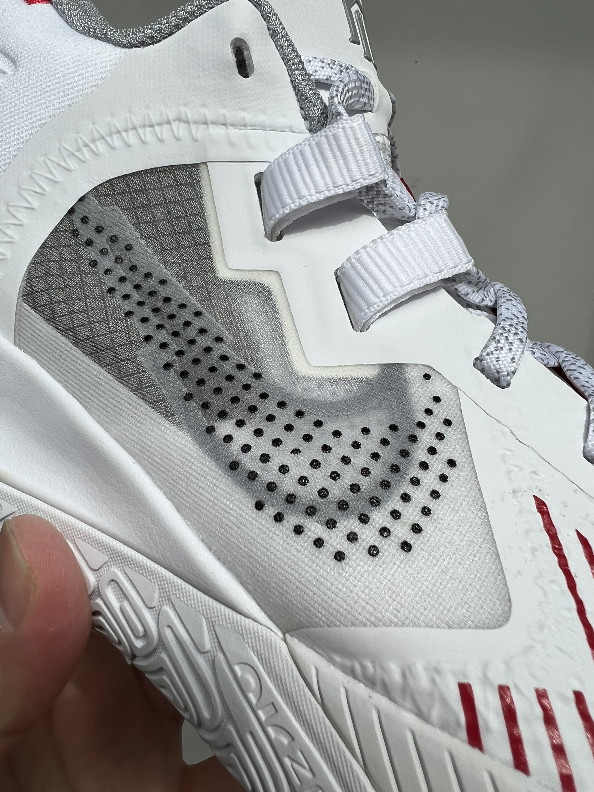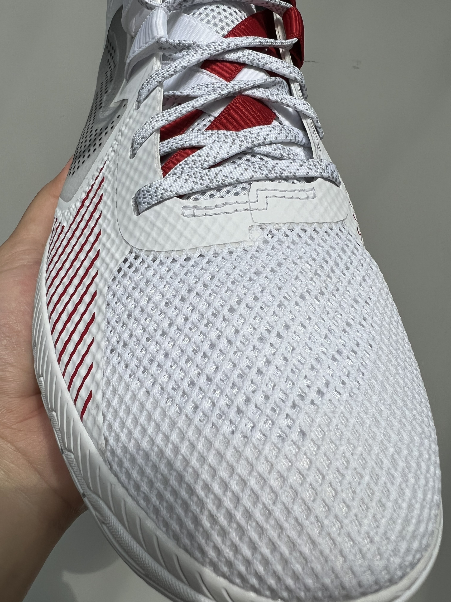 今天给大家带来一双欧文支线实战鞋 Nike Kyrie Flytrap 5 白红配色 了解 Flytrap 4 的朋友们一定会说太像了。 我认为这款 Flytrap 5 就是前作的升级版。 鞋子依旧采用了中帮设计,比之前更有设计感。 鞋面 一改之前大面积透明mono纱设计。采用了编织网格和mono纱的混合设计,并且增加了大面积的热熔压胶。这种设计极大的提升了鞋面的强度和鞋子整体的支撑性,同时还...