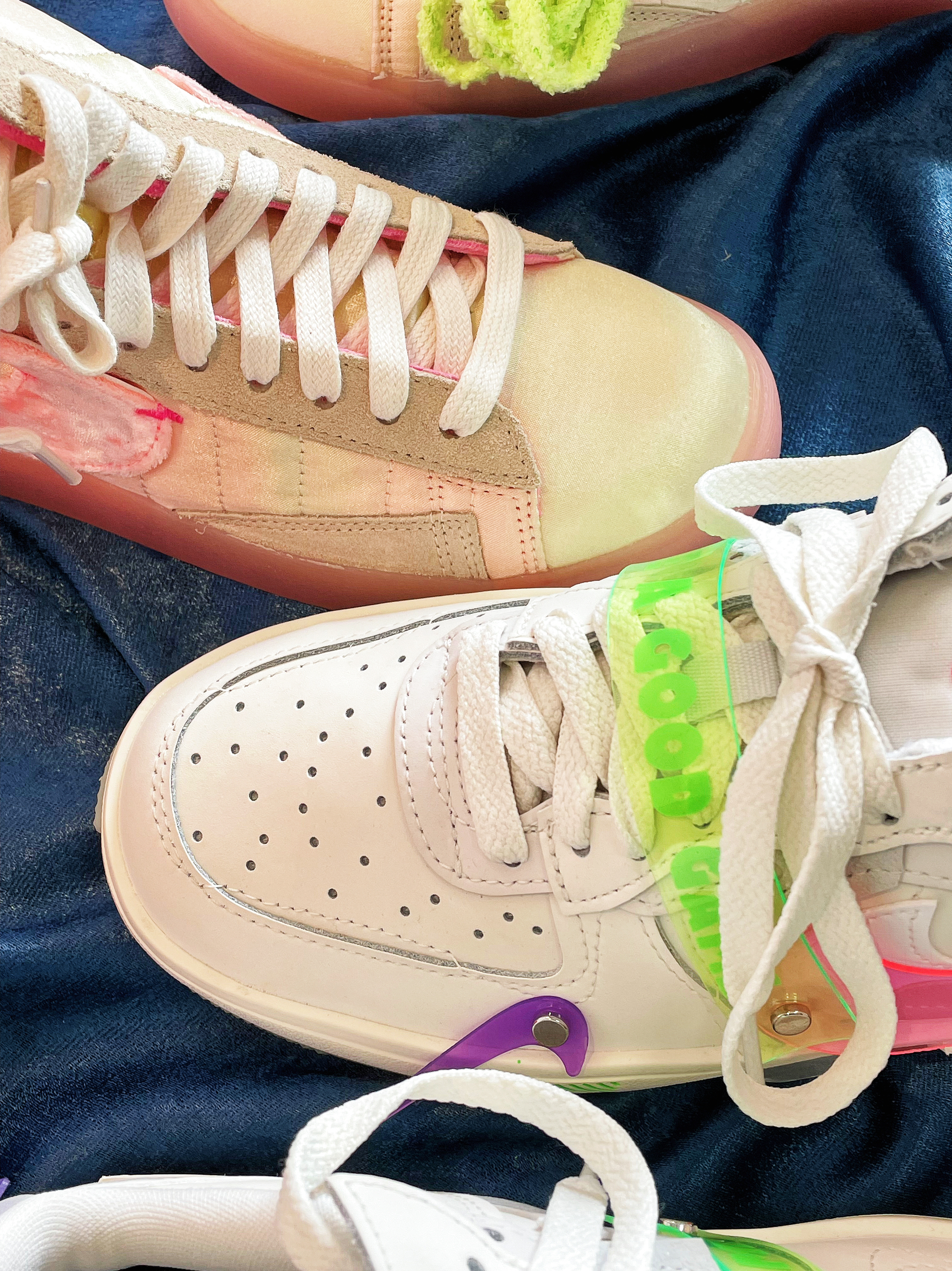 👟名称:Nike air Force 1 Fontanka "Have a Good Game"款白色夜光电竞主题 🎊鞋子整体采用白色为主色调,加入了各种颜色的贴片来装饰,特别的美观时尚。 🎊在材质上鞋子鞋面采用了皮革材质,鞋底采用了橡胶底材质,防滑耐磨,上脚超级百搭,脚型也是相当合适。 🎊鞋面上的“Have a Good Game”荧光色字母链条显得格外亮眼,并巧妙搭配大小Swoosh标志...
