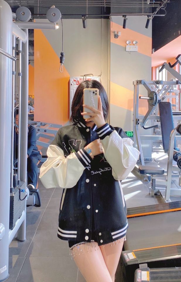 入了一件敲好看的棒球服太好搭了 胳膊上是pu拼接厚度正好适合春季版型显瘦设计很合身 不像有些版型穿上松松垮垮肩部撑不起来显 胖 黑白配色百搭之王棒球服真的穿不腻yyds 宽松的棒球服+紧身短裤等于下半身失踪 配上老爹鞋秒变大长腿。 百变得物女孩 穿搭研究所