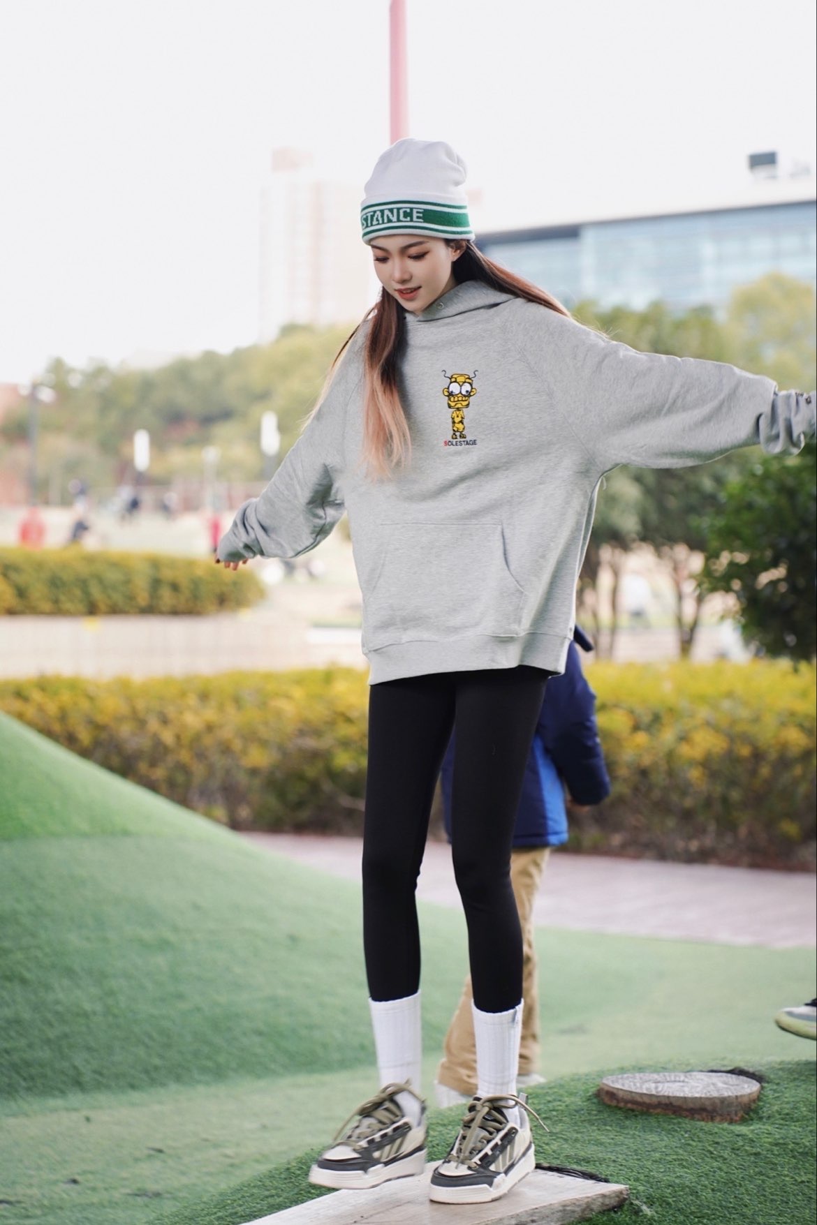 这个冬天上海的雨天也太多了!好不容易出个太阳赶紧和家人们一起出门晒晒☀️ 春天的见证看草坪就知道啦!绿芽芽都冒出来了🌱去体育公园走一走,长那么大还是喜欢玩滑梯🦥跟小盆友们抢滑滑梯好有意思!!一起拍了张照居然格外配合☺️太可爱勒~ 今日穿搭就像现在的小草跺冒绿芽芽❇️白绿色冷帽可以说入春必备,满满的生机~上jio球鞋首尾呼应,不同的绿色碰撞出和谐的视觉感受✨ 天暖和了就多出去走走叭~看看绿色💚...