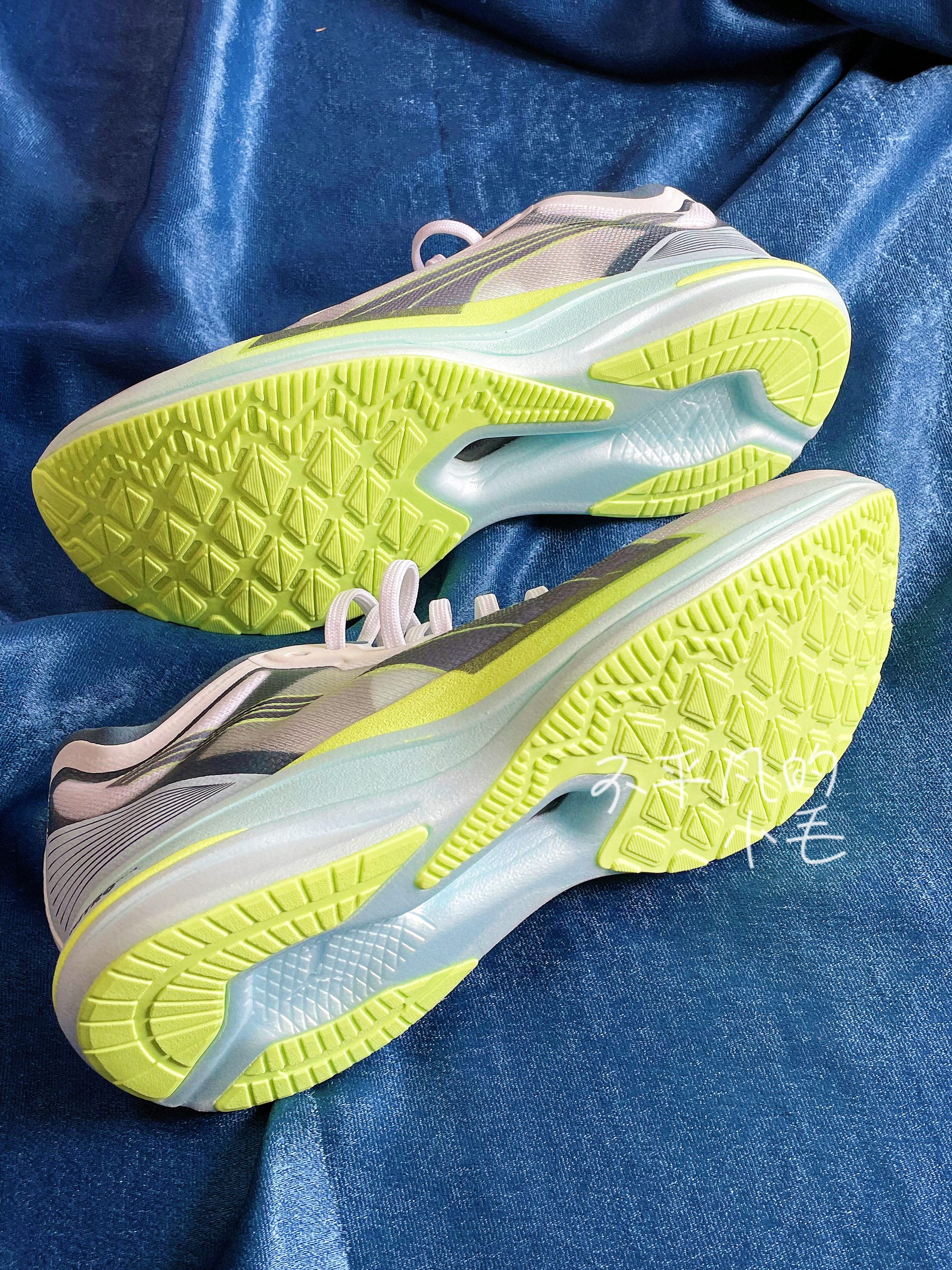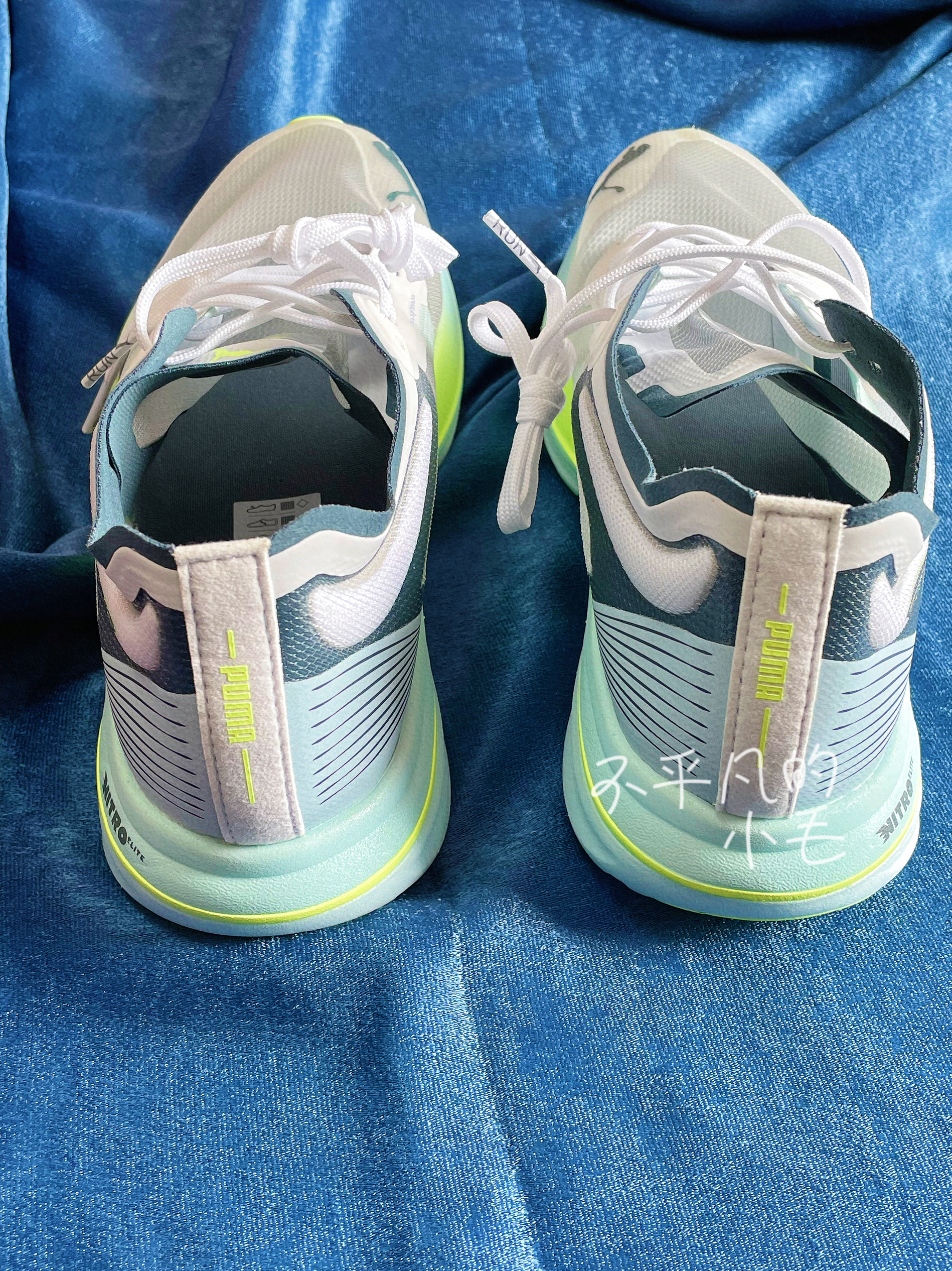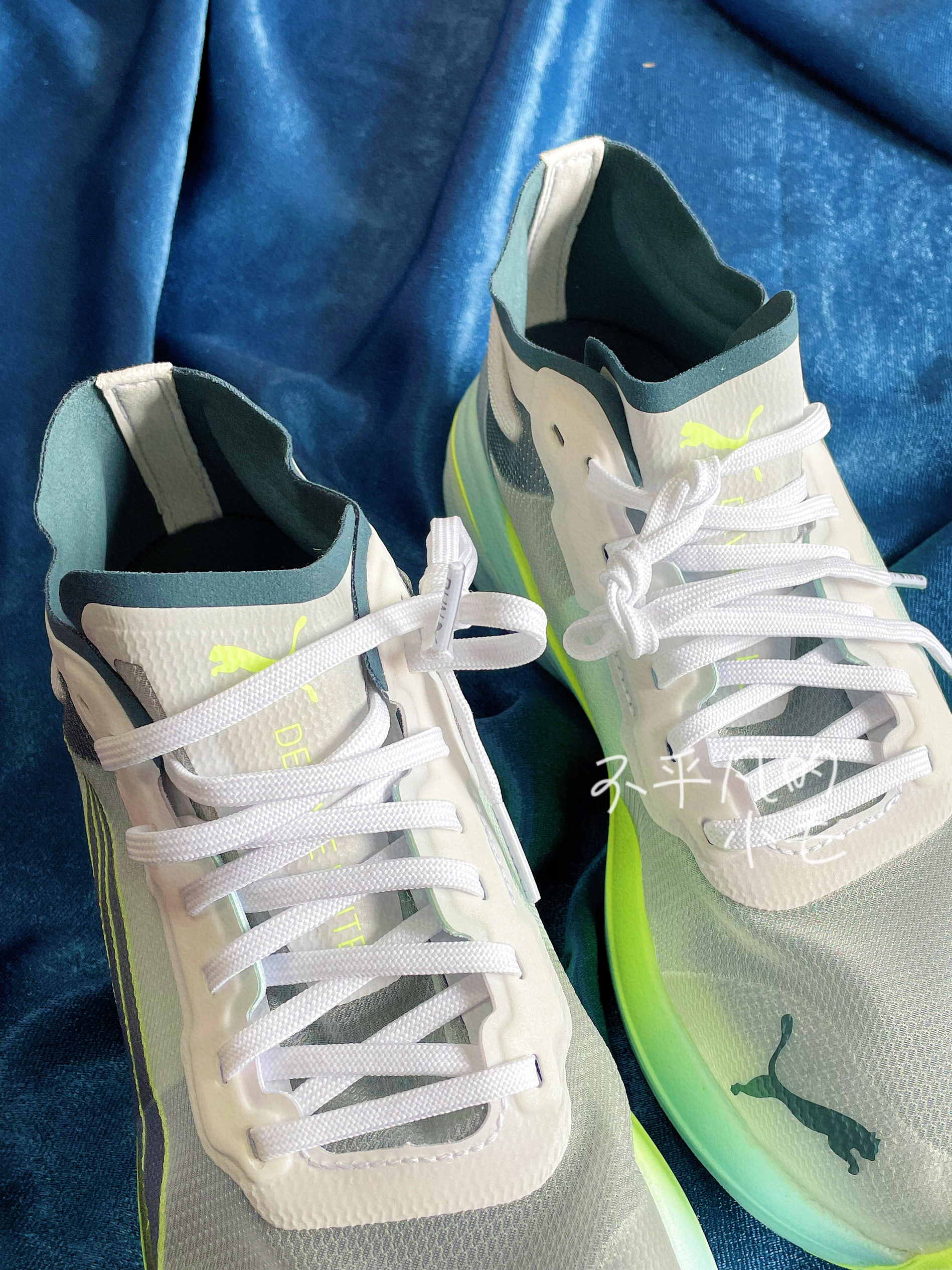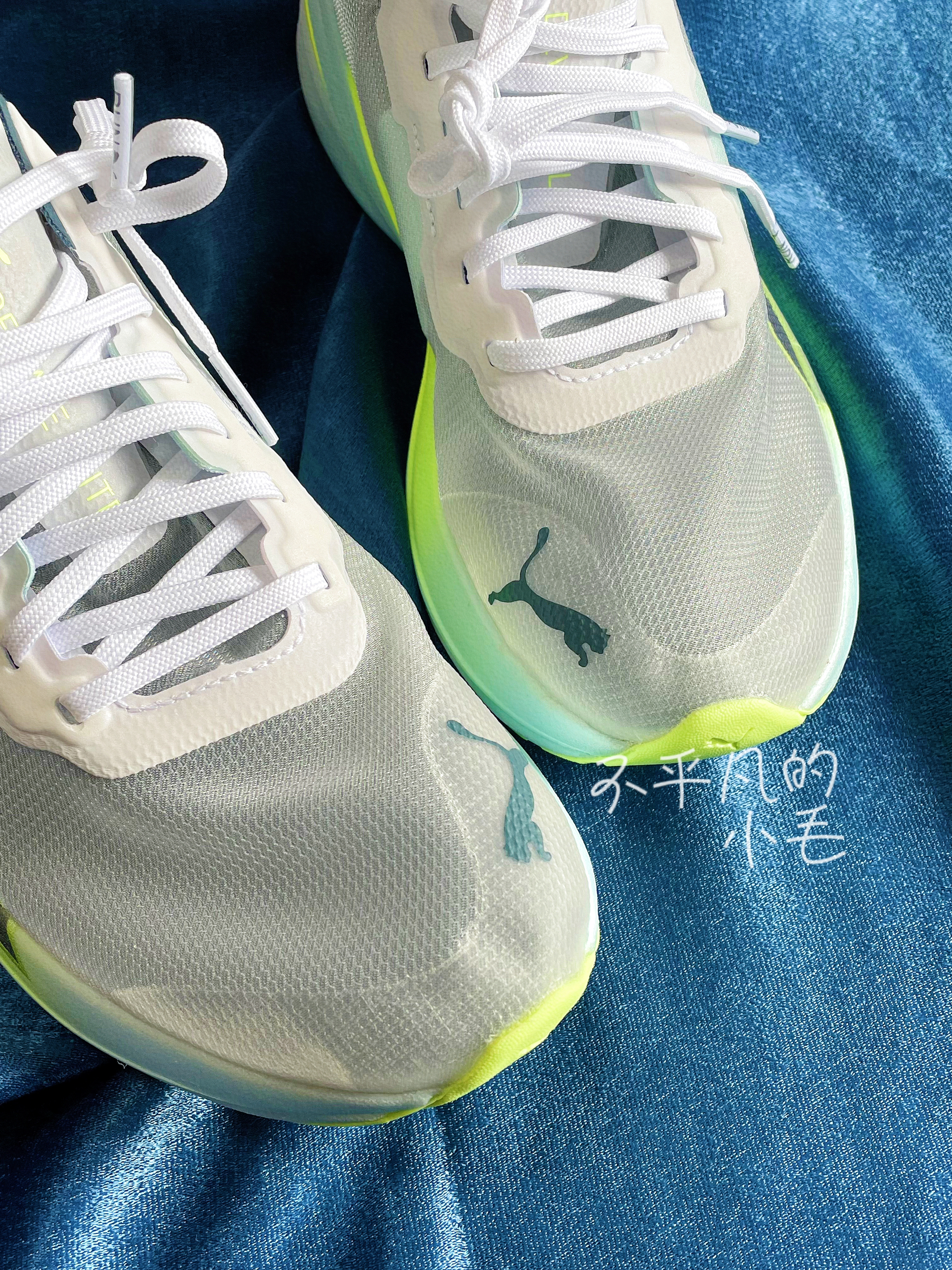 👟名称:Puma Deviate Nitro Elite Racer低帮跑步鞋灰绿蓝 ✅鞋子刚到手里第一感觉就是这双鞋子上脚肯定就像穿了一层纱一样透气,肉眼可见的透气孔,真的太舒服了。 ✅鞋子整体采用了灰白色搭配,加上荧光绿的点缀显得特别的清新,鞋头出来两个对称的彪马图案,特别的经典时尚。 ✅鞋底的回弹效果也是不错的,但是这双鞋子的价格确实有点上升🔝上脚确实舒服。