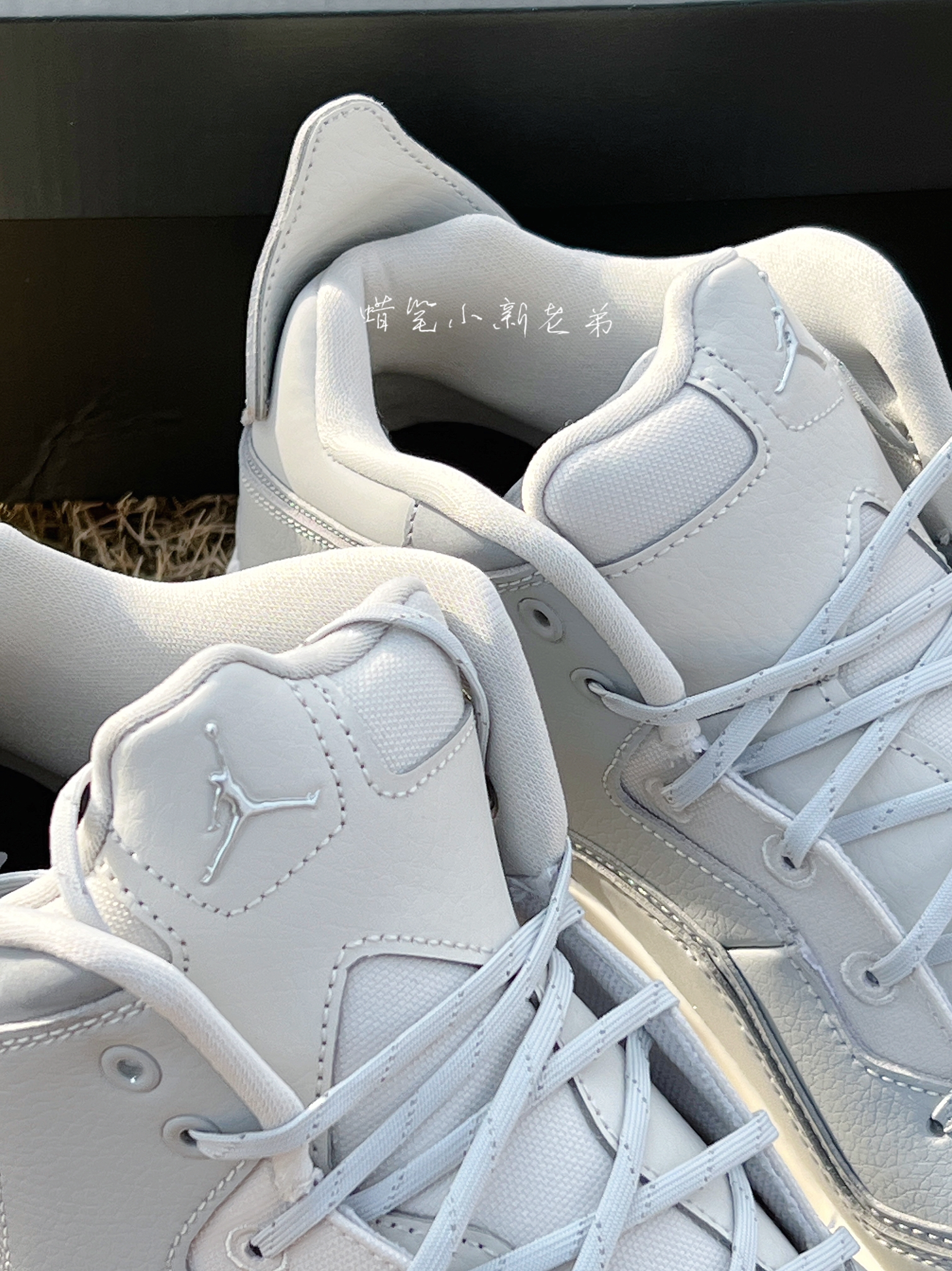 Air Jordan Courtside 23 灰色 鞋子整体采用了灰色,中底部位白色点缀,鞋口处和鞋舌部位都有着银色飞人标志,鞋身采用二层牛皮➕头层牛皮材质组成,质感透气都很不错,可视化Nike Air缓震配置,鞋底采用了橡胶材质,适合春天穿的一款鞋子,很好搭衣服