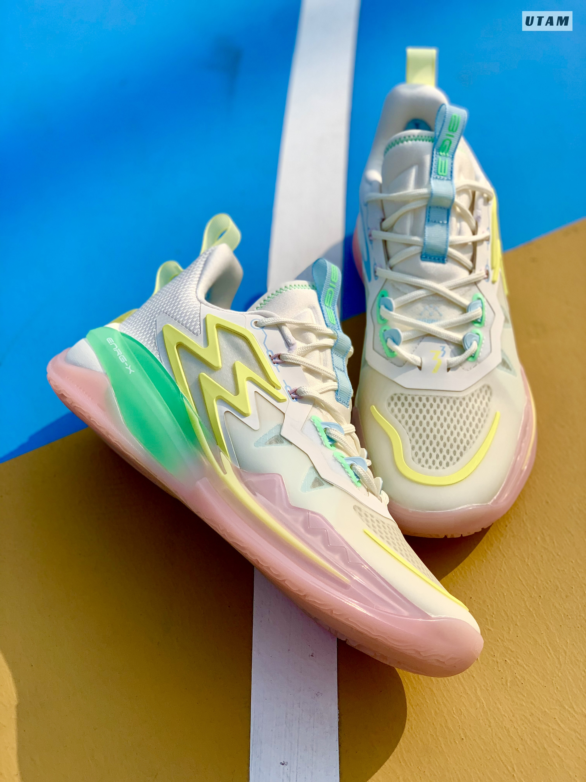361°big3 III来了,共有四个首发配色,四款配色都充满夏日清新气息。 另外两款微重力和地球日配色,仅在线下发售。 作为361°第一款低帮旗舰后卫篮球鞋,big3 III将由丁威迪代言。 四款线上的首发配色,第一眼最吸引Rookie君的是晴空配色。 big3 III的上市和前代间隔了一年多时间,外观造型来自全民共创计划。 除了耐看的外观造型,科技方面也进行了全方位升级,上脚后最惊艳的是鞋楦...
