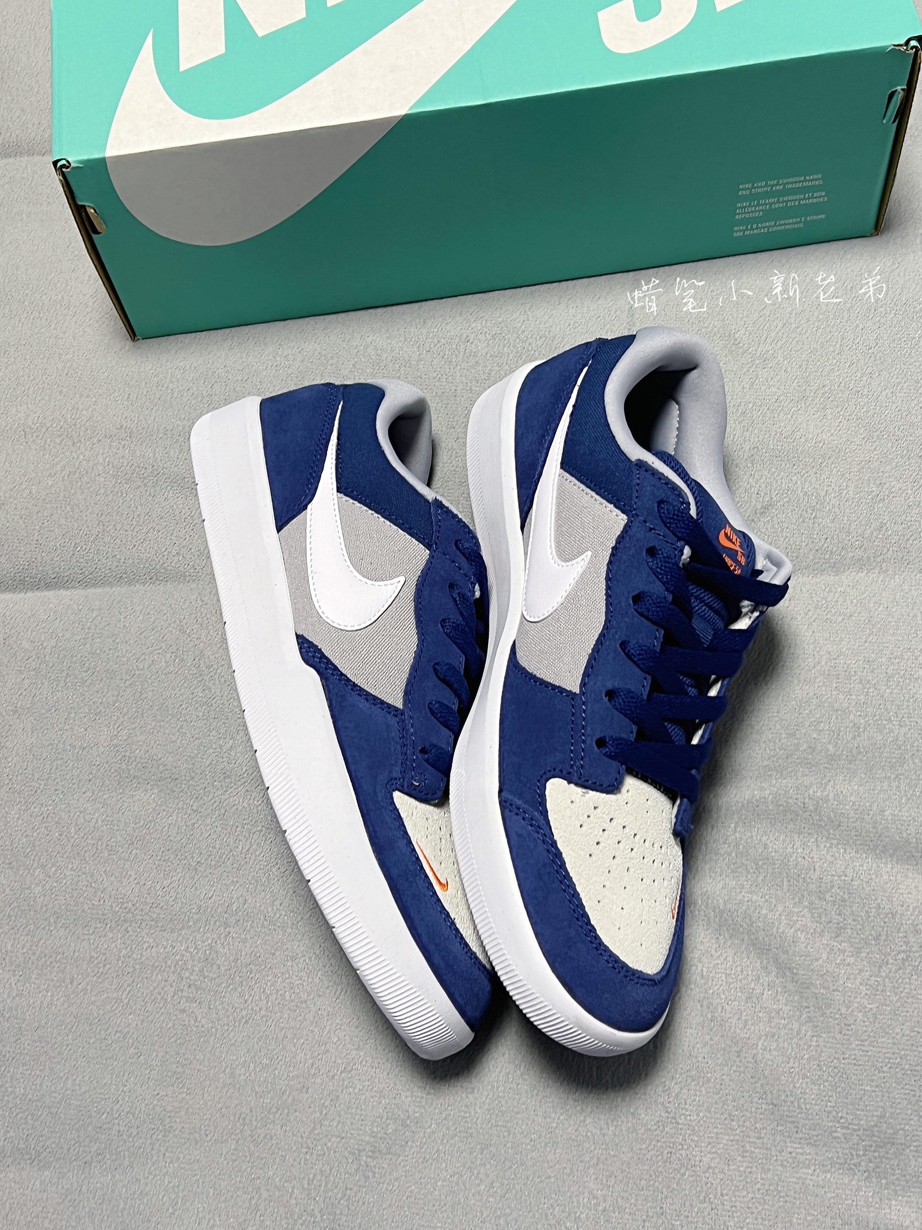 Nike SB Force 58 复古休闲板鞋 灰蓝 男女 同款 鞋子整体由灰色➕蓝色组成,鞋身Swoosh采用了白色,鞋头部位还有着橙色小钩子点缀,鞋子采用了帆布材质➕翻毛皮材质组成,鞋底部位采用了橡胶材质,非常好看的一款板鞋,颜值超高,缺点就是脚感比较一般