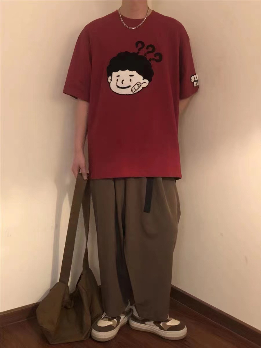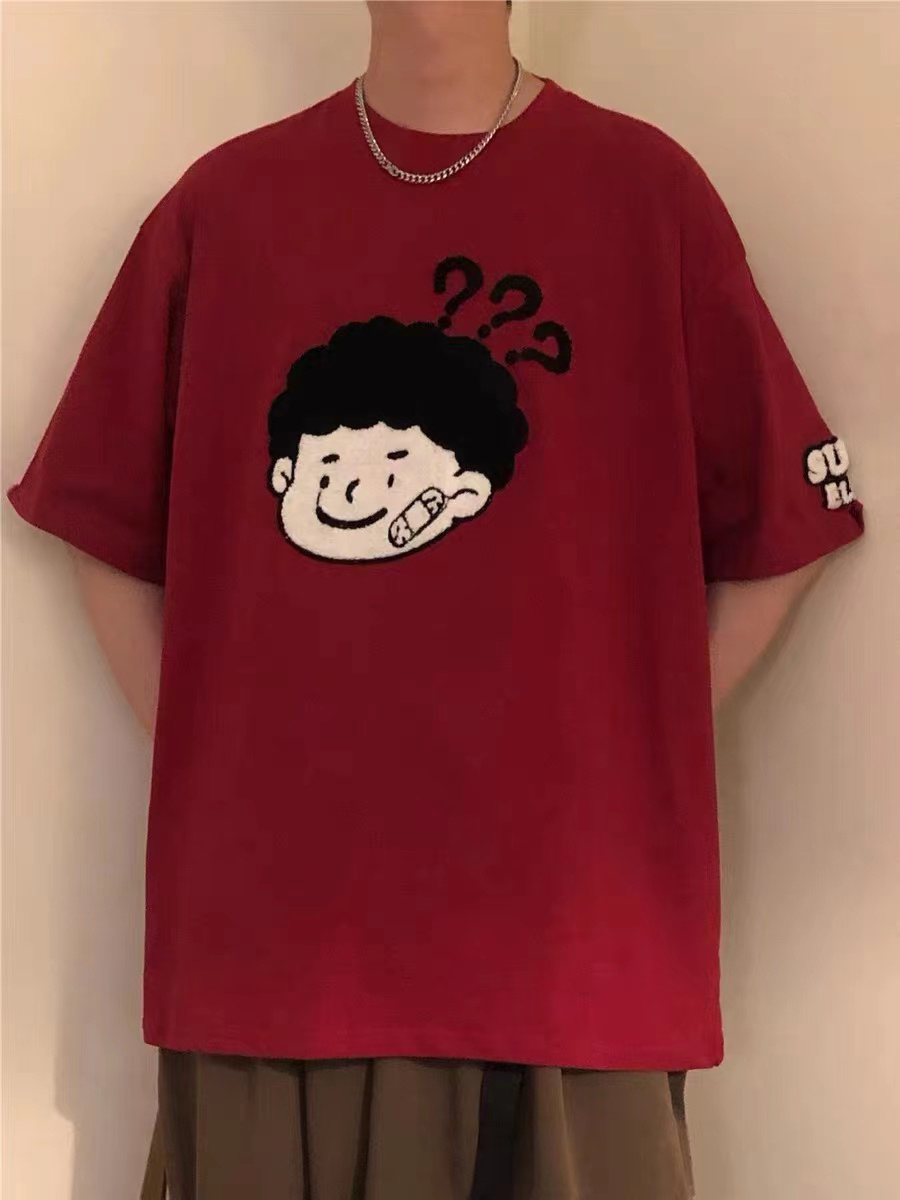 天气越来越暖和啦 可以穿短袖啦 红色短袖胸前带可爱男孩👦印花设计 穿起来很好看 看着很干净清爽