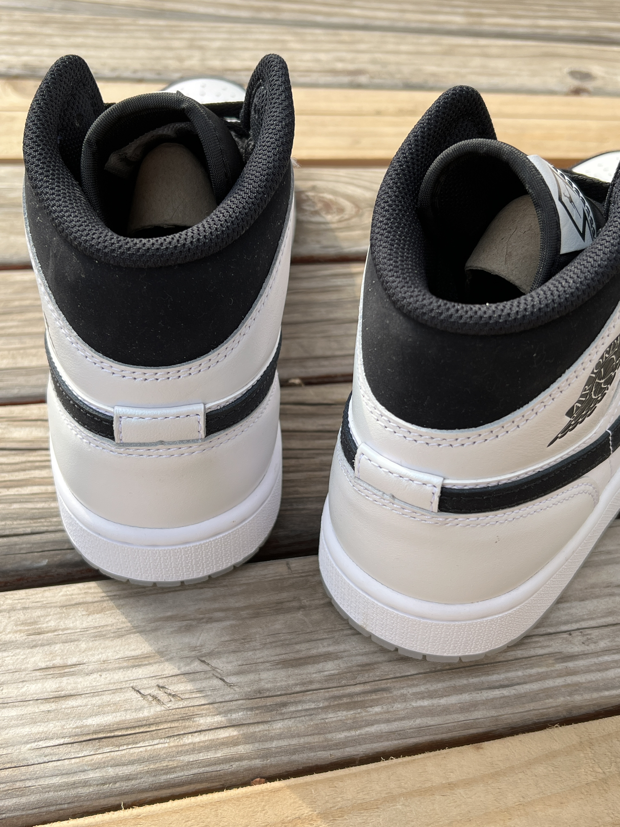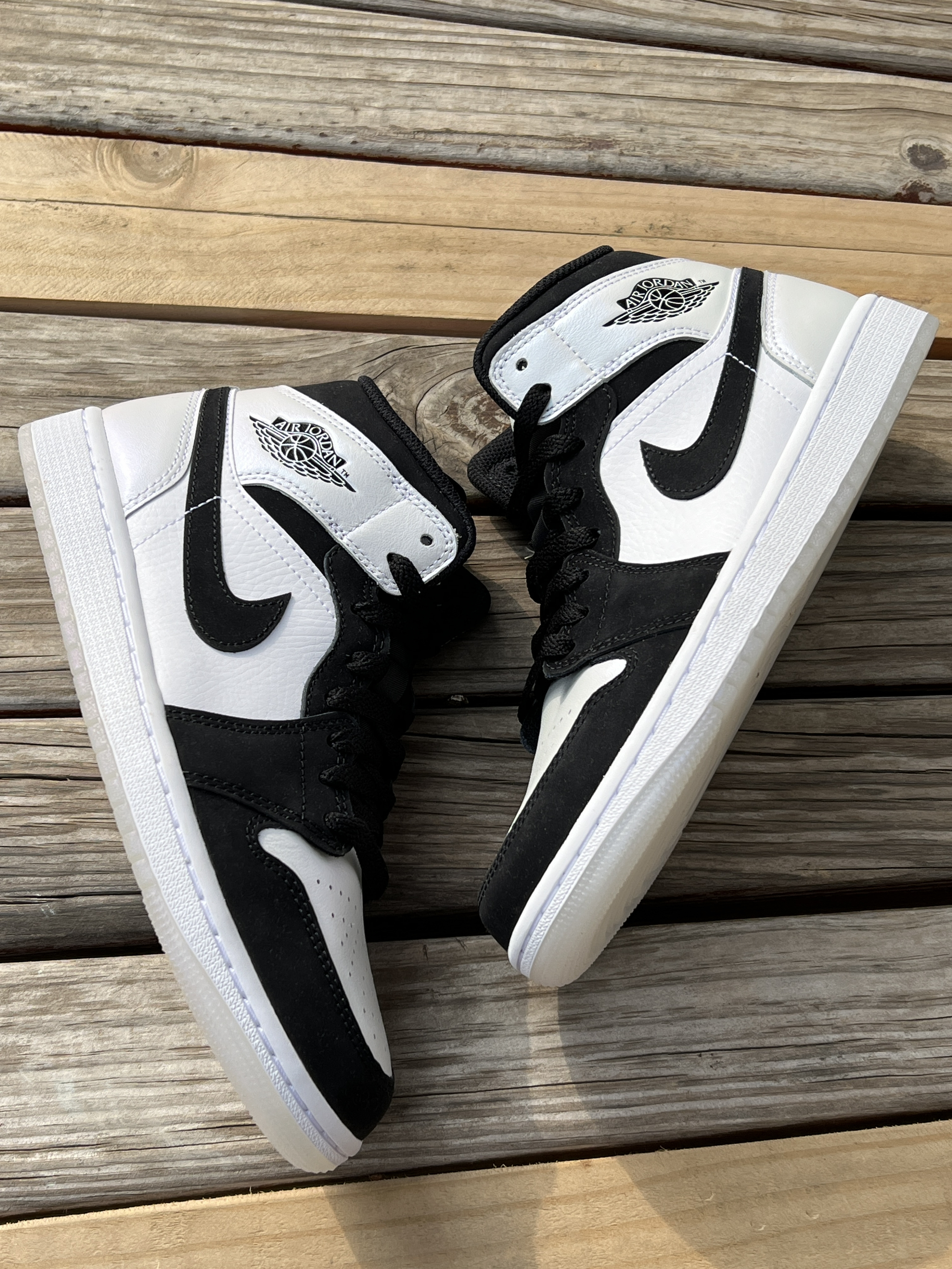 🌟球鞋名称 Air Jordan 1 Mid “Diamond Shorts” 中帮复古篮 球鞋 白黑色 钻石 🌟外观配色 鞋子主要采用白色和黑色这两种颜色作为球鞋搭配 鞋面,鞋侧,鞋后跟侧方,鞋舌,鞋尾是采用的白 色,其余部分都为黑色 鞋子的配色非常帅气,白色部分是可以变色的!放在 太阳下面会呈现出不一样的颜色哦,鞋底也是一样 的,而且这款是水晶鞋底,鞋舌上还有个飞人的 logo,非常帅 🌟脚感...