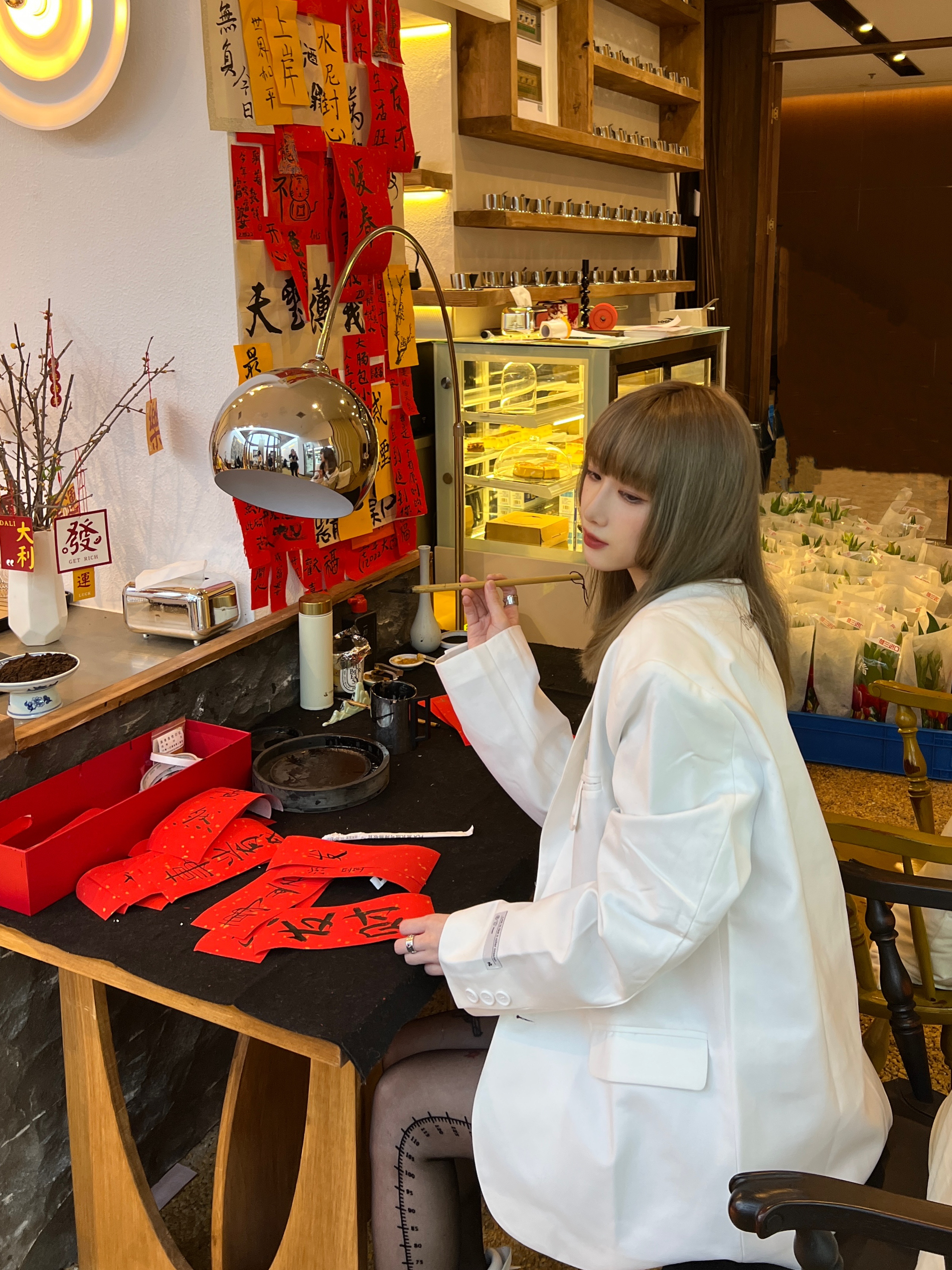 杭州春日限定郁金香🌷咖啡店 𝐓𝐎𝐌𝐈𝐂 𝐂𝐨𝐟𝐟𝐞𝐞 可以写对联的郁金香主题咖啡店☕️ 暂且称它为杭州最浪漫又有氛围感的咖啡店了 - 刚进店就被中间的郁金香花池给浪漫住 在店里你能感受到浓浓的春意💐 整体装修风格偏新中式 一墙的毛笔书法 甚至还能自己手写对联 拥有水墨画感的石头🪨结合毛笔书法 木桩🪵 不再是千篇一律的ins风 妥妥的中式氛围感 🌊探店look: 春天就是属于西装的季节 白...