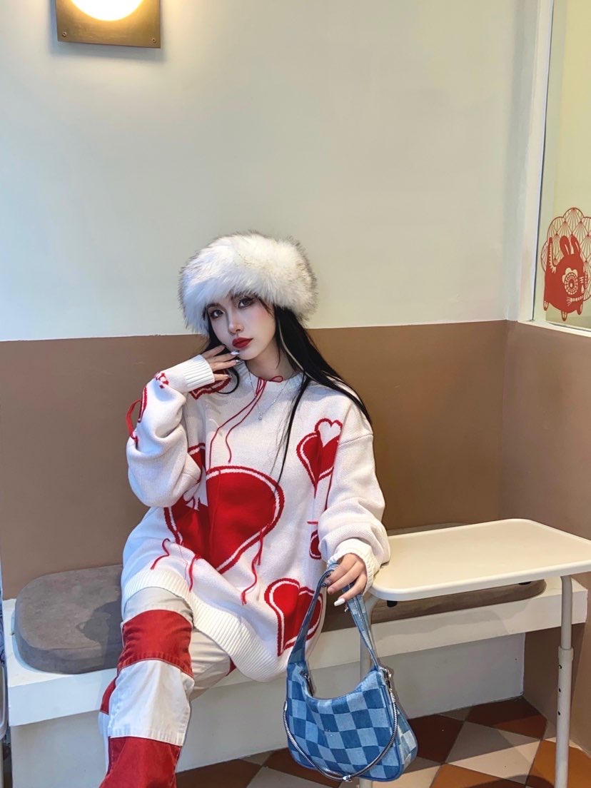 ♠️♥️热烈的新年穿搭看这里啦!新年倒计时五天! - 打卡成都最奶fufu的蛋糕🍰小店!就在玉林老社区里!小而精致的可爱🍰小店泰招人爱了💕 - 想要显得热热闹闹又不失潮流感的新年穿搭必须加入红色系!不然是不完整滴 个性感的♥️💗爱心提花毛衣搭配红白撞色做旧的个性牛仔裤👖装饰上软fufu毛绒绒的头套一整个就是雪国美女氛围浓厚起来了!搭配亮晶晶✨的雪花❄️吊坠项链,晶莹剔透滴精致美女感➕分到爆表! -...