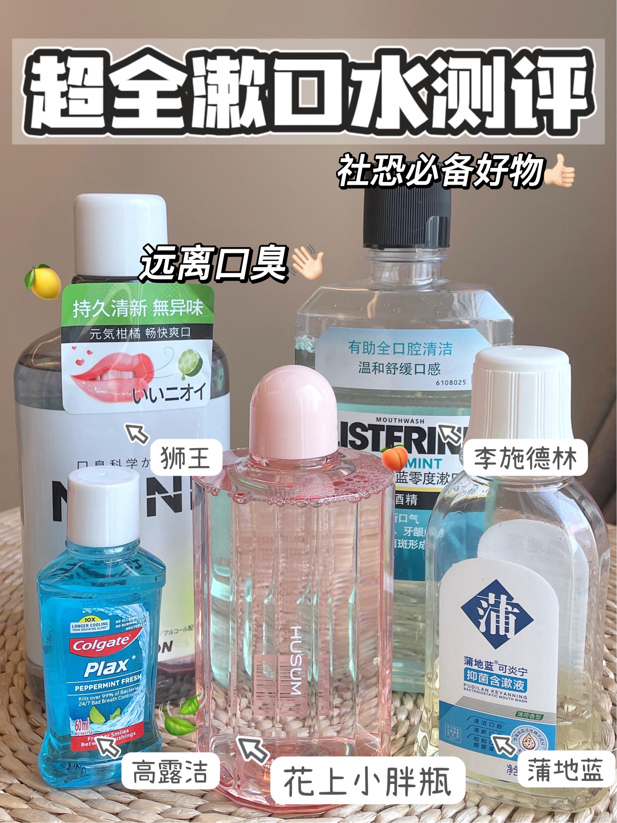 拯救口臭带来的社交尴尬 让男朋友对你欲罢不能 漱口水超全测评来啦! 1⃣️花上小胖瓶 我买的是樱花桃桃味🍑 闻着就是很清甜的果香味道 入口也不辣嘴,含漱30秒不困难 日常使用舒适度高 清洁力:⭐⭐⭐⭐ 舒适度:⭐⭐⭐⭐⭐ - 2⃣️狮王漱口水 这一款是我日本朋友推荐的 我入的是柑橘薄荷味🍊 味道给人一种酒精过多的感觉 入口会辣嘴,不舒服❌ 清洁力:⭐️⭐️⭐️⭐️ 舒适度:️⭐️⭐️ - 3⃣️蒲...