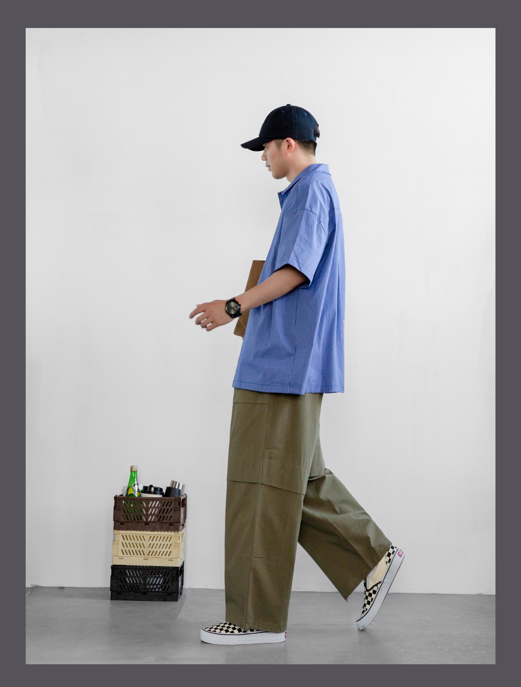 oversize的衬衫版型就是衬衫天花板✈穿上后谁还不是个日系男孩❔ 💁♂宽松的版型上身就有休闲帅气的感觉,比合体商务的衬衫好看太多了 这件衬衫还不易皱,舒服的面料材质是它的优势💨 ◾花纹格子的配色也是十分的符合大众肤色 蓝/灰/红三色都巨显肤色,无论是什么皮都可以尝试❕ 📌轻薄的质地在夏天穿十分的合适 闭眼外穿内搭yyds💯 ◾下装搭配工装裤都是很绝的,随心搭配 🗣这条绿色的工装裤,用分割设计...