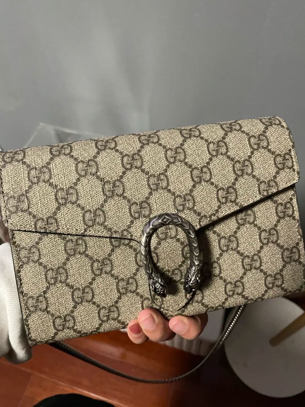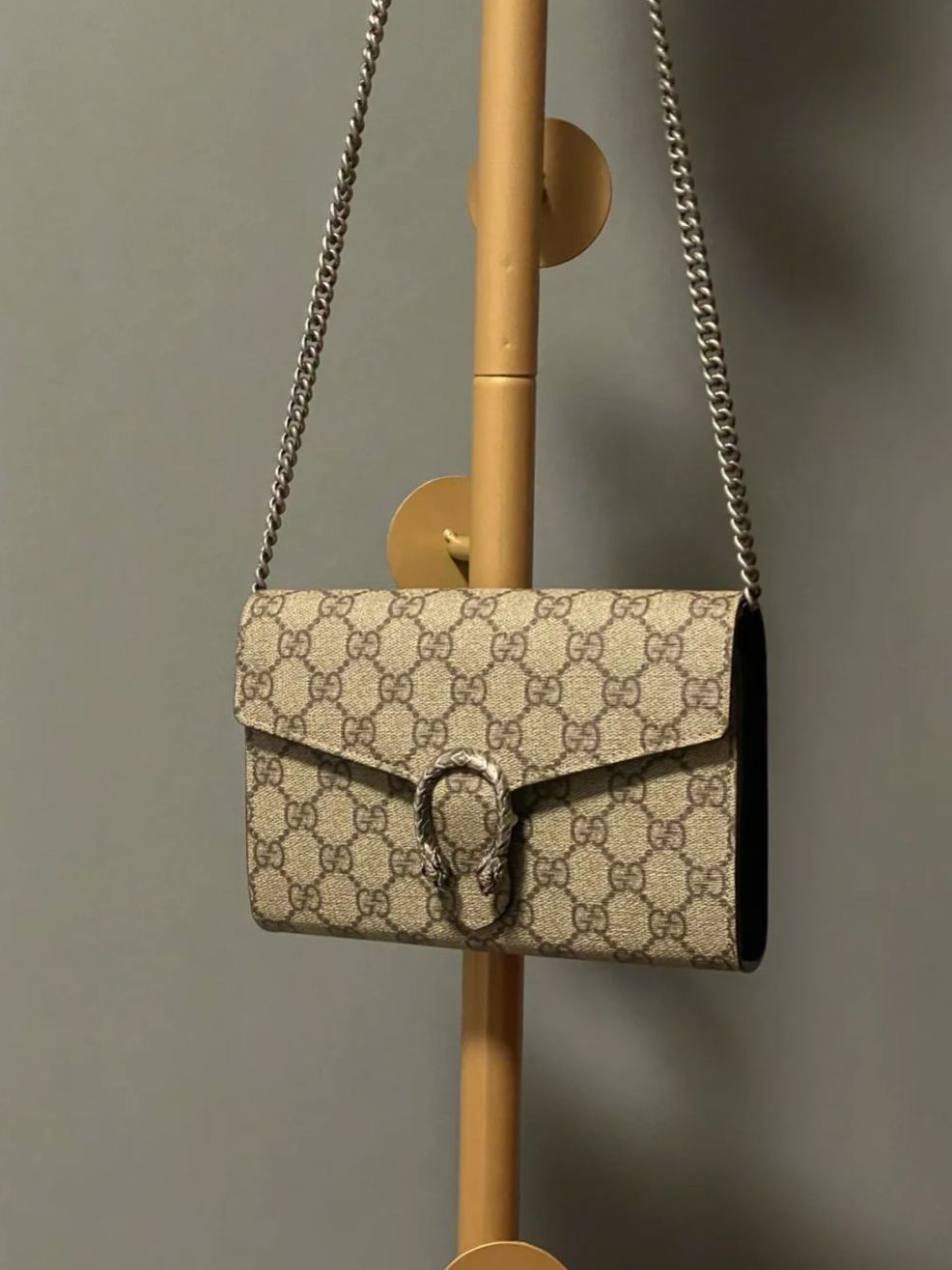 本篇笔记关联了Gucci/古驰 Dionysus 迷你 皮质酒神双虎头扣老花Logo皮革帆布拼皮织物搭扣链条肩背包钱包单肩斜挎包 棕色印花等商品,为用户提供真实的使用体验和购买参考。