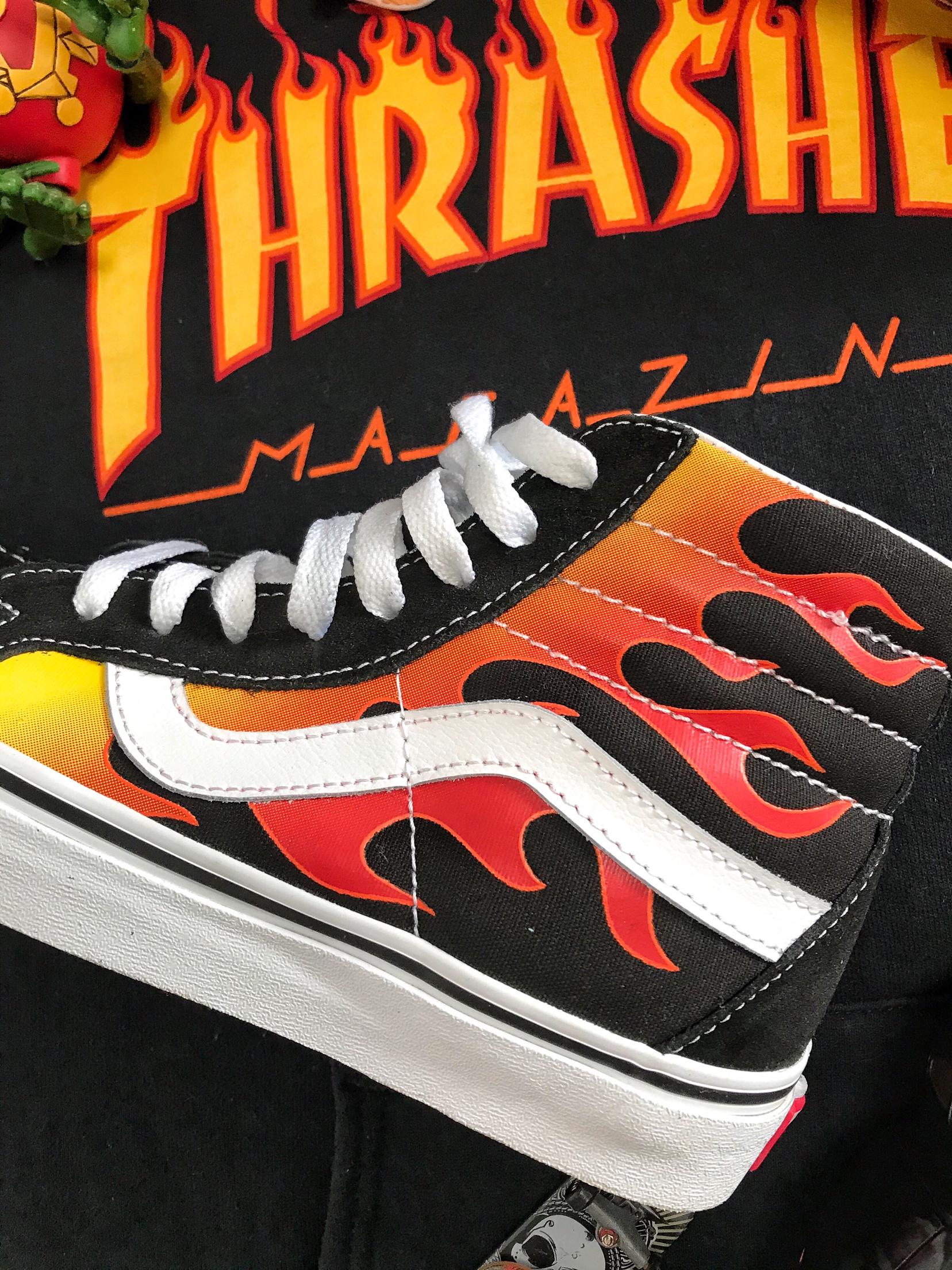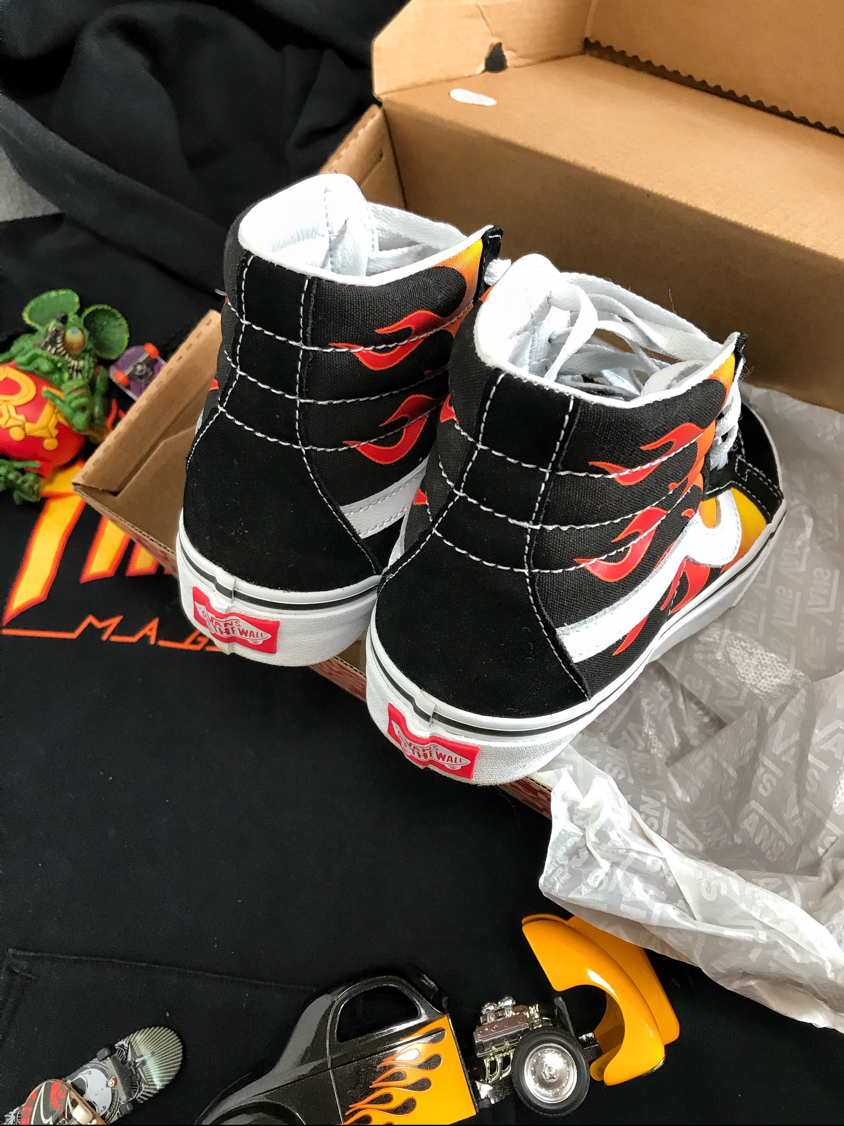本篇笔记关联了Vans/范斯 SK8-Hi 板鞋 潮流经典拼接复古街头厚底 黑/火焰等商品,为用户提供真实的使用体验和购买参考。