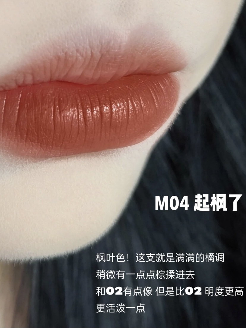 橘朵又又又出新品了,软fufu的棉花糖 每一支都超好看,完全不挑皮肤,黄黑皮也能放心入!赶紧安排上 M01 小杏运 是一个特别温柔的奶杏色,百搭不挑皮,棉花糖的感觉~ M02 松果干束 是一个涂上气场马上被拉满的颜色 唇色浅的可以选这支 红棕巧克力外加一点点焦糖橘 M03 烤玫瑰 带灰调的玫瑰色 高冷又温柔 关键素颜涂也非常好看 M04 起枫了 这支是满满的橘调 稍微有一点棕 M05 酿石榴 橄榄...