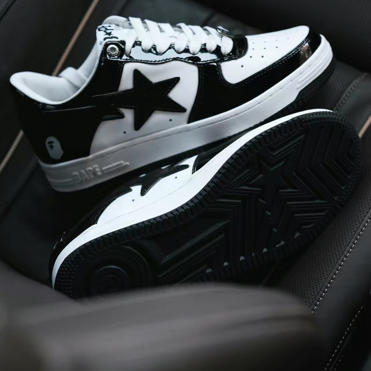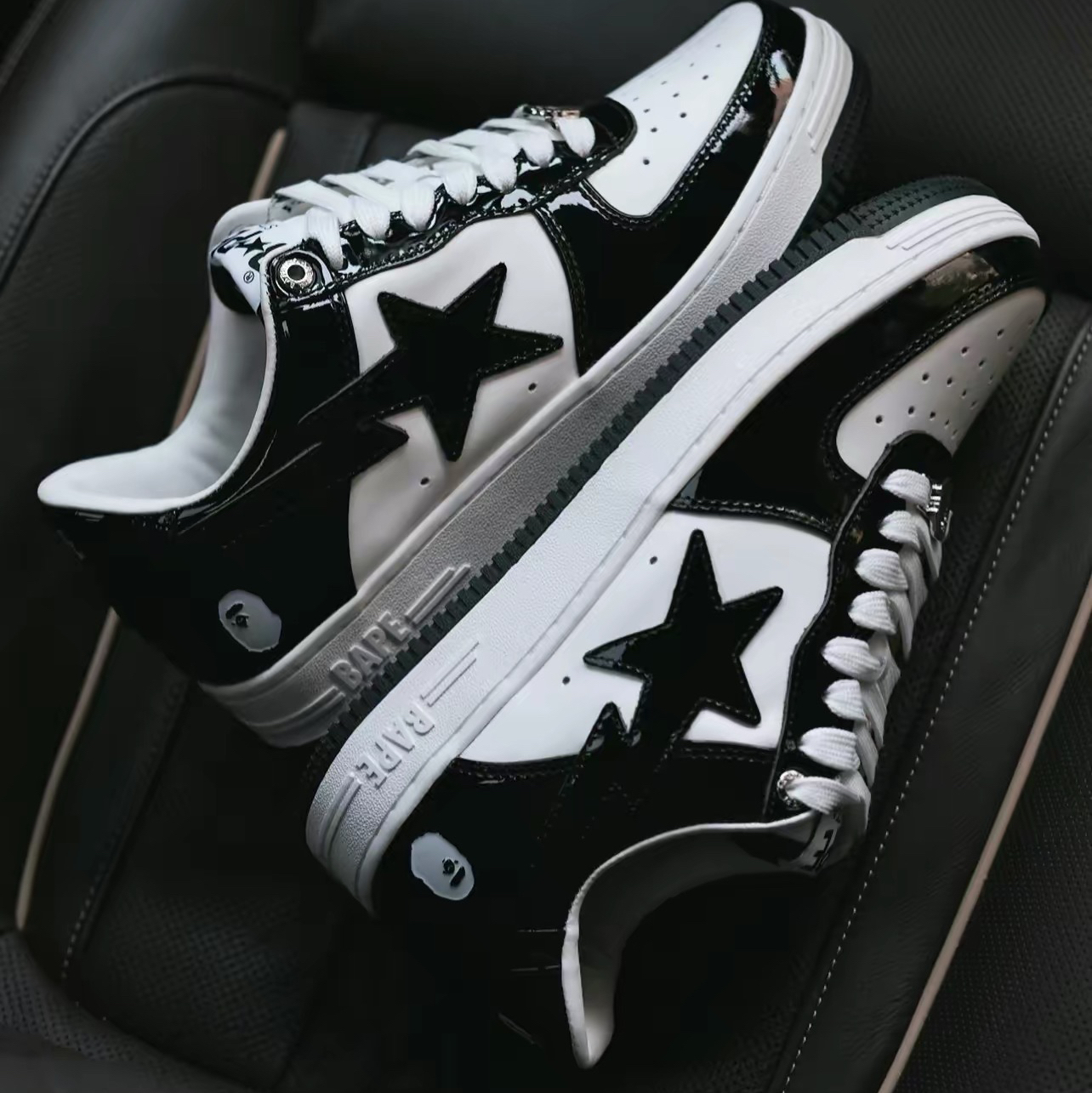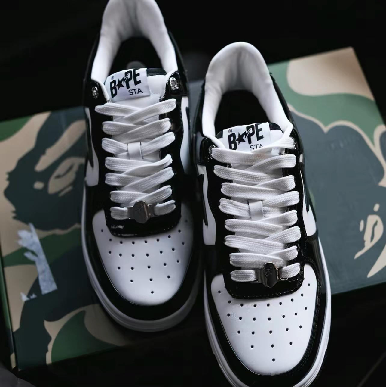 本篇笔记关联了Bape Sta 板鞋 拼接舒适皮革防滑耐磨系带圆头时尚简约复古百搭牛皮压纹平跟徽标星星图案 纯黑色/白色等商品,为用户提供真实的使用体验和购买参考。