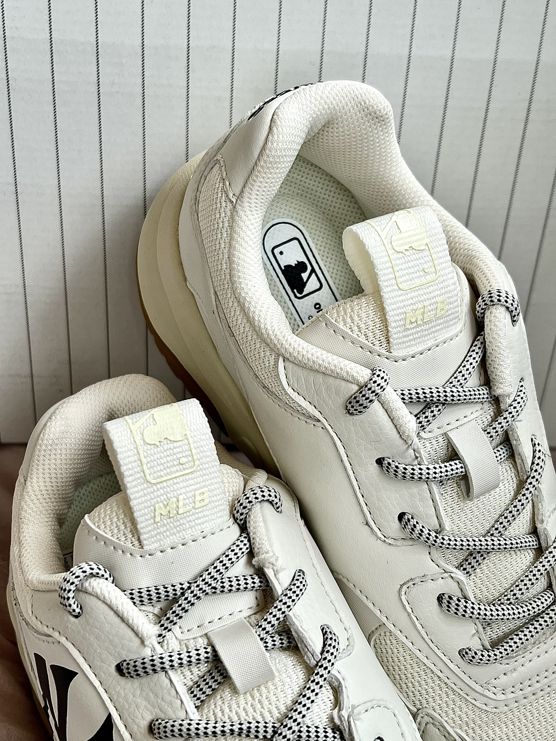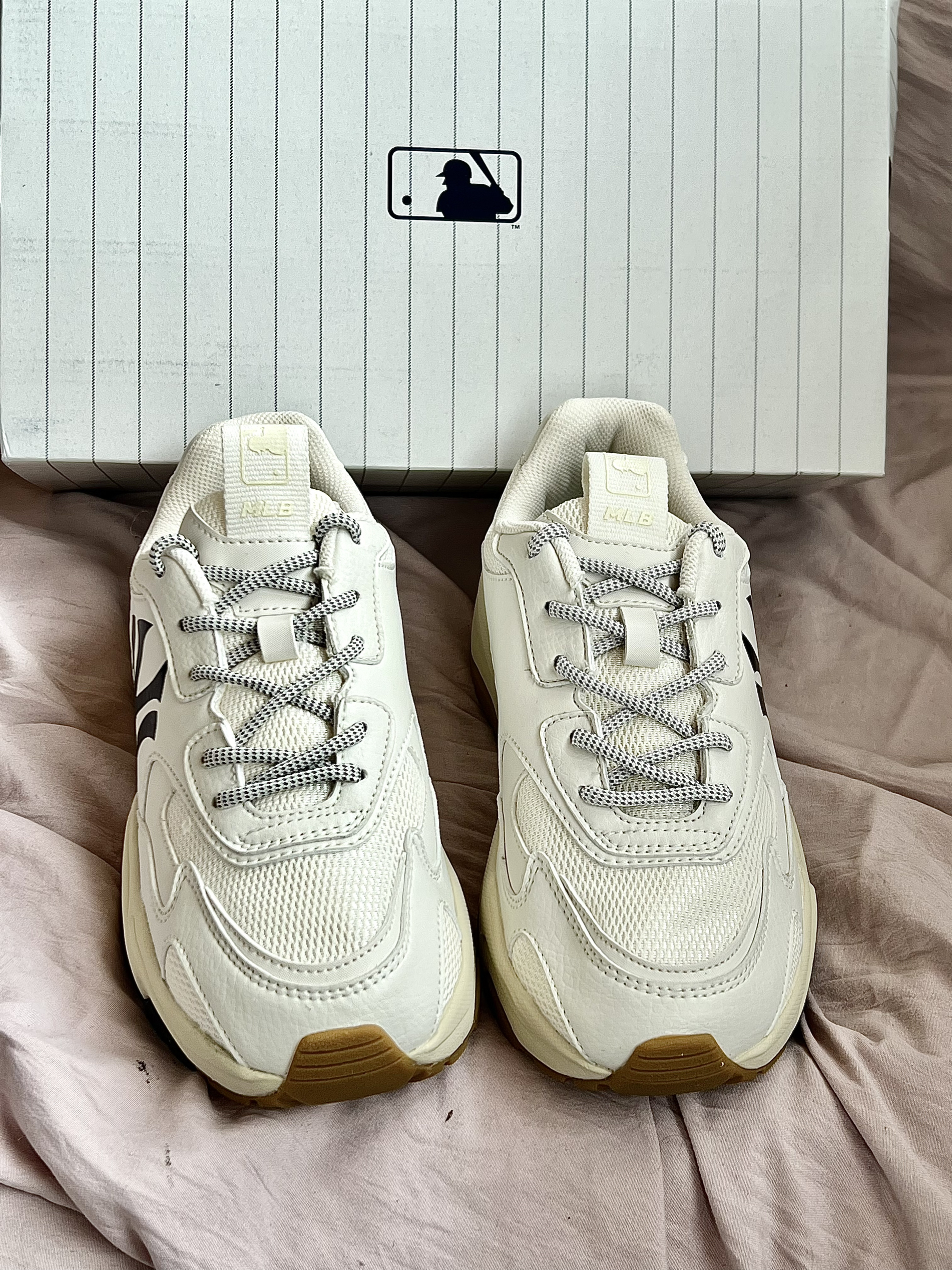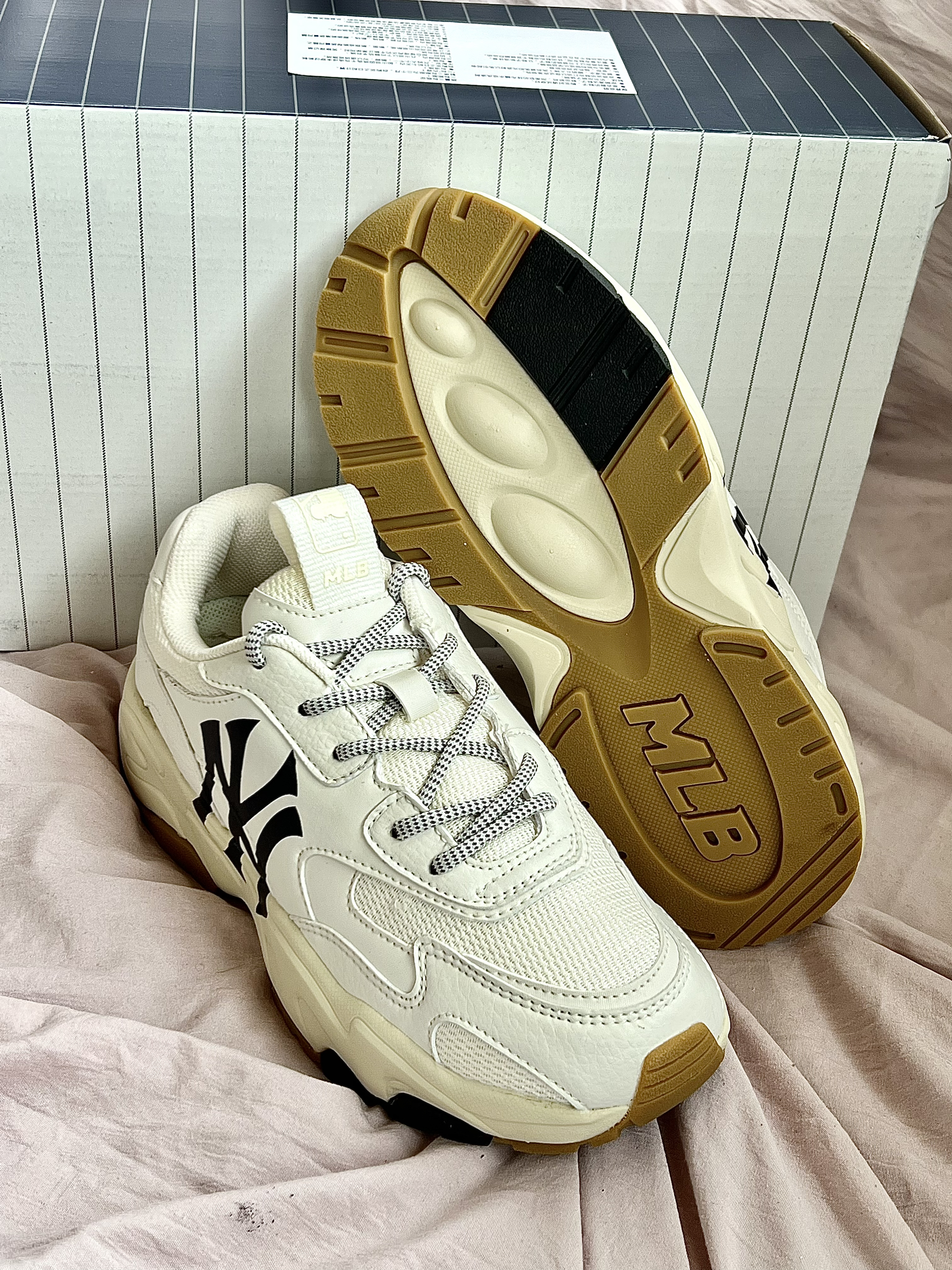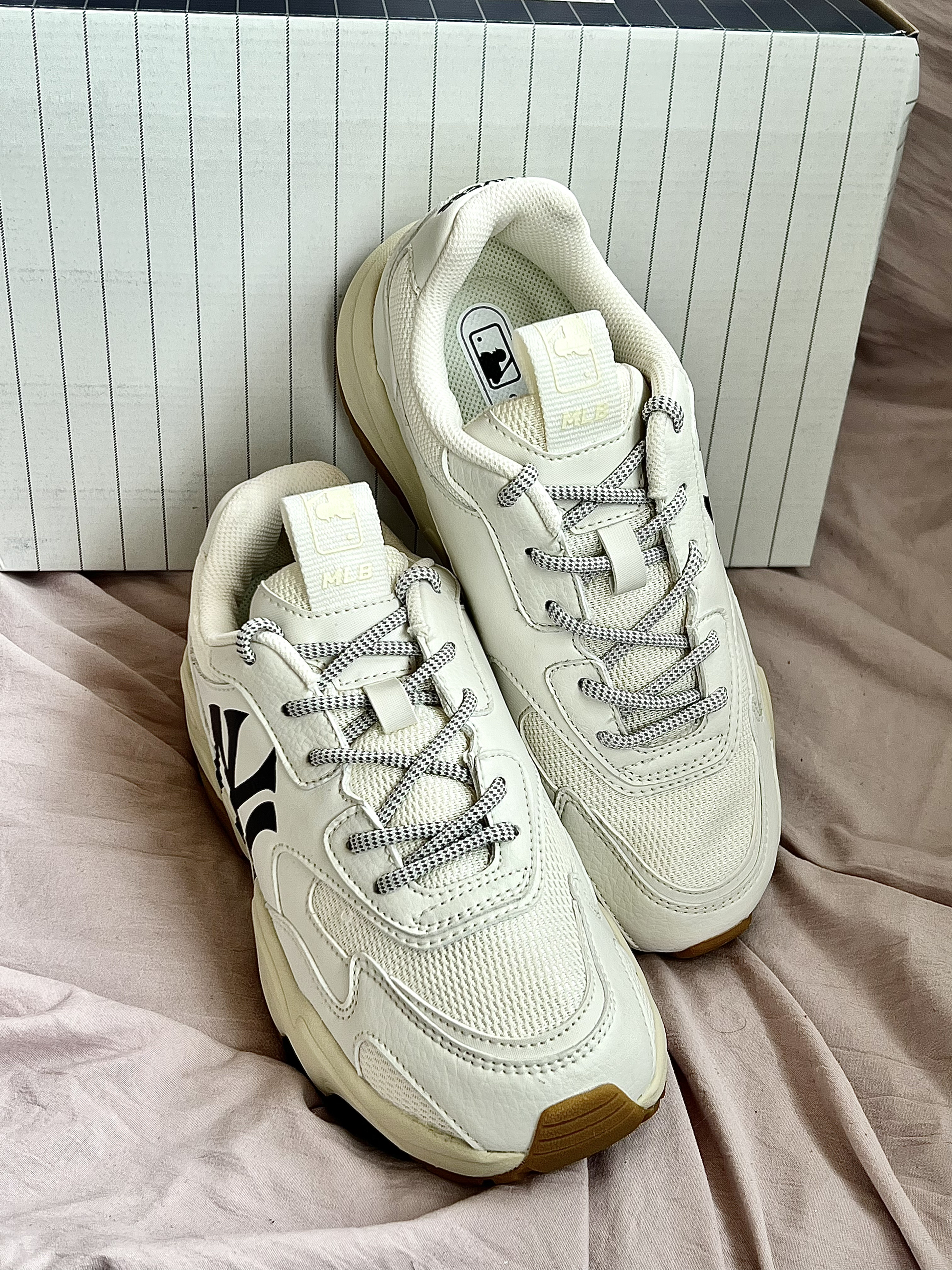 👟鞋款名称 MLB BigBall Chunky 低帮减震防滑老爹鞋 男女同款 米白 鞋子采用了织物和皮革材质拼接而成,质感轻薄透气,米白色的鞋身,干净清爽,鞋侧MLB的大Logo彰显身份,厚实的中底,不仅增高而且回弹效果很好,橡胶色的大底,整体配色简单又复古 很是适合学生党的一双平价百搭好鞋,搭配情侣鞋也是不错的选择 鞋码推荐:正常码数