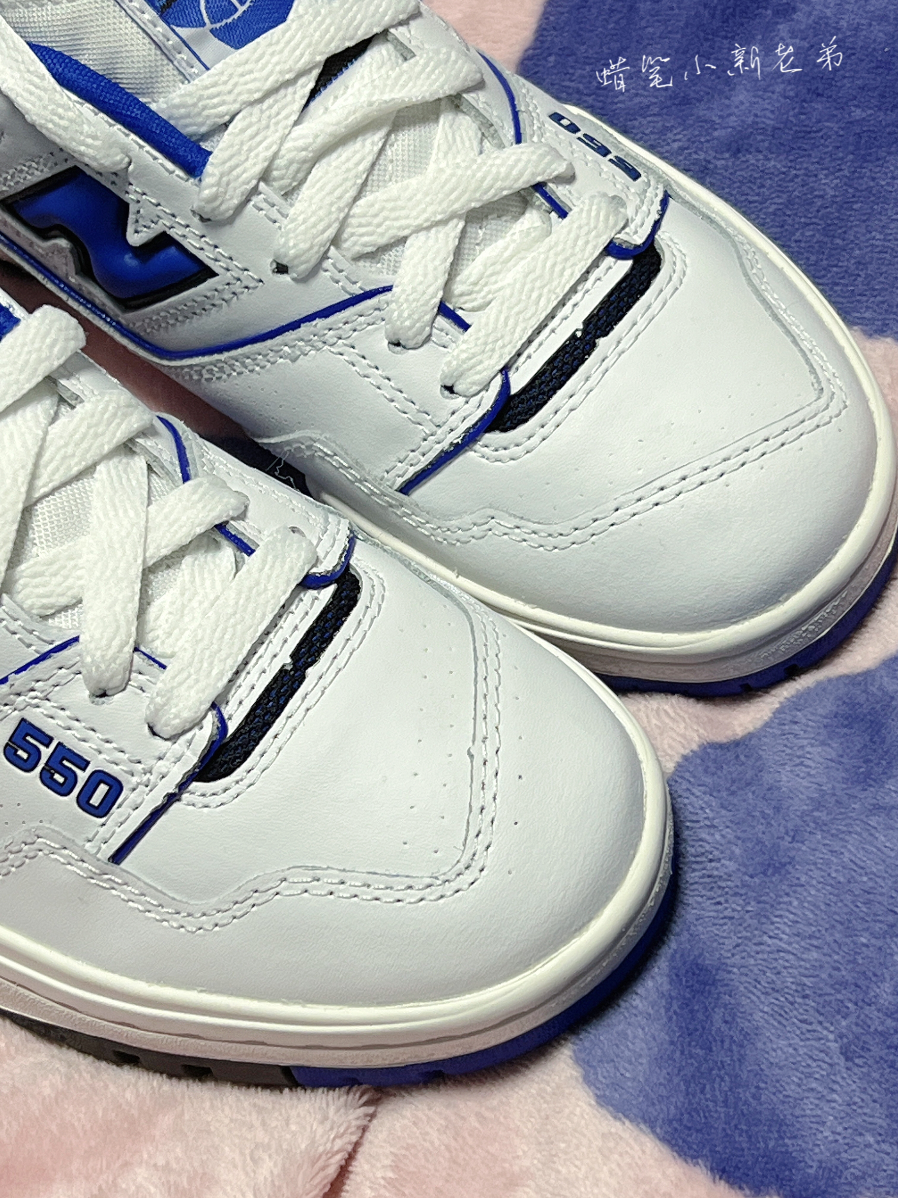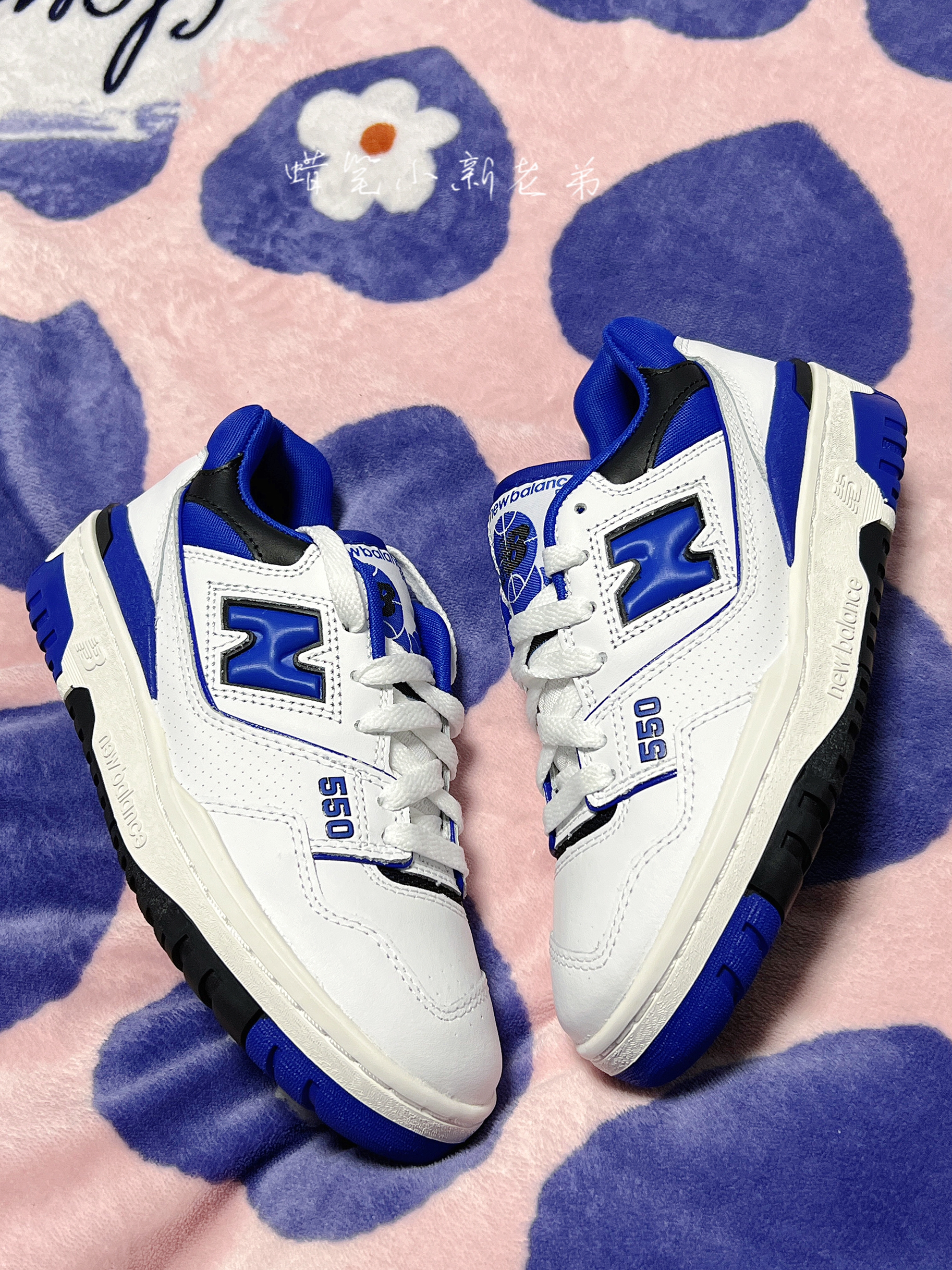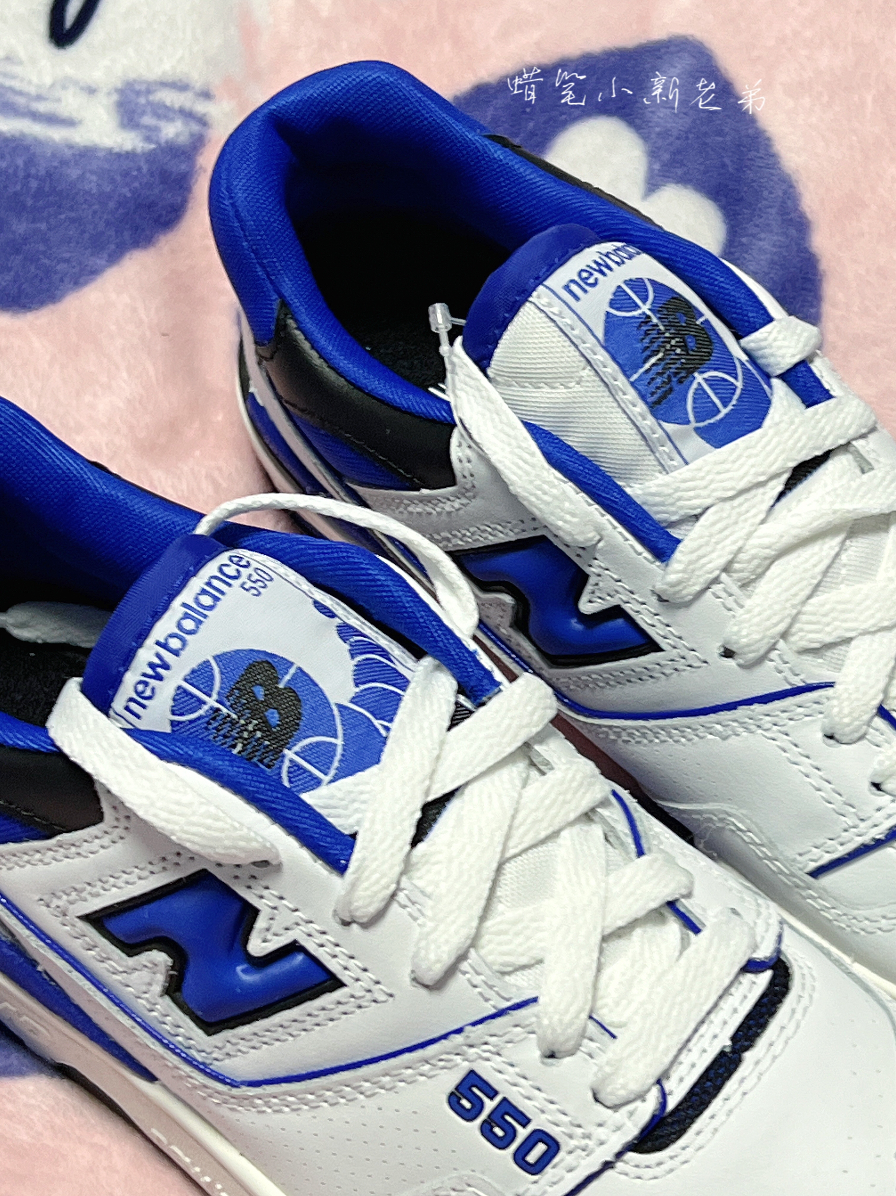 New Balance550系列 复古篮球鞋 蓝白色男女同款 鞋子整体采用了白色➕蓝色组成,黑色点缀其间,鞋身有着550字样,鞋身采用织物材质➕合成革材质组成,质感非常不错,550的鞋型还是比较好看的,有种比较复古的感觉,适合春秋季节穿,很好搭衣服