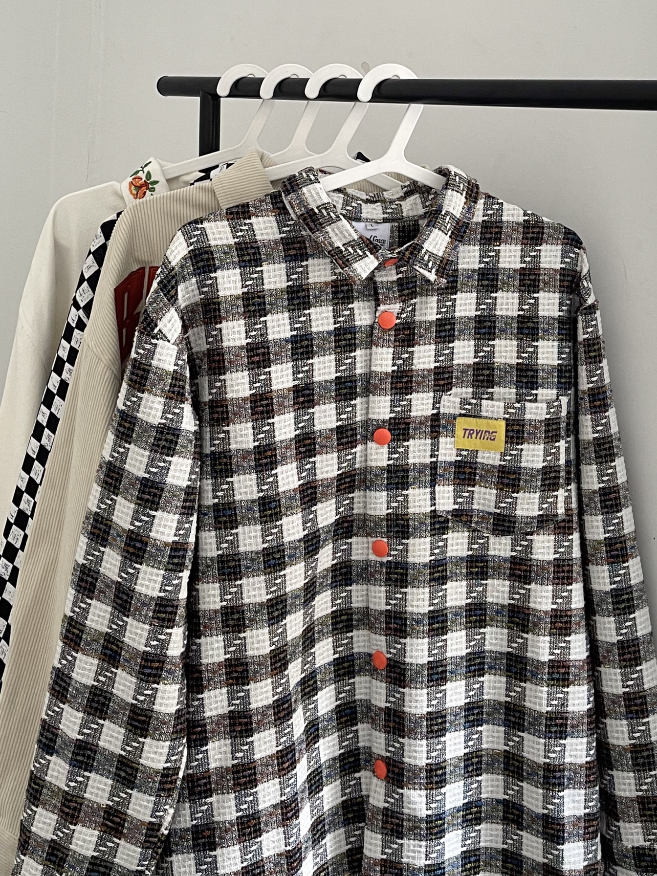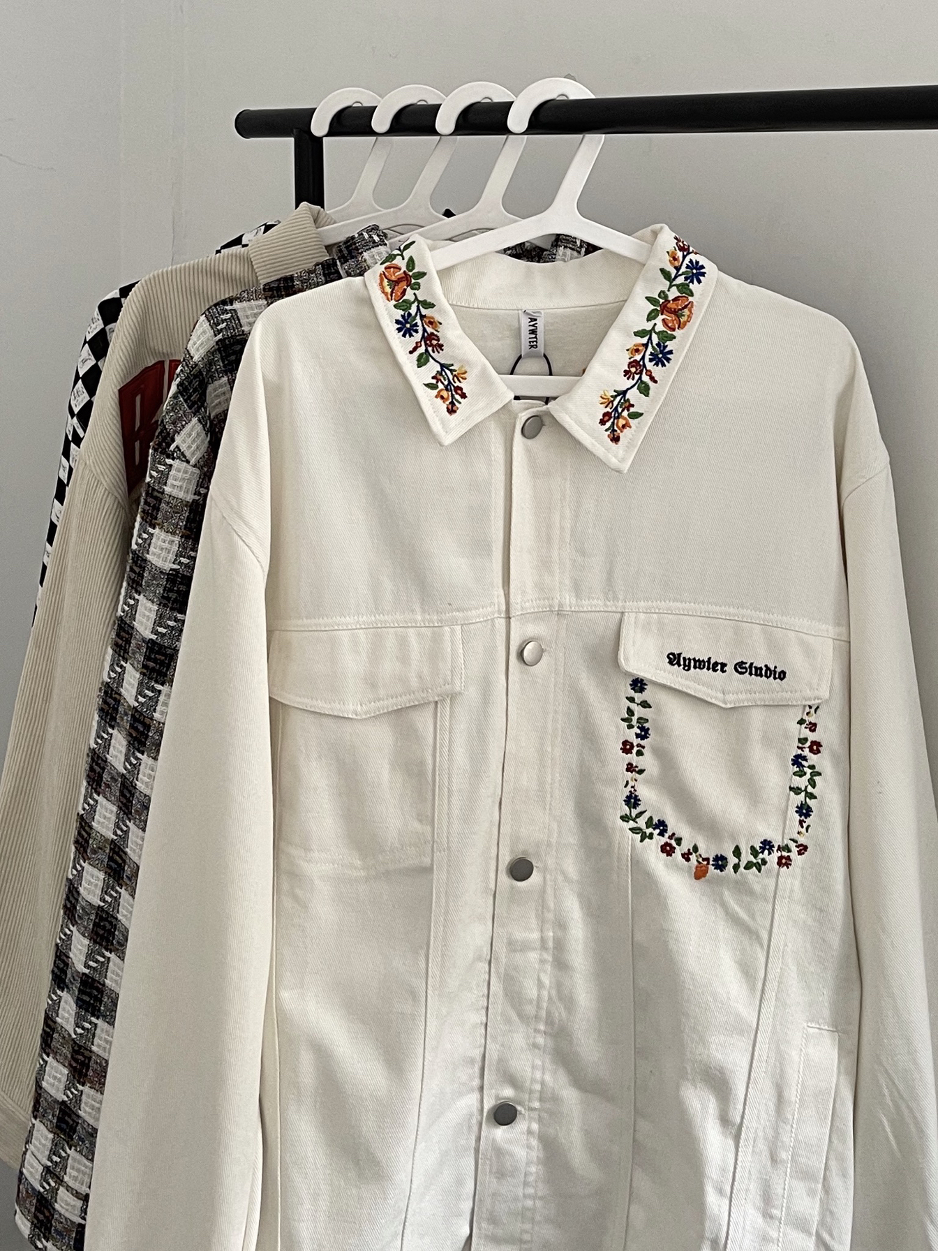 宝子🚪 看段子🎧 埋在心底吧 每个夜晚都思念的人 - 1️⃣美式复古贴布上衣:易冧 2️⃣棋盘格慵懒风上衣:尚创申 3️⃣街头白色牛仔外套:GPstudio 4️⃣小香风百搭衬衫:BOKA