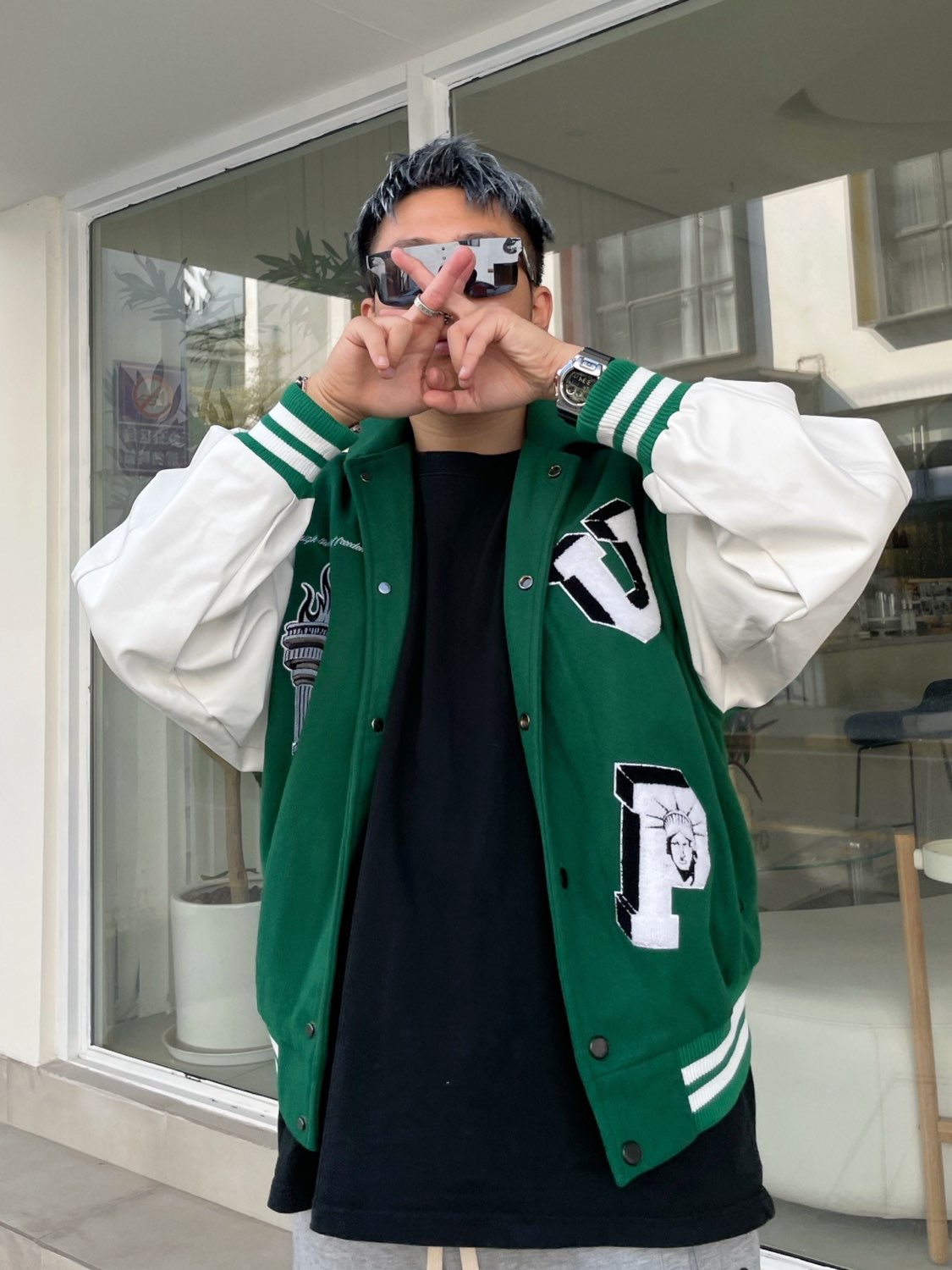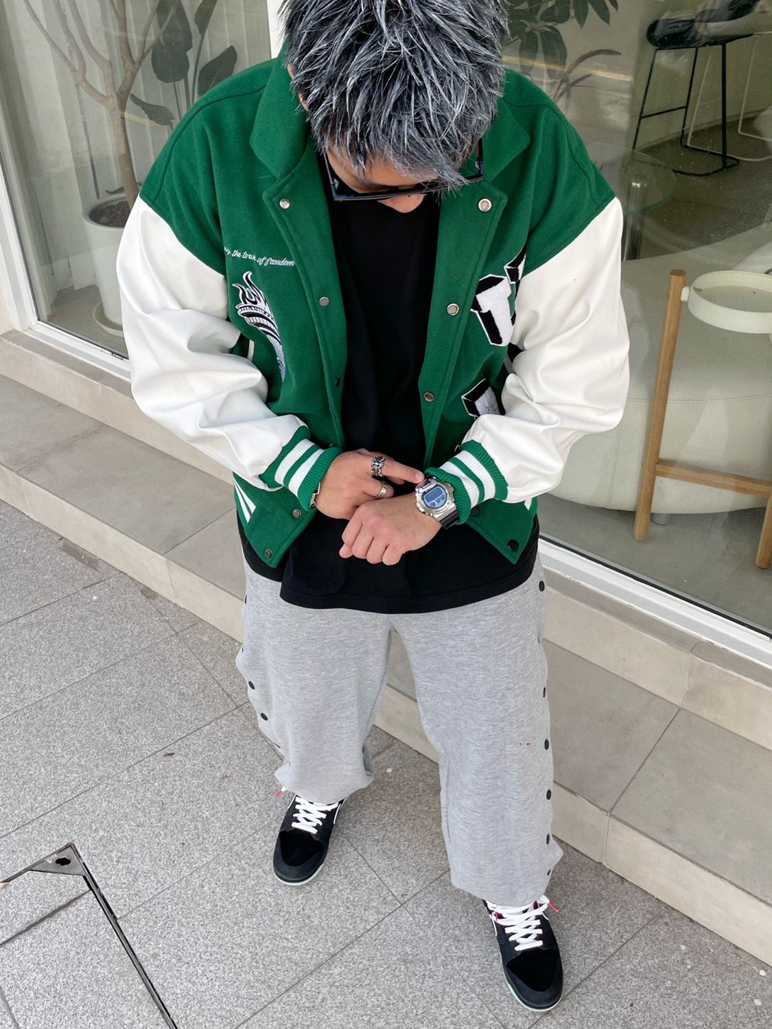 👔:M5IS 👖:M5IS 👟:Nike LpL ⌚️:Casio 🔗:Louis Vuttion 💍:克罗心 手表终于来咯来咯来咯,独特的大银亮手表来咯,宝石的玻璃镜面,还有设计感满满的表带,在细节方面方面搭配真的超级符合我的气质了,我出门戴着人都要被夸飘起来了,哈哈哈 这块手表真的很难让人不心动,完全不挑人,质感不要太好,拿捏得非常到位,搭配着今年最流行 Nike Lpl和绿色棒球夹克简直不要...