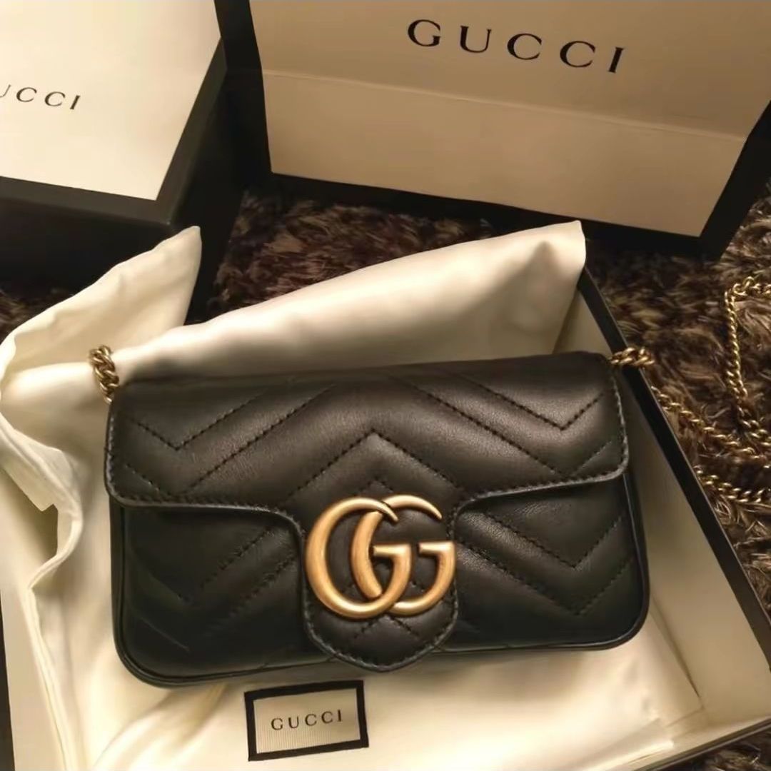 本篇笔记关联了Gucci GG Marmont 超超迷你 马蒙金标LOGO绗缝皮革链条手提包卡包零钱包 黑色等商品,为用户提供真实的使用体验和购买参考。