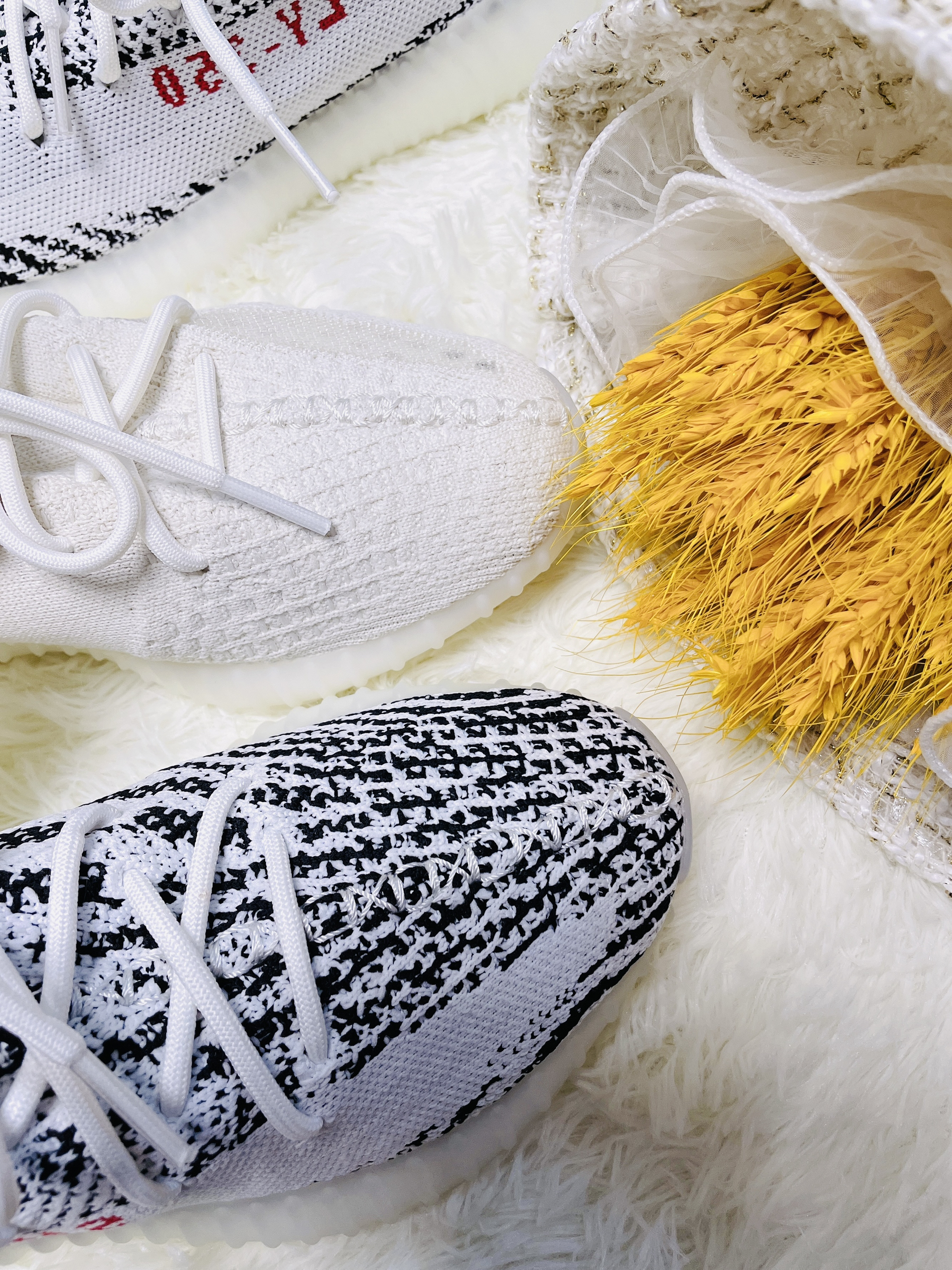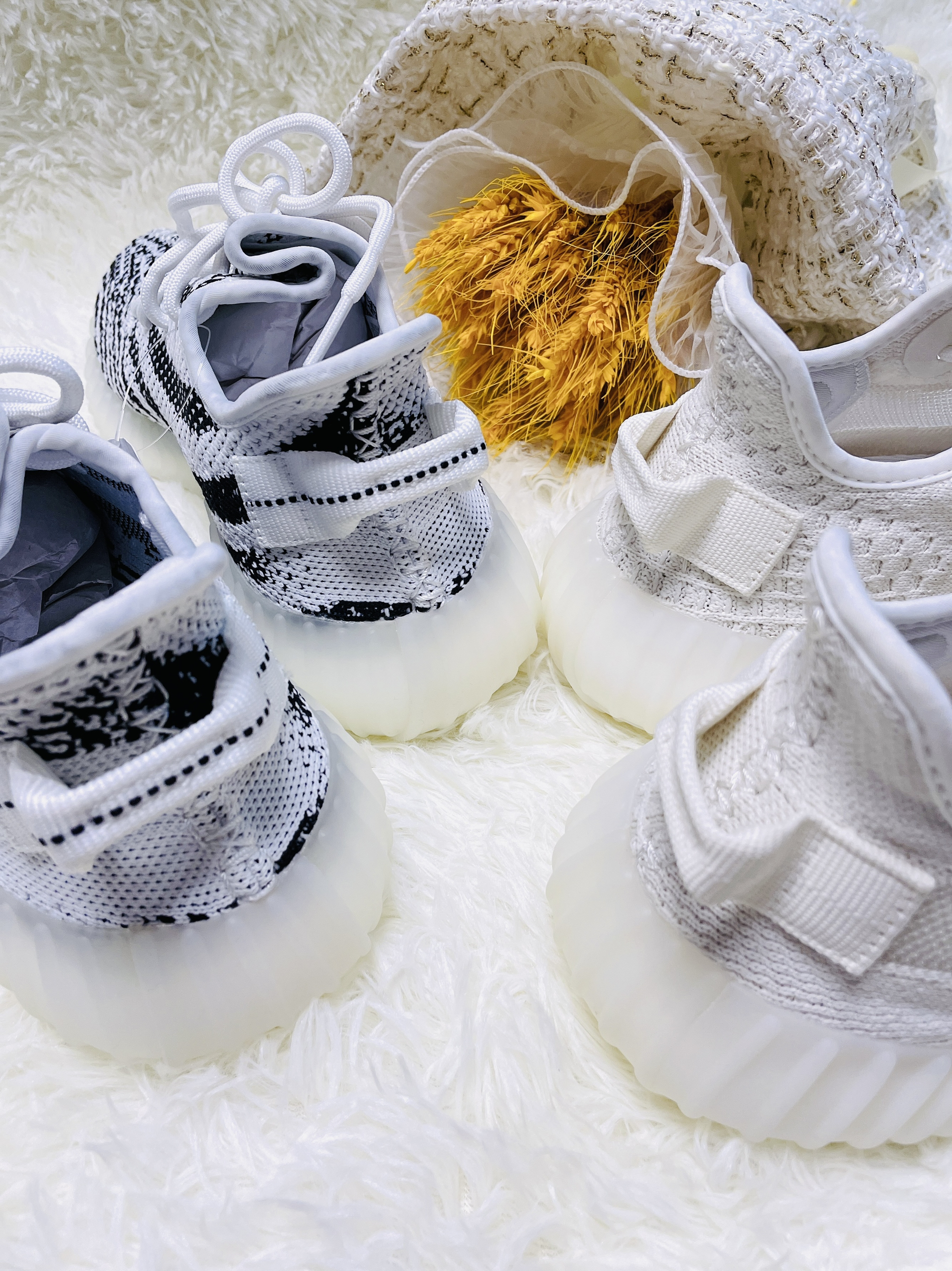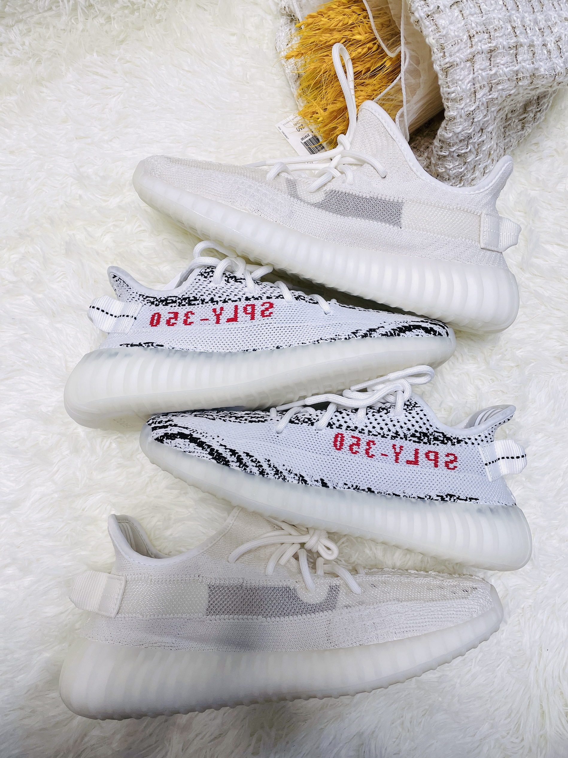 ✨Yeezy 350 白冰淇淋2.0/白斑马 ✨天气慢慢变热了 Yeezy必须要上脚了 跟大家分享一下这两双白色的椰子吧 -新出的白冰淇淋2.0和白斑马都是白色系 都非常的长在我的审美上 毕竟浅色系真的很舒服 尤其是小白鞋 ✨Yeezy椰子350 白冰淇淋2.0 -全鞋通体白色 运用的是经典侧透款式 可以看到内里 这就对袜子有点要求啦 最好也是浅色系 -中底为奶油的水晶大底 加上Boost科技...