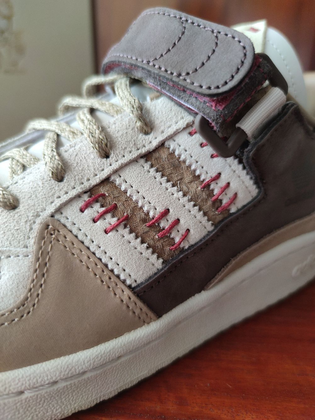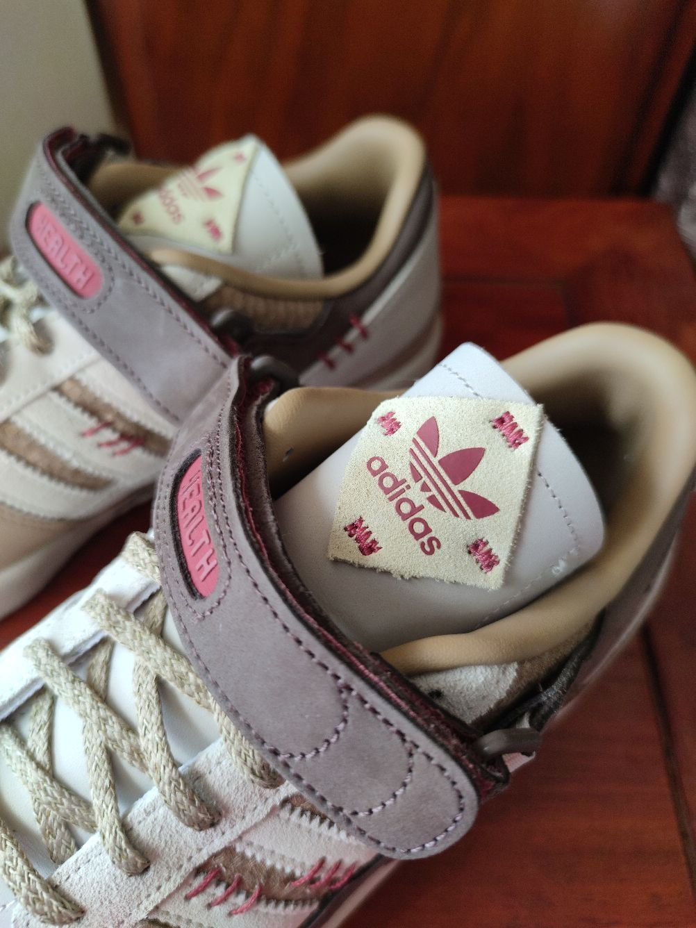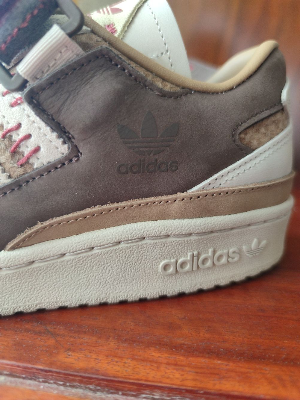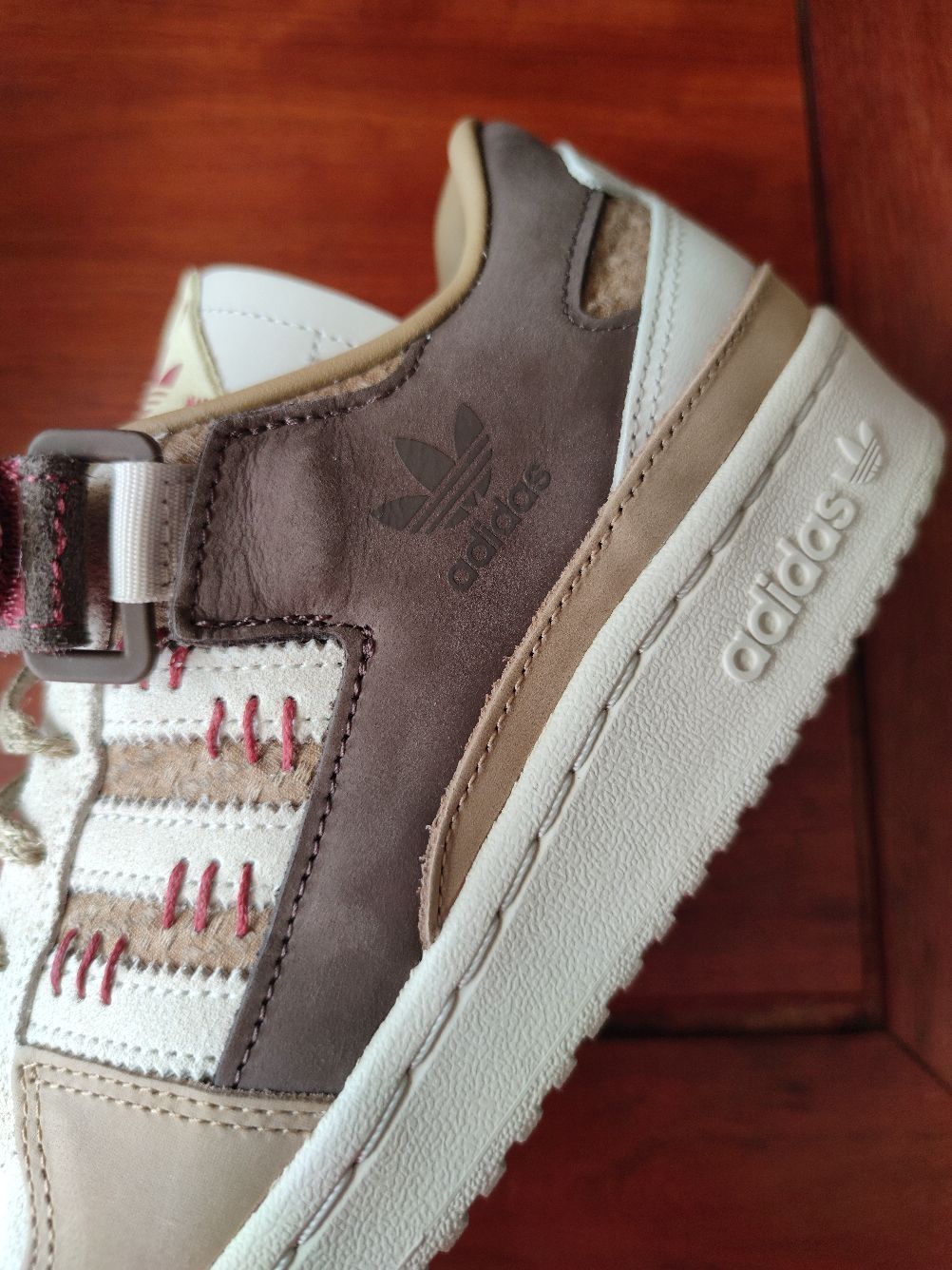 大家好,我是豆浆,本期分享一款中国元素满满的休闲球鞋,就是这款👉Adidas forum 84 健康是福 中国年,今天来分享一下首次上脚感受! 全鞋以深浅不一的棕色和白色构成,运用牛巴革和麂皮材质,鞋面质感不错,侧身经典的三条杠,forum 84标志性的魔术贴绑带,红色缝线、麻绳鞋带以及印有中草药图案的鞋垫,都呈现满满的中国元素。 但是此鞋唯一痛点在于皮革材质的鞋舌比较硬,上脚非常顶前脚踝,异物感...