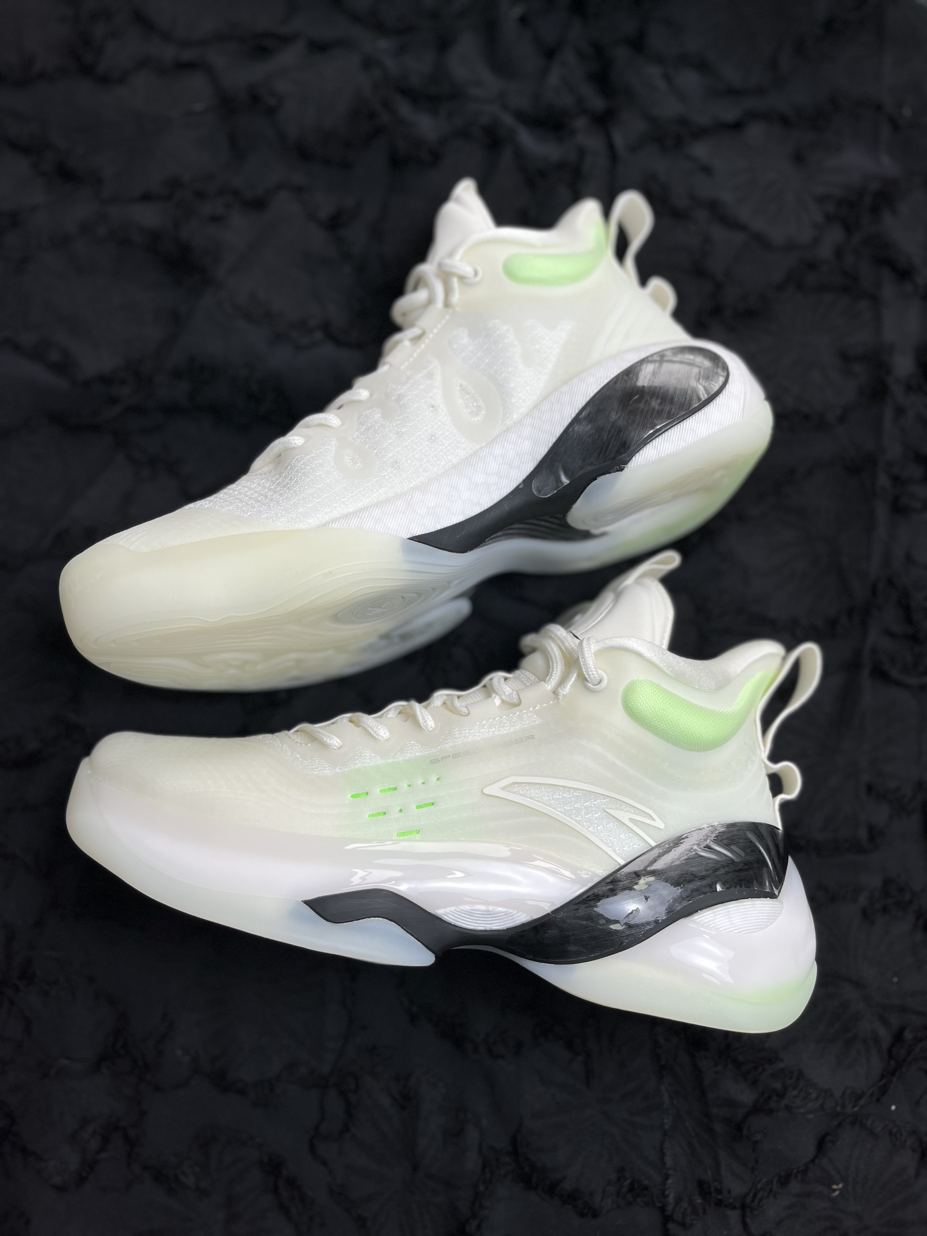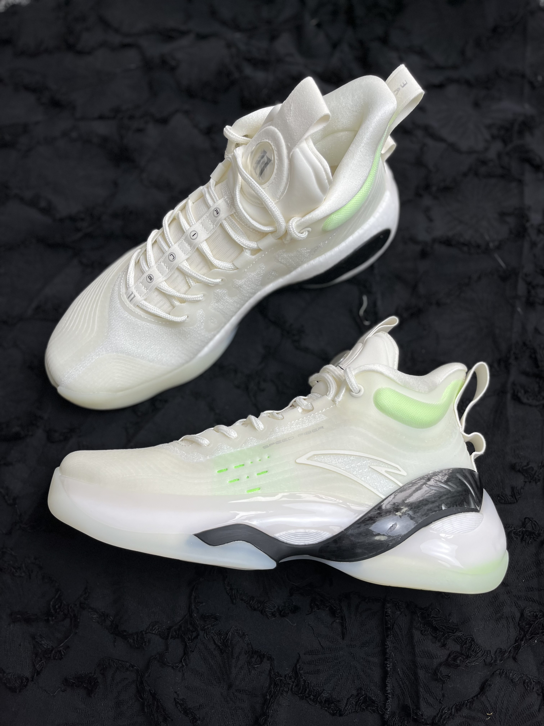 东毒西鞋今日分享 👟鞋名:【品牌专供】【白敬亭同款】Anta安踏KT7氮科技实战篮球鞋白色留白 🧗♀️ 鞋面整体主要采用米白色为主要颜色。荧光绿进行点缀,颜色搭配有点清新。采用高帮设计包裹感更舒适。 🧗♀️ 鞋面织物合成革TPU的材质,安踏氮科技的中底科技脚感舒适,橡胶大底耐磨防滑的。
