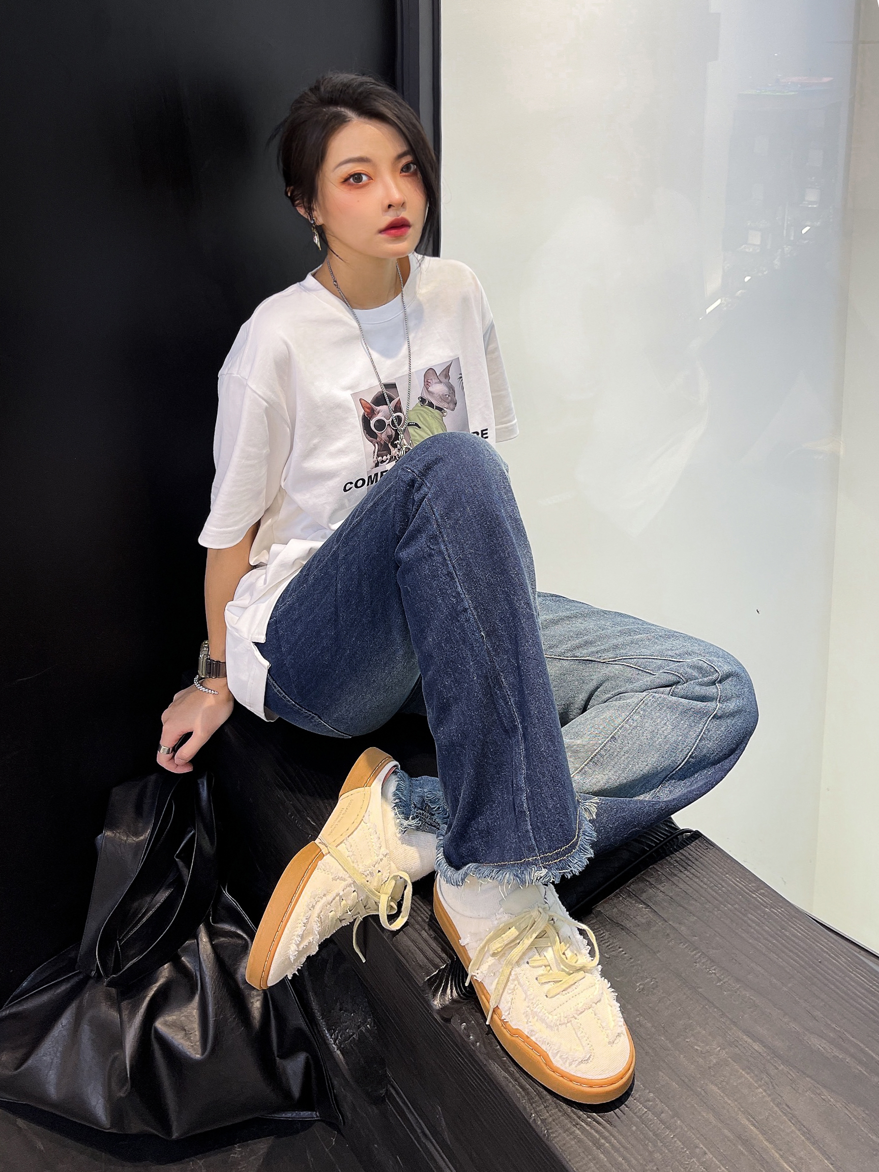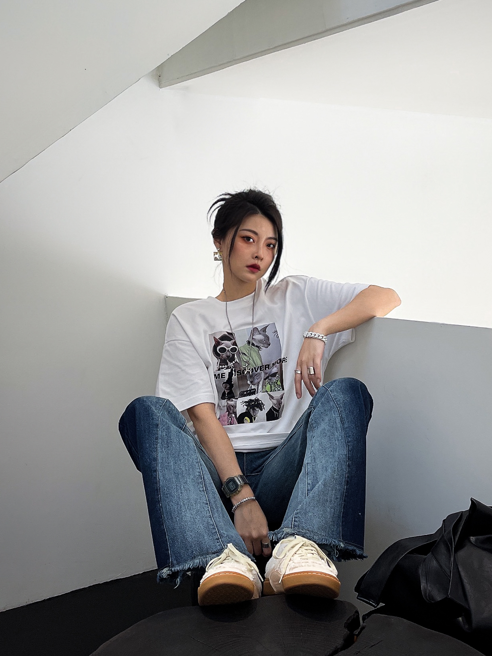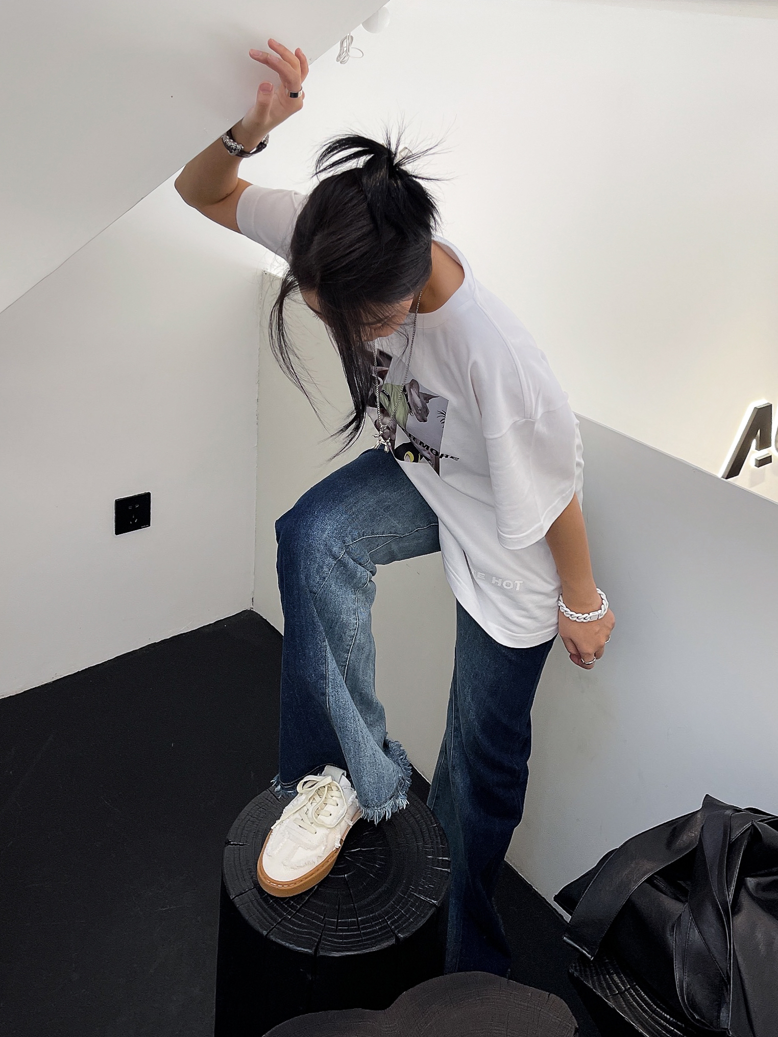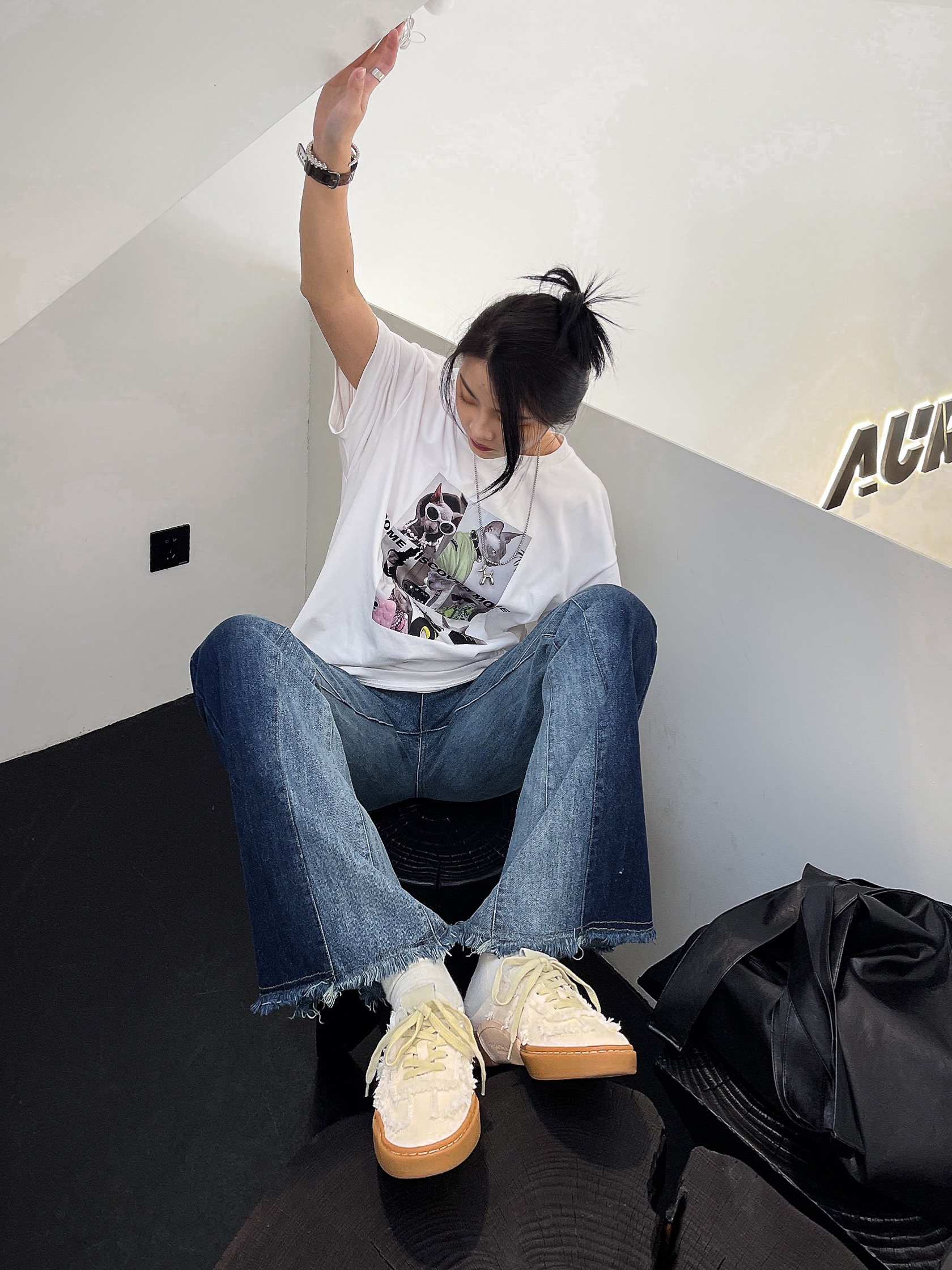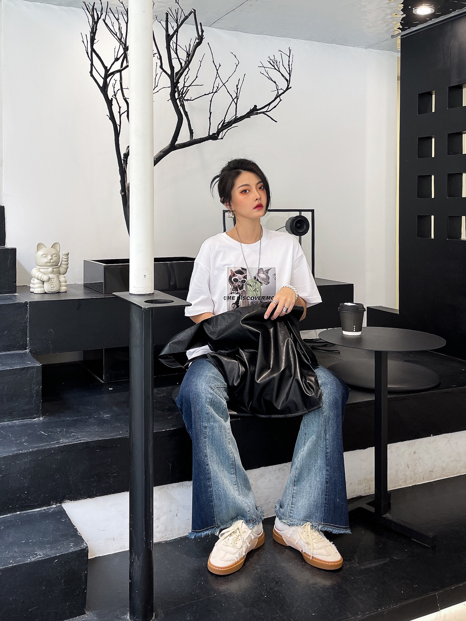 Hi⁉️我是买啥都要先买绿✅ 穿搭一天不会停的綠子~ 今天分享一下近期最爱的半拖!FOOT INDUSTRY的德训鞋最近真的太火了!他们家新出的德训毛边半拖太好搭啦,今天来看看吧! 搭配心得| 白色猫咪印花短袖,搭配蓝色微喇牛仔裤,深浅搭配感觉刚刚好,鞋子配上这个白色德训半拖,非常有韩式休闲的感觉! 搭配小心机| 选择一个合适的小包包搭配起来会更有氛围感哦!!!为了这种效果用抓夹随意夹一下头...