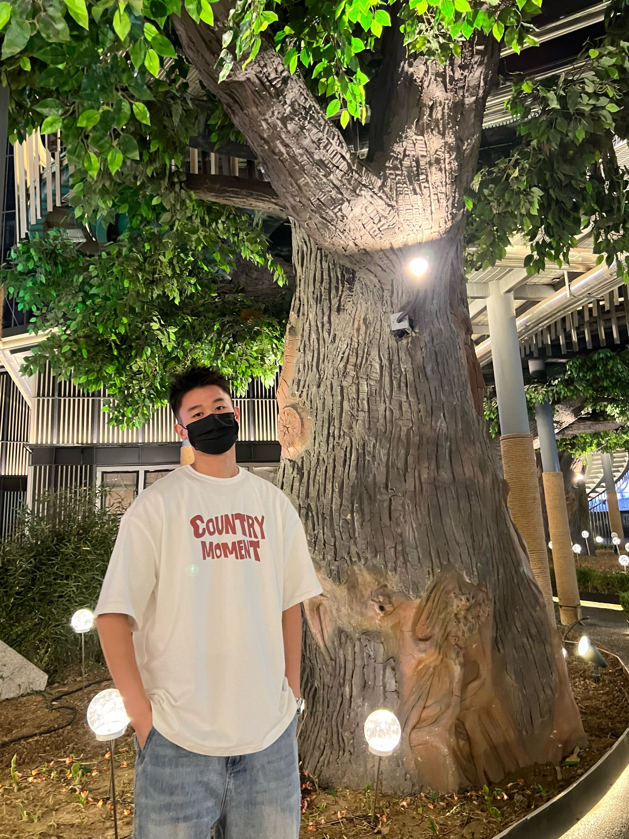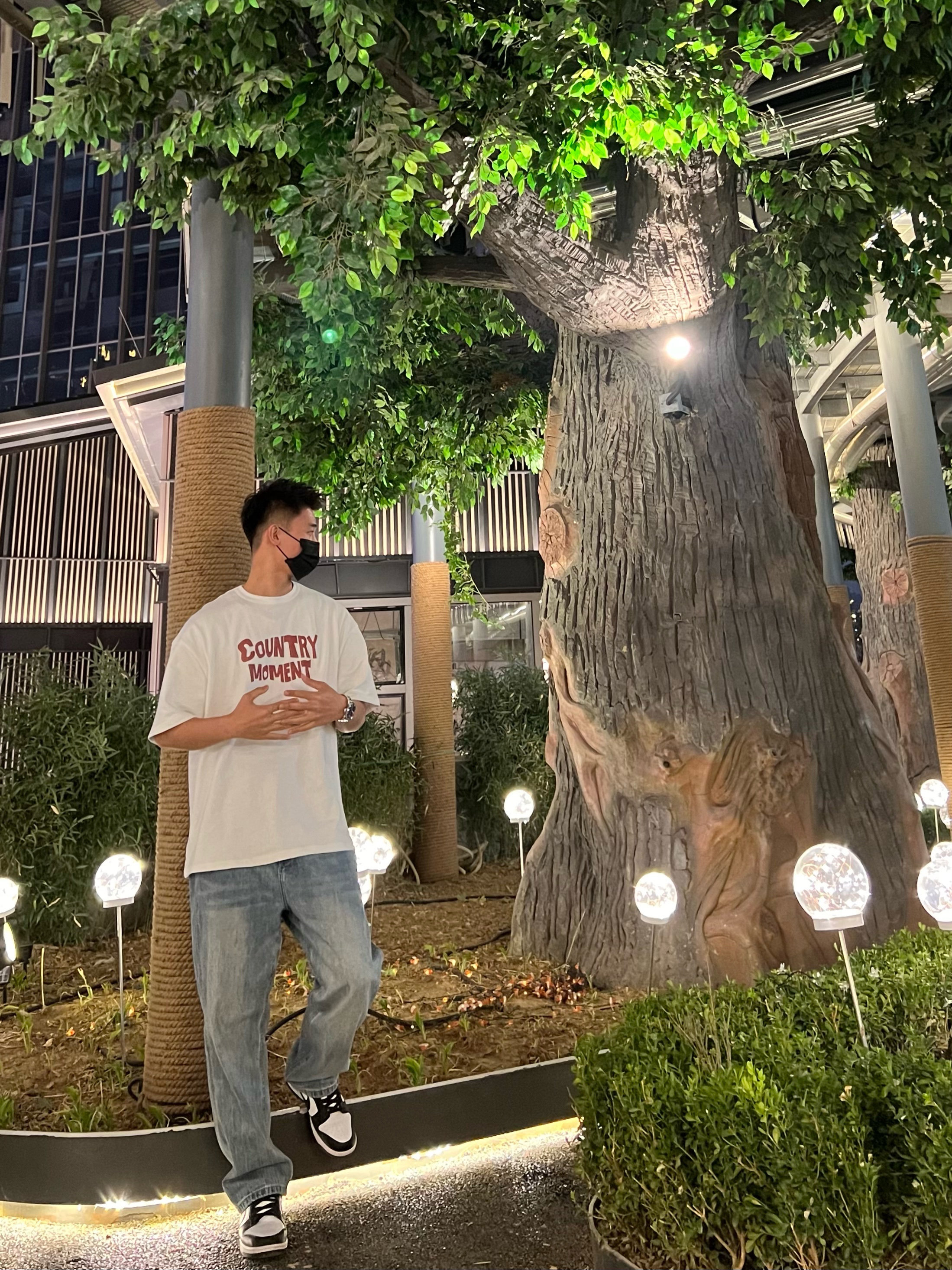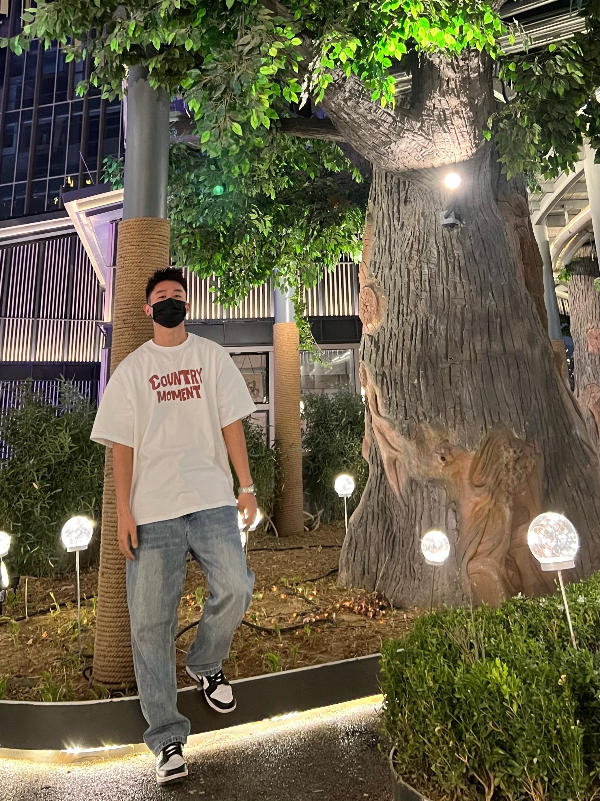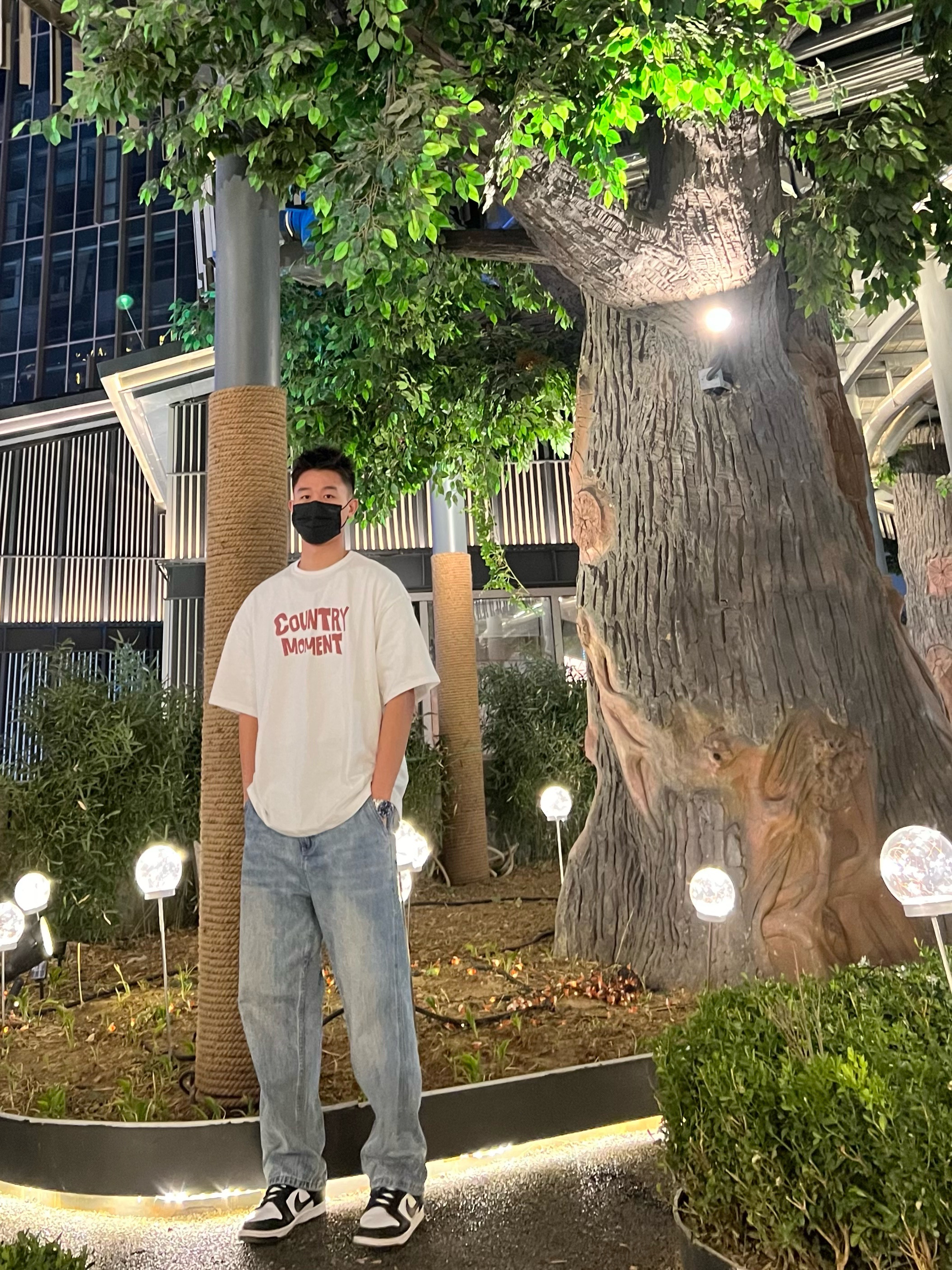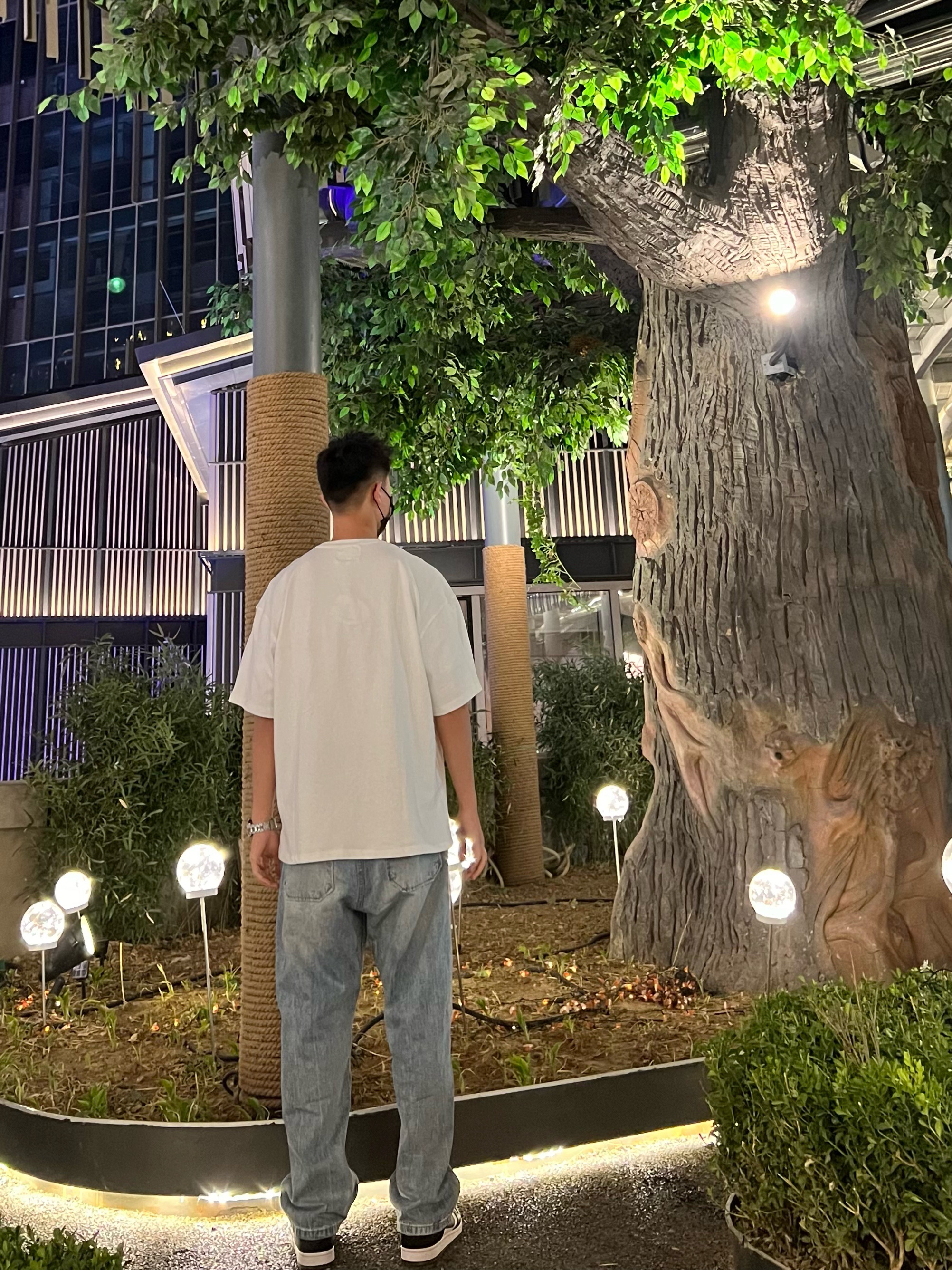 👔白色字母印花T恤 👖浅蓝色直筒牛仔裤 👟nike dunk 熊猫