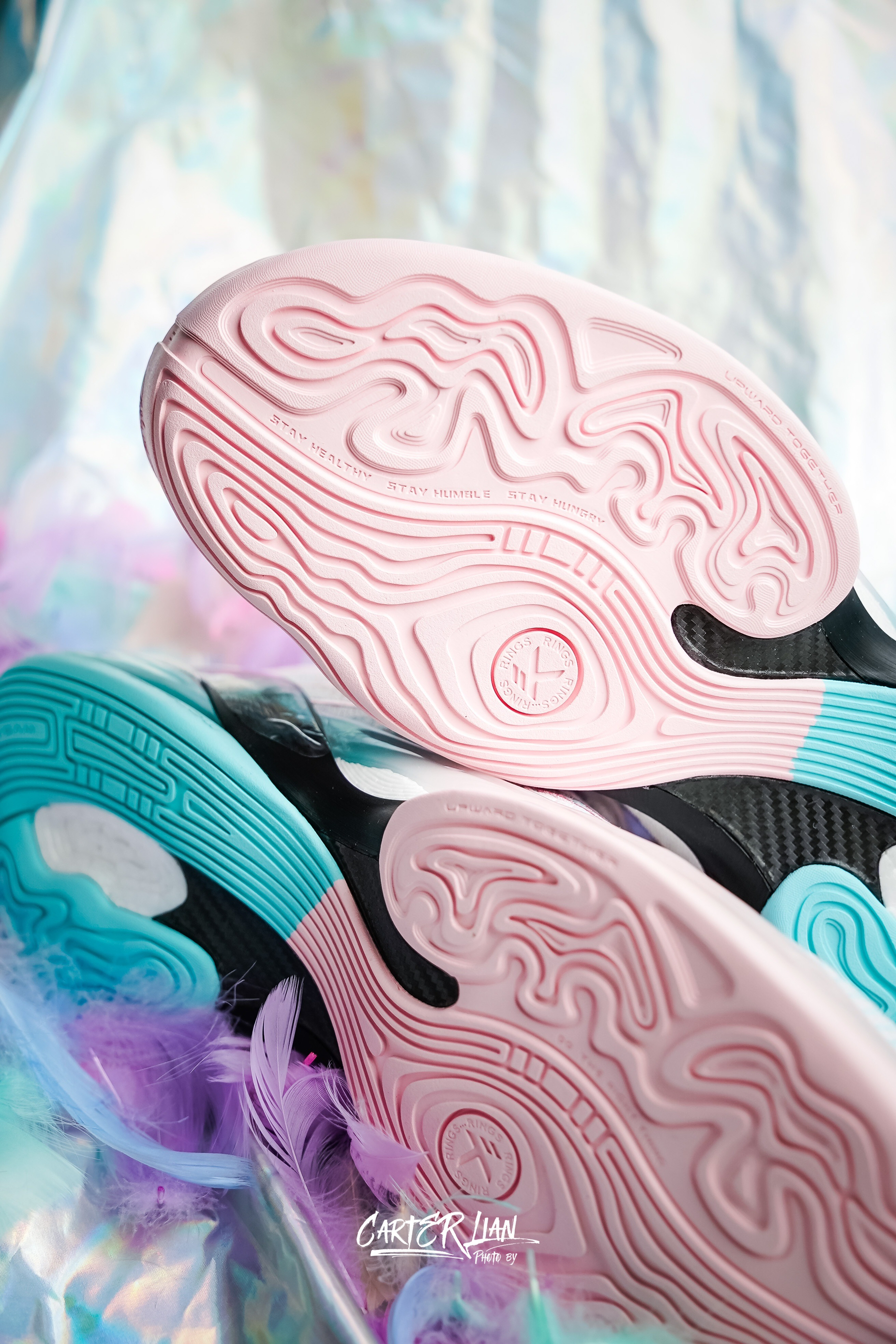 KT7Low一出来我入手的第一个配色就是巴哈马的配色了,毕竟和当时高帮洛杉矶配色非常接近。不过拿到实物后觉得低帮版本还是更适合我些。 鞋款名称👟:Anta安踏 KT7 粉蓝 巴哈马 整体细节👀:整体粉蓝配色,这种交错编织的颜色感觉特别的清新,鞋面的编织面料也让鞋面可以保持更好的包裹性,同时把品牌logo通过刺绣也融合到了鞋面的线条里,非常和谐,后跟的提拉设计了闪卡的效果也是很好看。区别于高帮版...