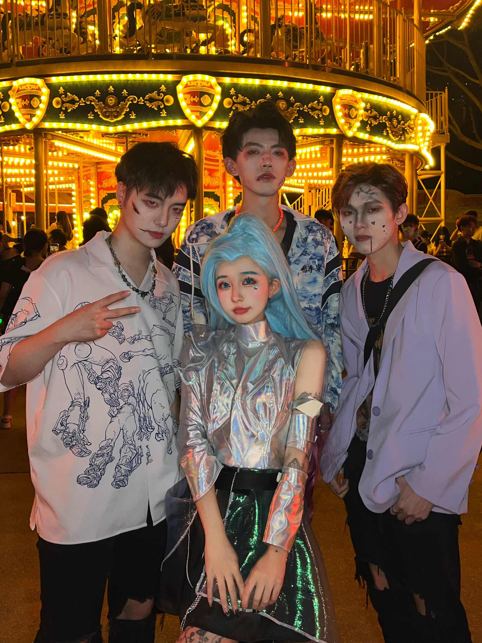 第一次尝试游戏女团人物的仿妆 太 太不戳了! 距离上一次 做女团还是在梦里! 因为我很喜欢玩游戏 所以才跟朋友约着穿一次女团的衣服 当然 妆容都是我自己在家画的 眉毛直接用的蓝色眉膏 眼影都是用腮红涂的