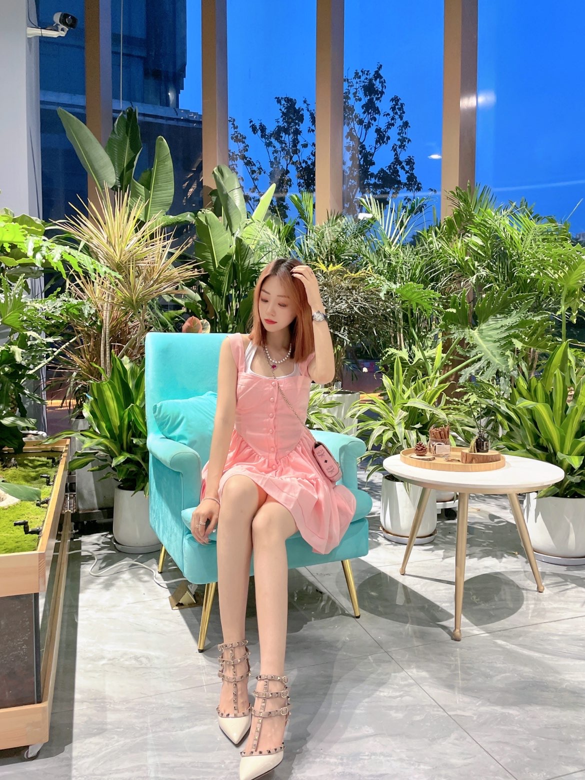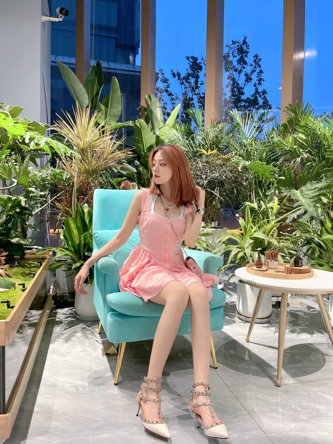👗:#APEA ⌚️:#Cartier 👜:#MCM 👠:#Valentino/华伦天奴 七夕约会怎么穿,当然是选择一身可爱又甜美的小裙子啦,粉色系,再搭配一个链条包,珍珠项链。再穿上男朋友最喜欢的高跟鞋,华伦天奴三环高跟鞋是永远的经典,6.5cm也很容易驾驭,超级显腿细。再拉着他的手,一起在花园餐厅里吃烛光晚餐。他一定心里砰砰砰!他的女朋友便是全场最耀眼的!