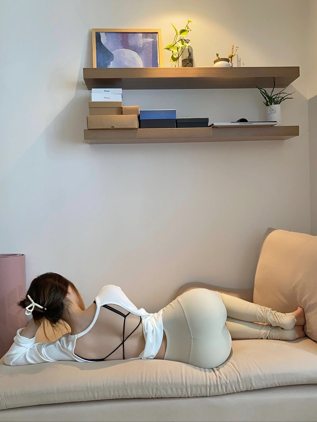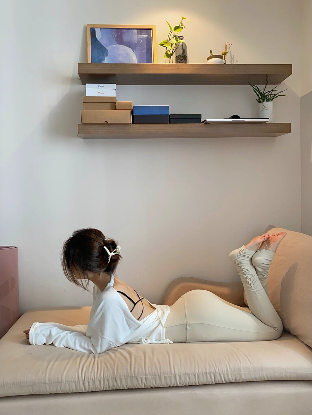 天冷也要坚持锻炼呀 心情会变好 身材也会变好🐱 米白色的瑜伽服很显温柔 脚踩瑜伽裤保暖🉑️显腿长 瑜伽过后再来一根喜欢的蛋白棒 酥酥脆脆的好吃也不会长肉 满足了爱甜食的我🙊 👕👖瑜伽服:LaNikar 蜜桃臀 臀部塑形 瑜伽服 见人不如健身