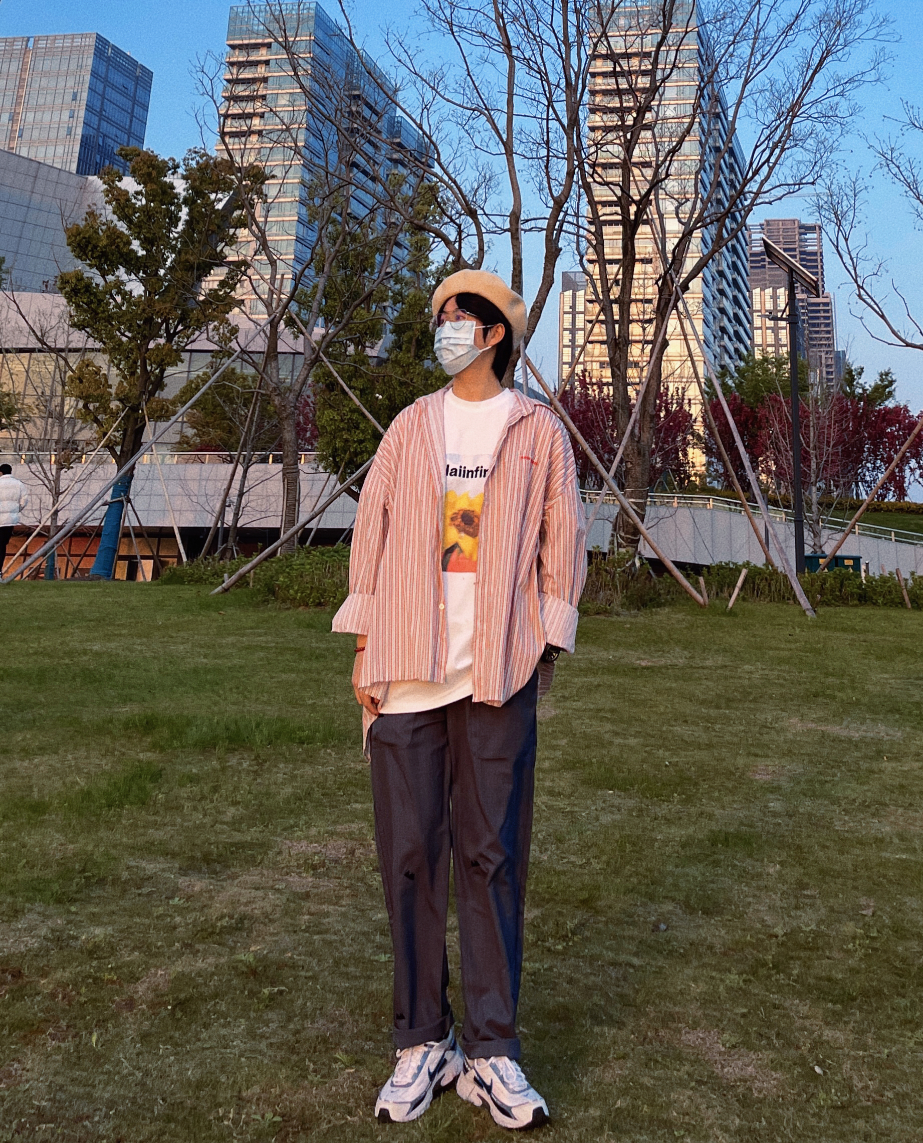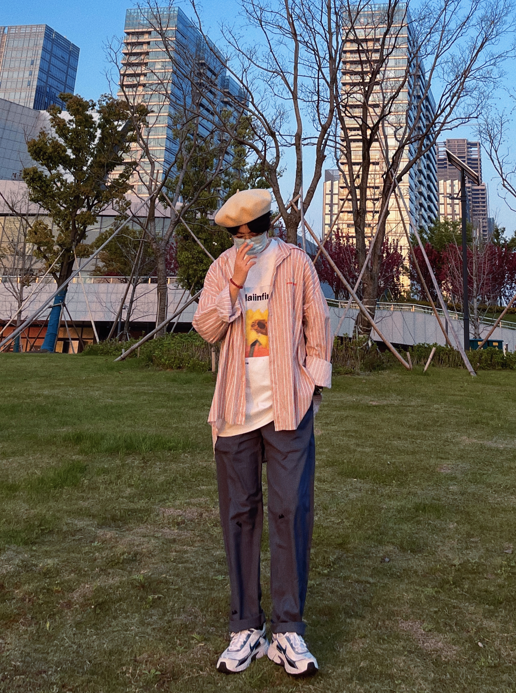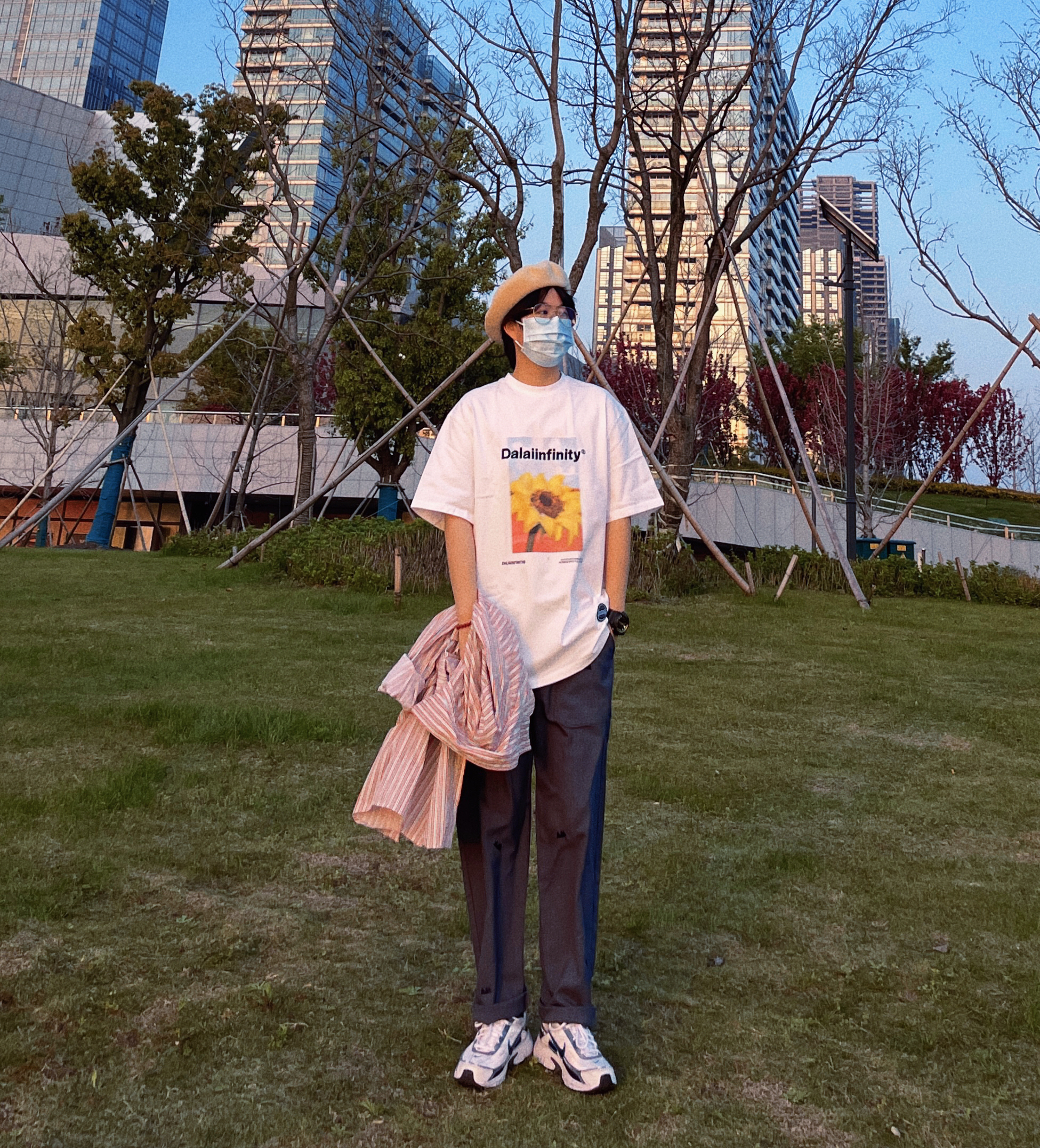 ✨今日穿搭 白色向日葵印花T恤 灰色休闲裤 橘色条纹休闲衬衫 nike老爹鞋 杏色南瓜帽 ——————————————— ✨纯白色的印花T恤不论是单穿还是内搭都是很不错的一件单品 搭配暖色系的条纹衬衫 很有夏日气息 ——————————————— ✨每日穿搭|夏日穿搭|橘色条纹衬衫穿搭|灰色休闲裤夏日穿搭|氛围感穿搭|nike老爹鞋穿搭|男友风穿搭|今日穿搭