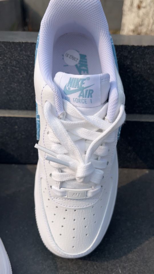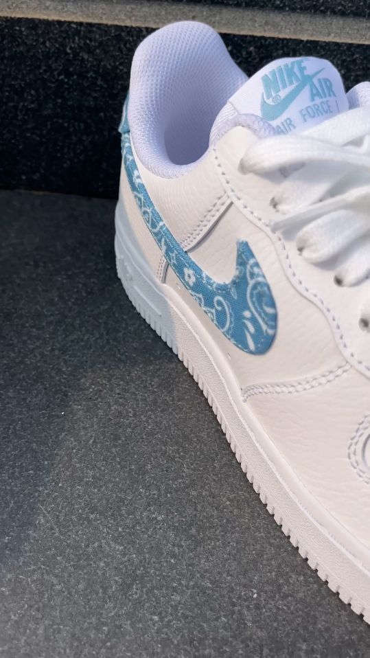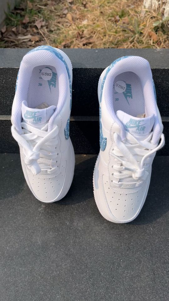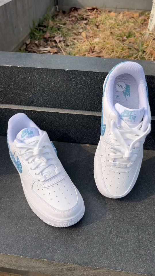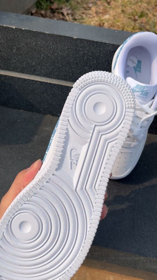 鞋名:Nike Air Force1'07 Essential"Paisley"经典休闲板鞋女款白蓝腰果花 MG潮玩家今天 给大家聊一聊这款鞋子 ——🥞 鞋面采用白色组成,浅蓝色点缀,整体外观配色很是好看,也很百搭的鞋子。 ——🥞 帆布皮革的鞋面材质。质感透气性不错,侧面LOGO腰果花的设计很时尚。 ——🥞 橡胶大底耐磨防滑,很经典百搭的鞋子。