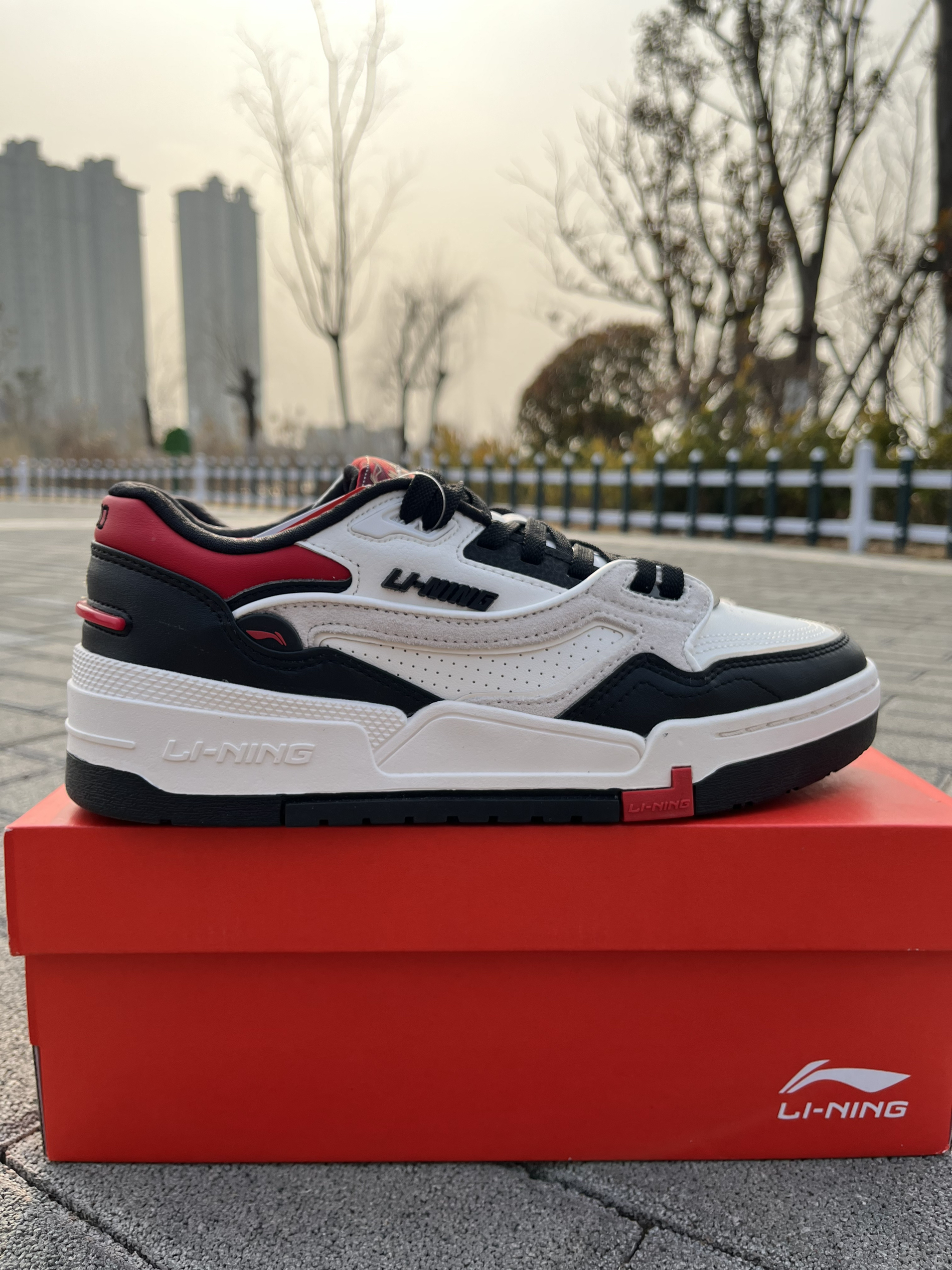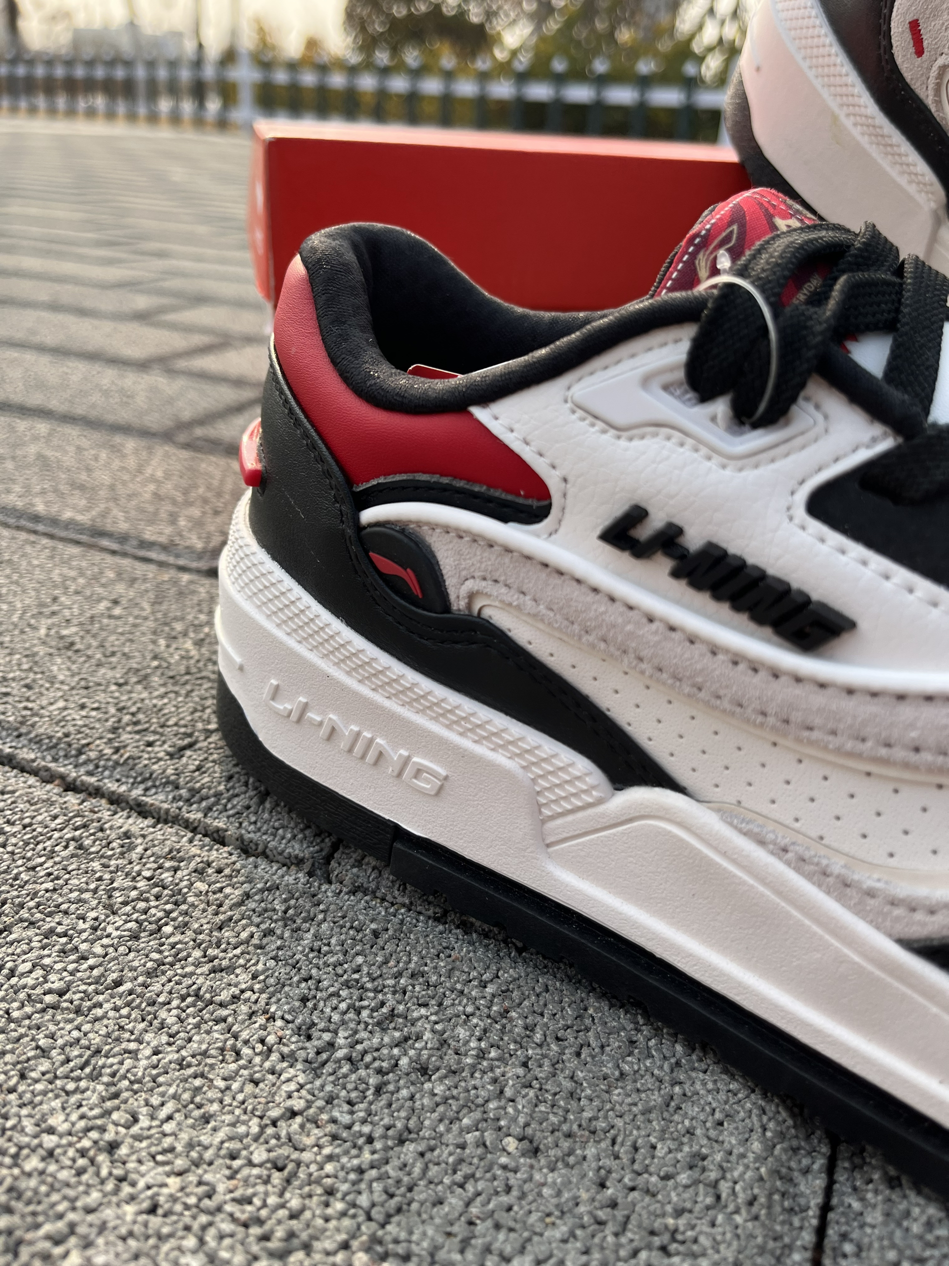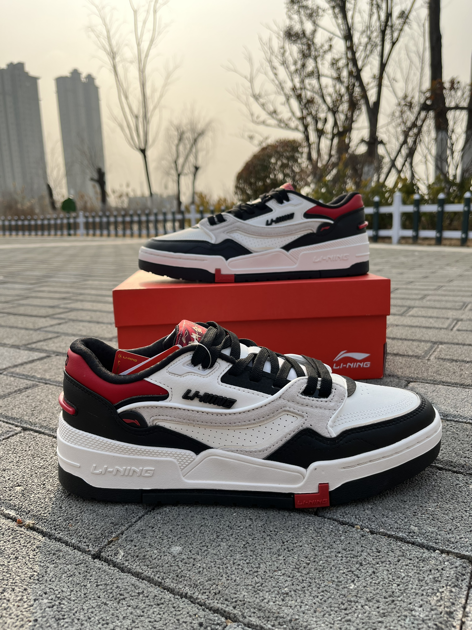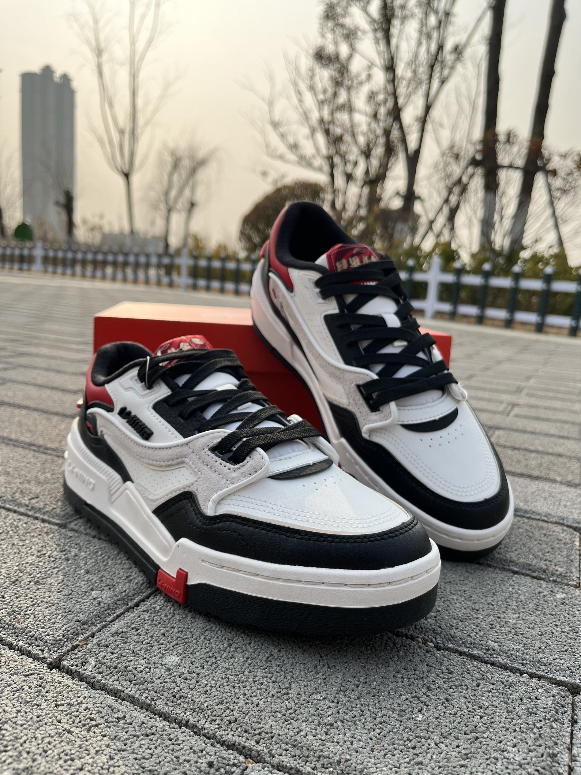 东毒西鞋今日分享 👟鞋名:【春节精选好货】【肖战同款】LiNing李宁日进斗金001经典休闲板鞋黑白红 🧗♀️ 鞋面采用白色组成,红黑点缀。鞋子整体配色很是好看。 🧗♀️ 鞋面采用织物合成革的材质,材质质感不错。 🧗♀️ 中底EVA的科技,鞋子脚感舒适。橡胶大底耐磨防滑。
