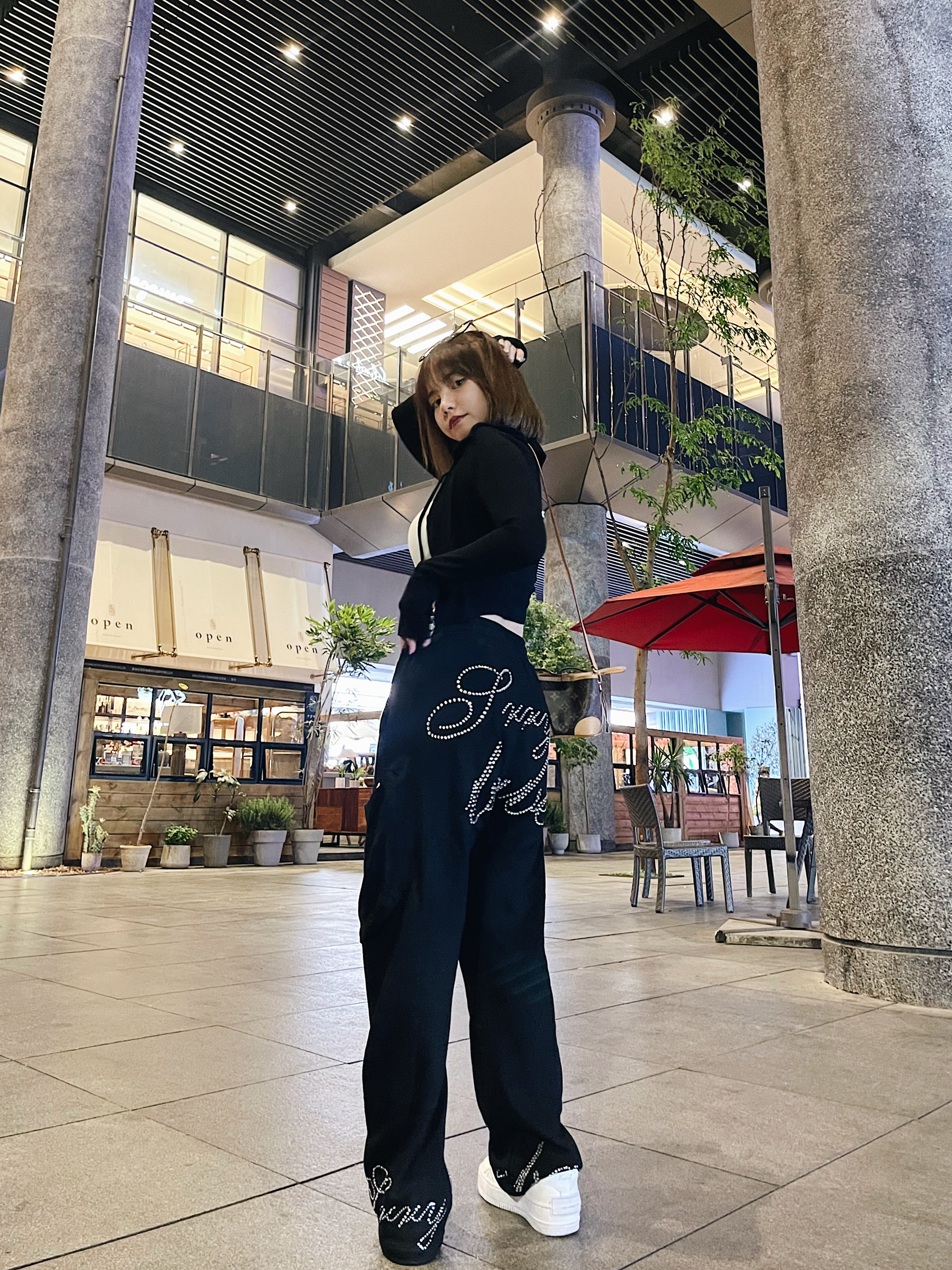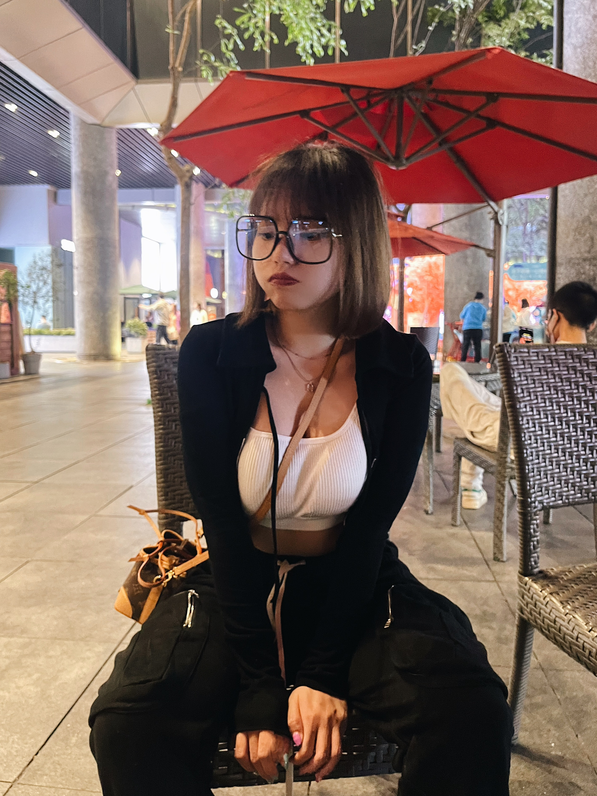 今天刷到一个视频 说女生坐姿不够淑女被吐槽 然后翻到自己昨天的照片 就是标准的【不淑女】坐姿了 又怎样 我舒适就好了 为什么要时时刻刻都淑女呢 穿裤子不就是为了舒适方便么~ 最近就是好爱黑色啦 短款内搭加一件修身的黑色小外套 裤子依旧是我很喜欢的嘻哈宽松版型 裤子后面还有闪闪水钻 上紧下松的搭配法则 不会显得臃肿和用力过度 👖:𝗦𝗿𝗿𝘆𝗯𝗮𝗯𝗲 👛:𝗟𝗩