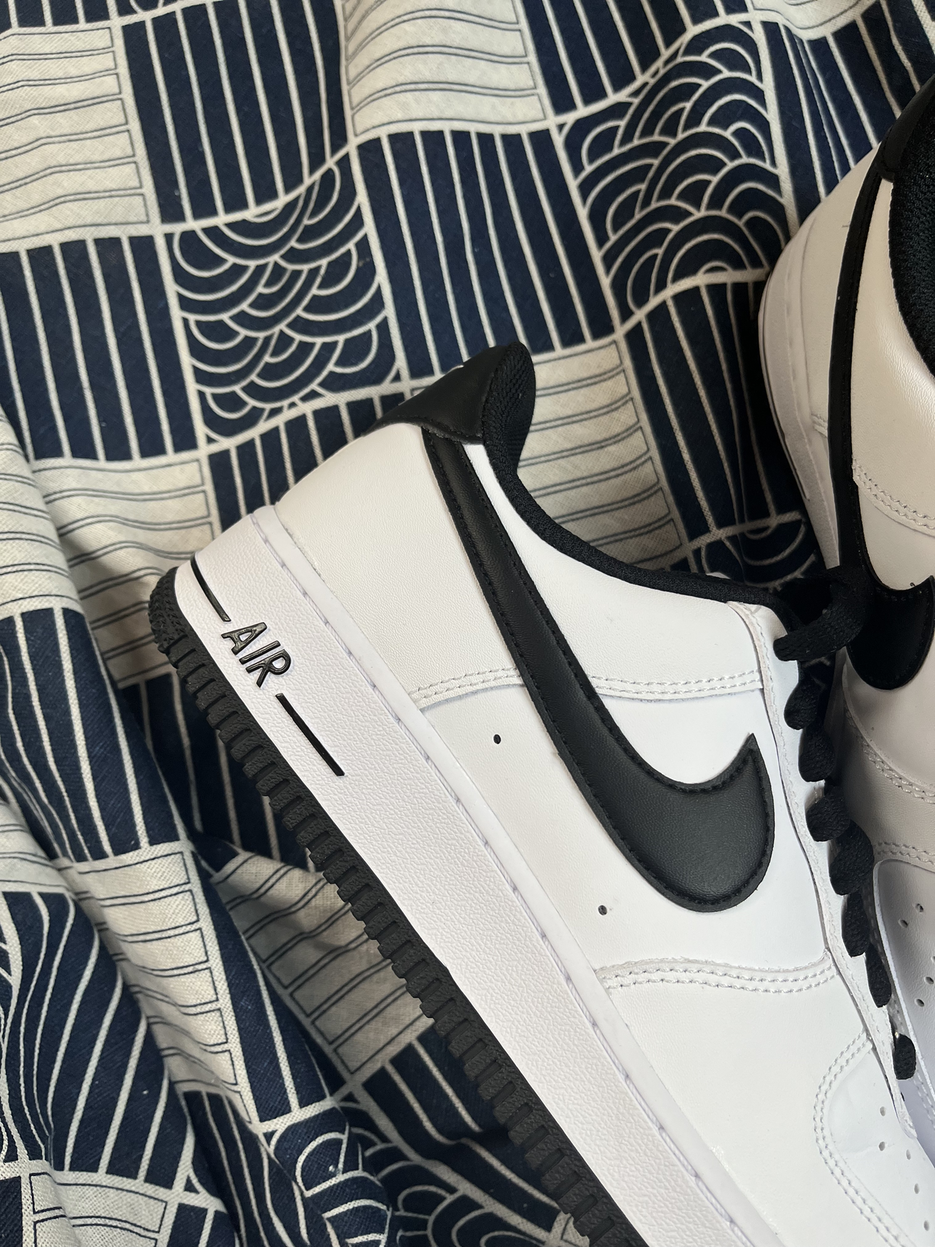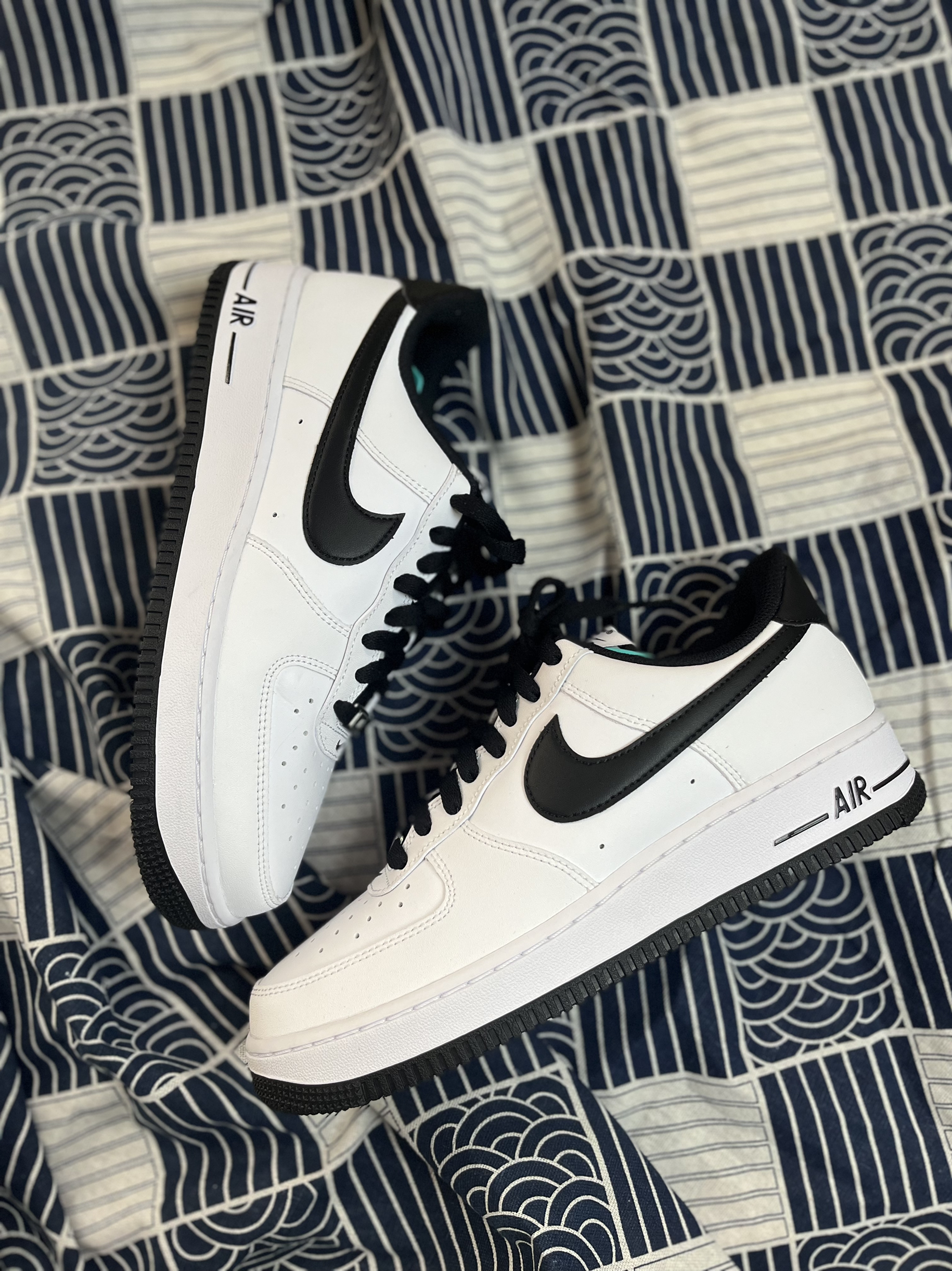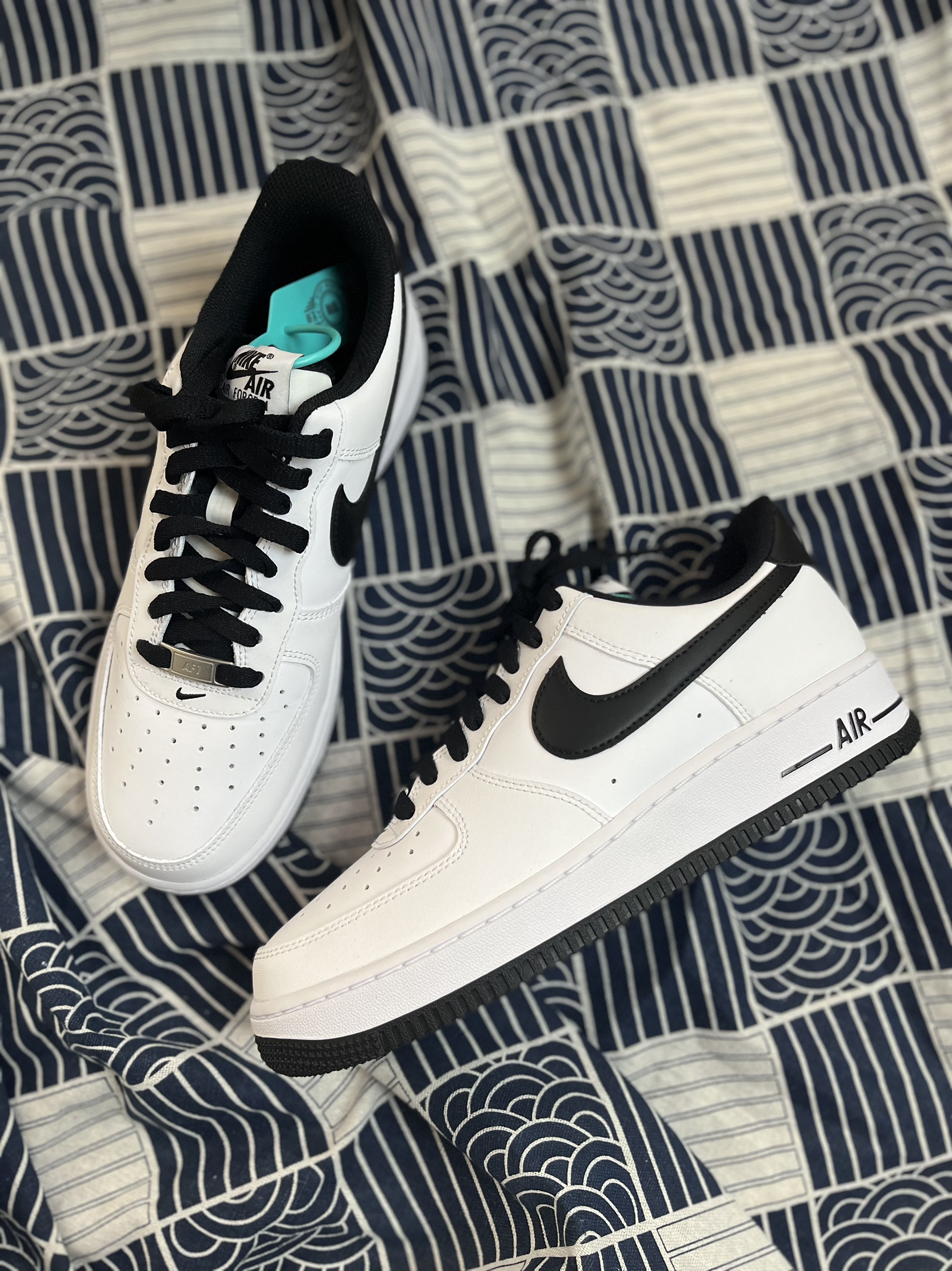 鞋名:Nike Air Force 1 Low '07低帮休闲板鞋白黑色 接下来彦祖来讲解一下这款鞋 🏂这款鞋子的鞋面采用白色组成。黑色点缀。外观很是经典潮流。 🏂鞋面二层牛皮革人造革的材质组成,鞋子质感不错。 🏂中底采用了Air Sole的缓震科技,脚感舒适,黑色橡胶大底耐磨防滑。这款鞋子还有着一定的增高效果。