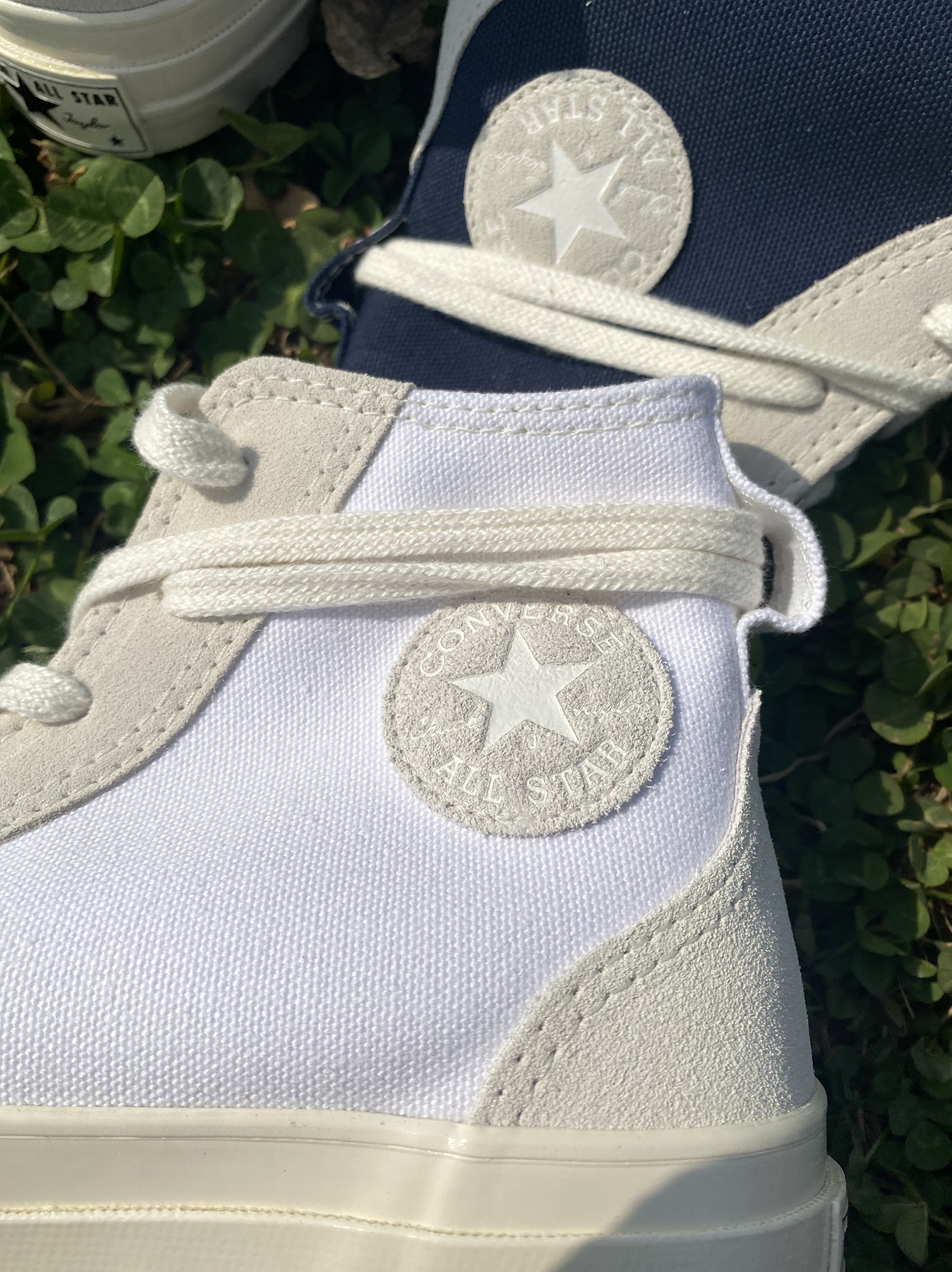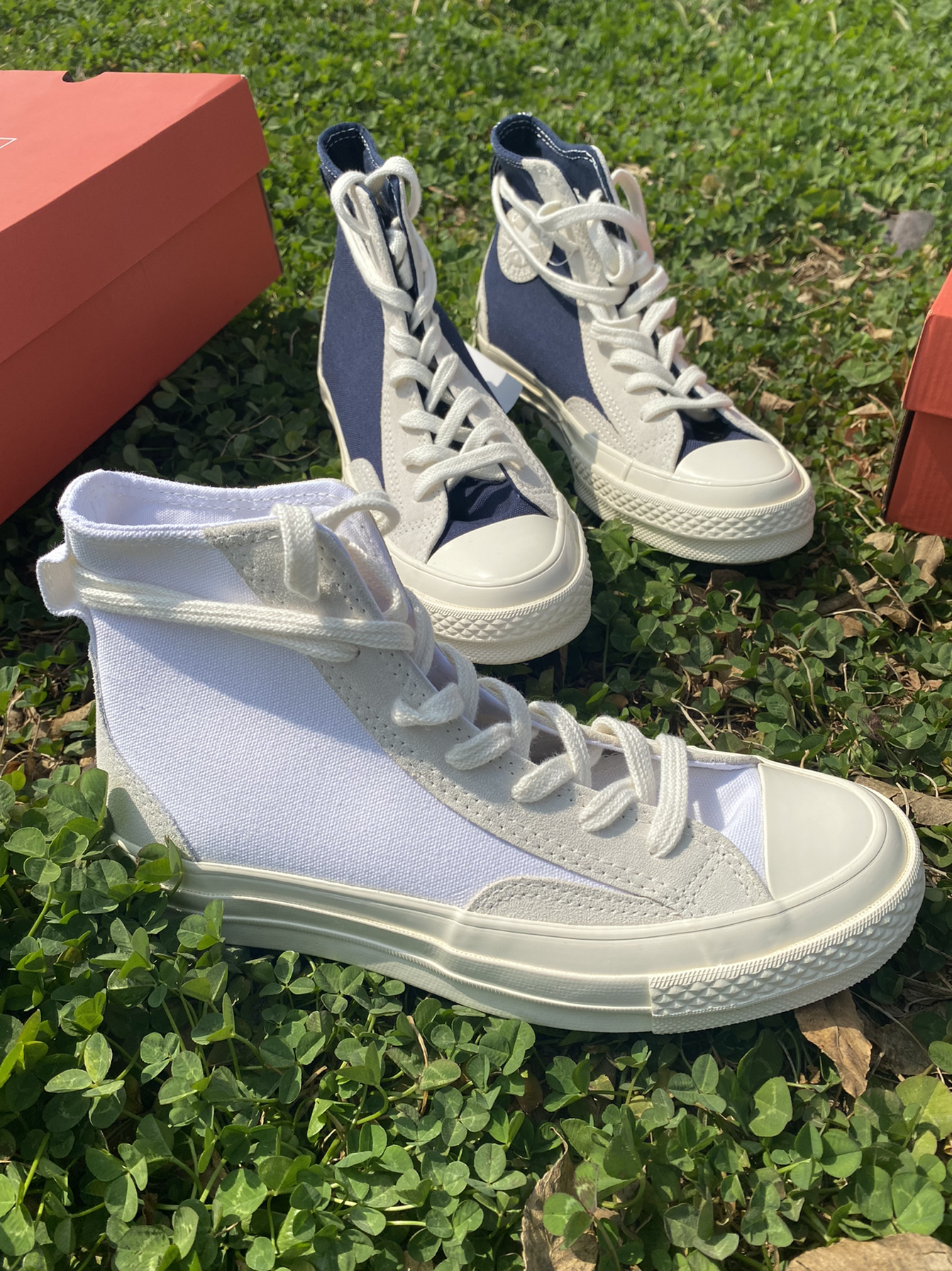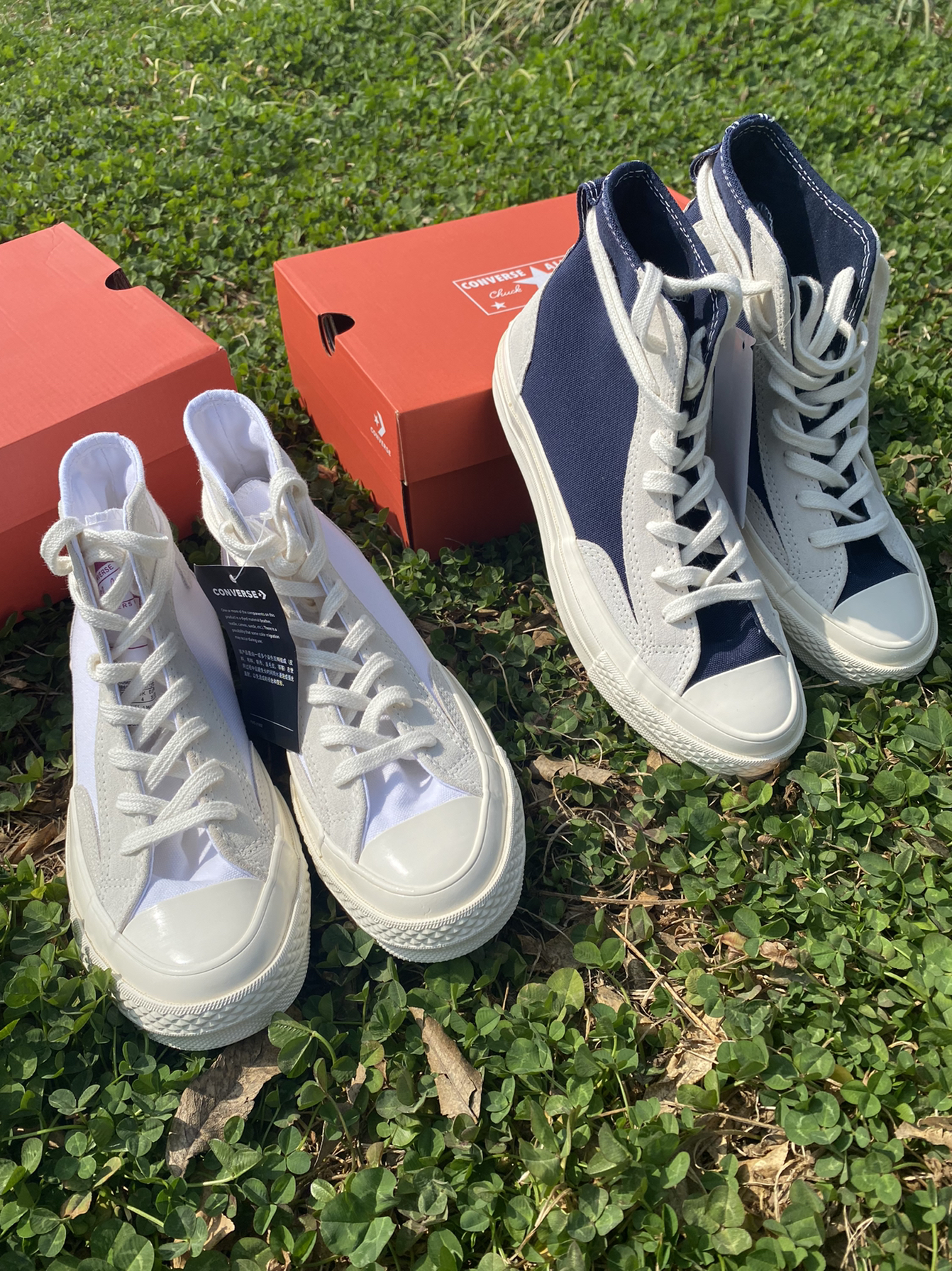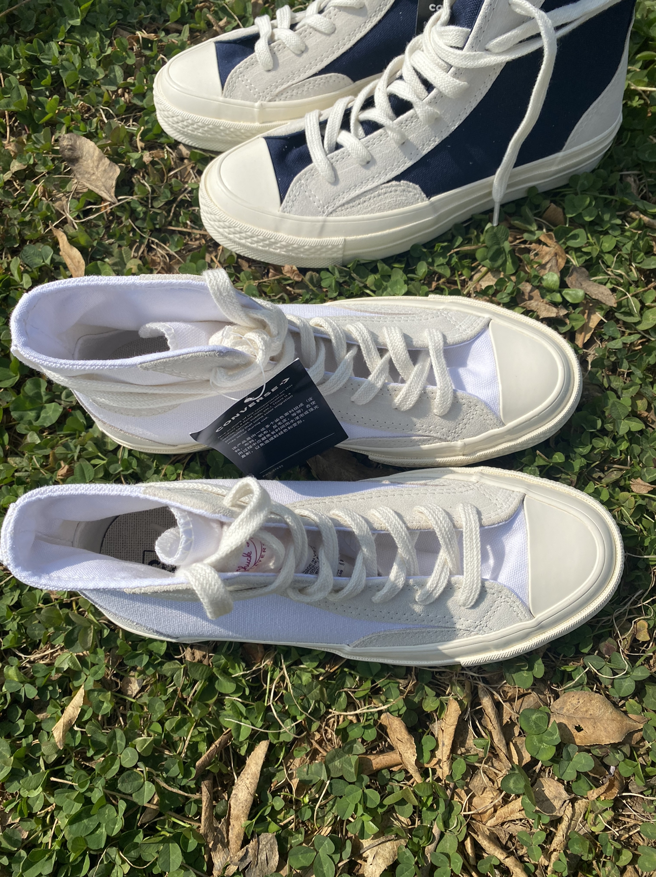 🍑:【马嘉祺同款】ConverseChuck1970sHi Obsidian麂皮拼接高帮休闲帆布鞋男女同款墨蓝 🍑:墨蓝色的匡威感觉比较复古,类似海军蓝的鞋面搭配麂皮材质不错的设计,适合男生穿搭。 🍑:【黄明昊同款】ConverseChuck1970s Hi Obsidian魔皮拼接高帮休闲帆布鞋男女同款白灰 🍑:而白灰色比较清新自然,搭配衣服用很甜的感觉,女生可以搭配白裙子,非常好看。...