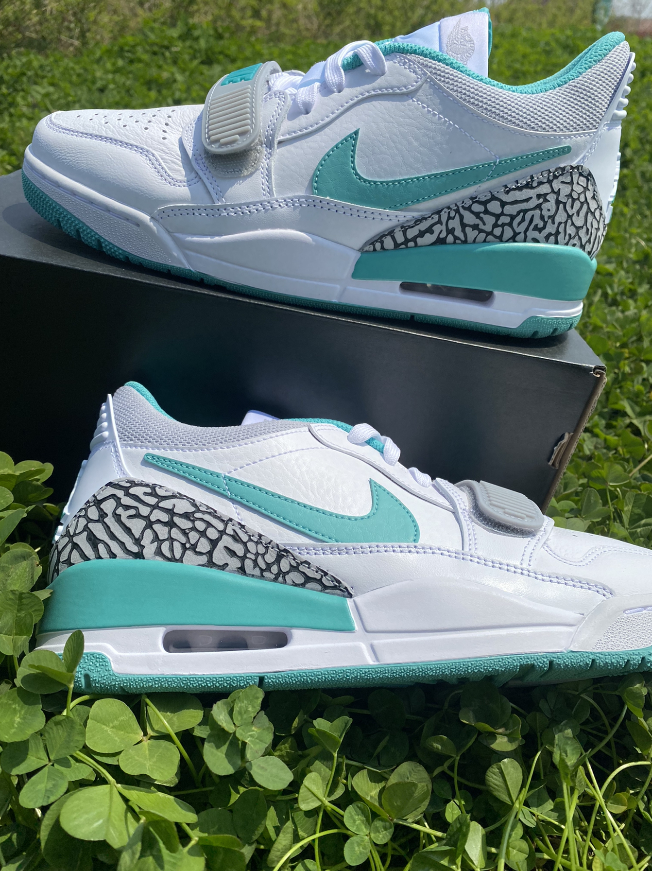 👟:Air Jordan Legacy312Low"White Turquoise"复古篮球鞋白绿小蒂芙尼 🍑:设计灵感选自AJ3、AJ1和AlphaForce的经典元素 ·皮革、合成材质和织物组合鞋面,结合中足固定带,稳固贴合后跟的鞋底加入可视Air缓震技术。 🍑:这双AJ312,全新的配色象征着夏天到来,一直以来312的价格都和性价比贴不上,而这款八百多的性价比,还是可以的。 🍑:搭配衣...