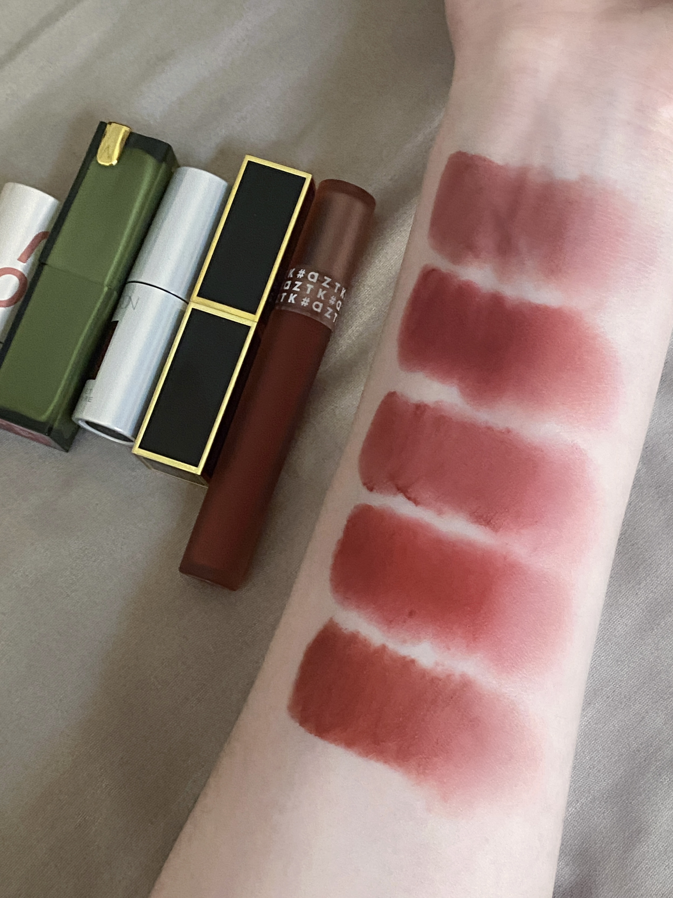 本篇笔记关联了INTO YOU 空气感薄款哑光唇泥 雾面显白不易沾杯丝绒柔雾 1.8g W2水柿、酵色 复古抹茶太妃糖口红 持妆显色 3.2g 201赤豆琉璃、Tom Ford/汤姆福特 2.0细黑管柔雾唇膏 丝缎哑光水感 3.3g 52裸玫瑰 玫瑰茶棕色 NAKED ROSE等商品,为用户提供真实的使用体验和购买参考。