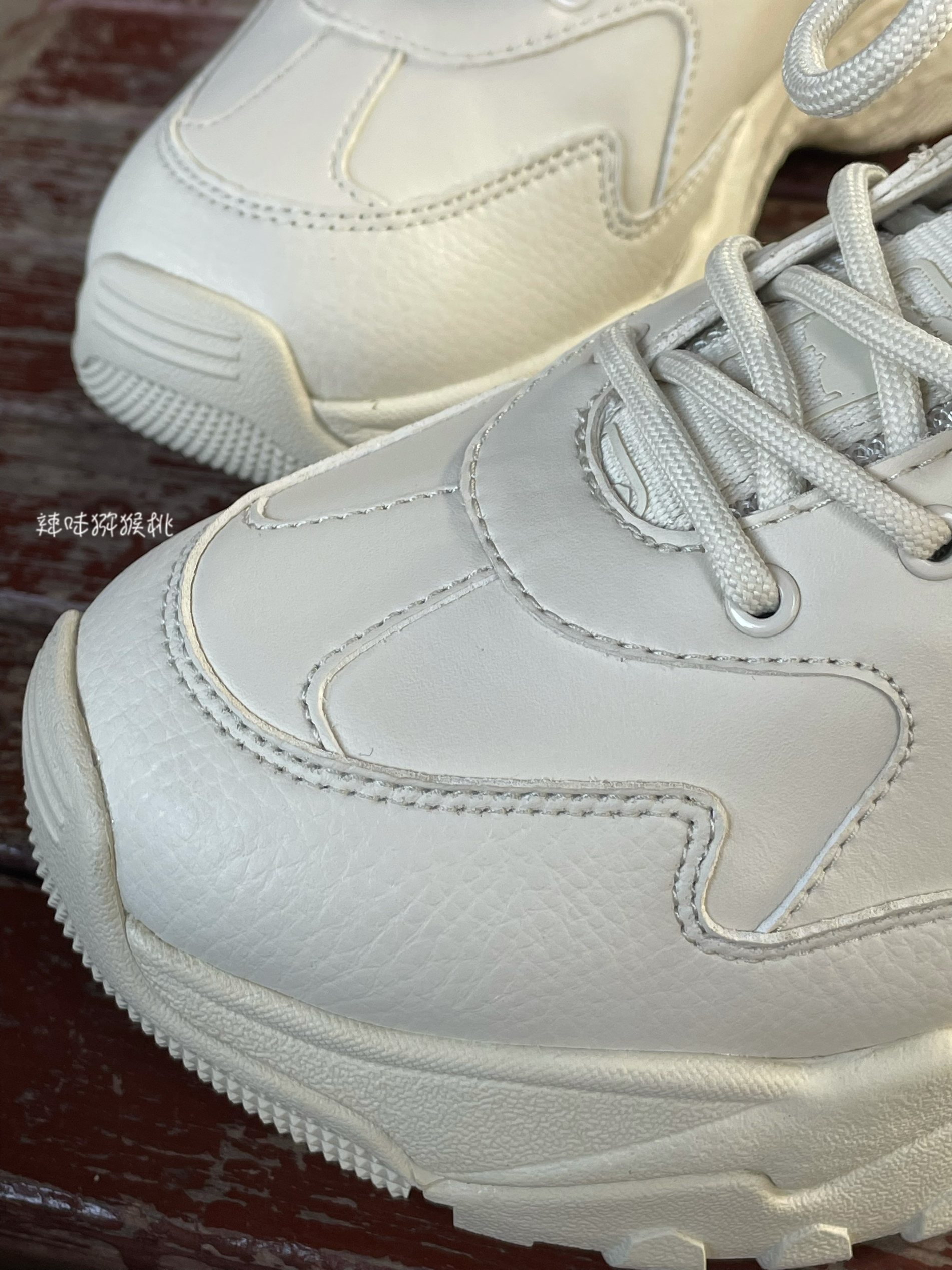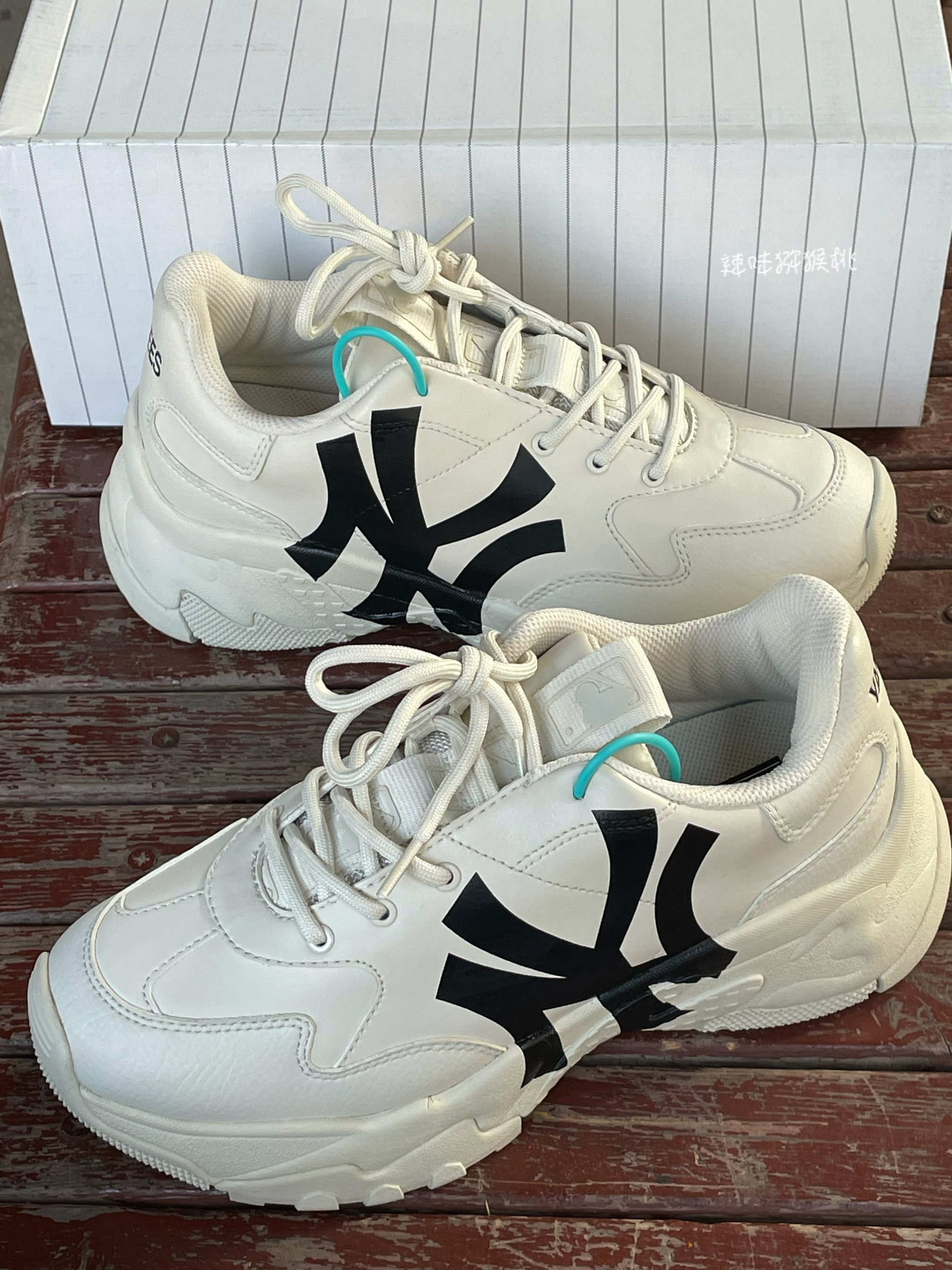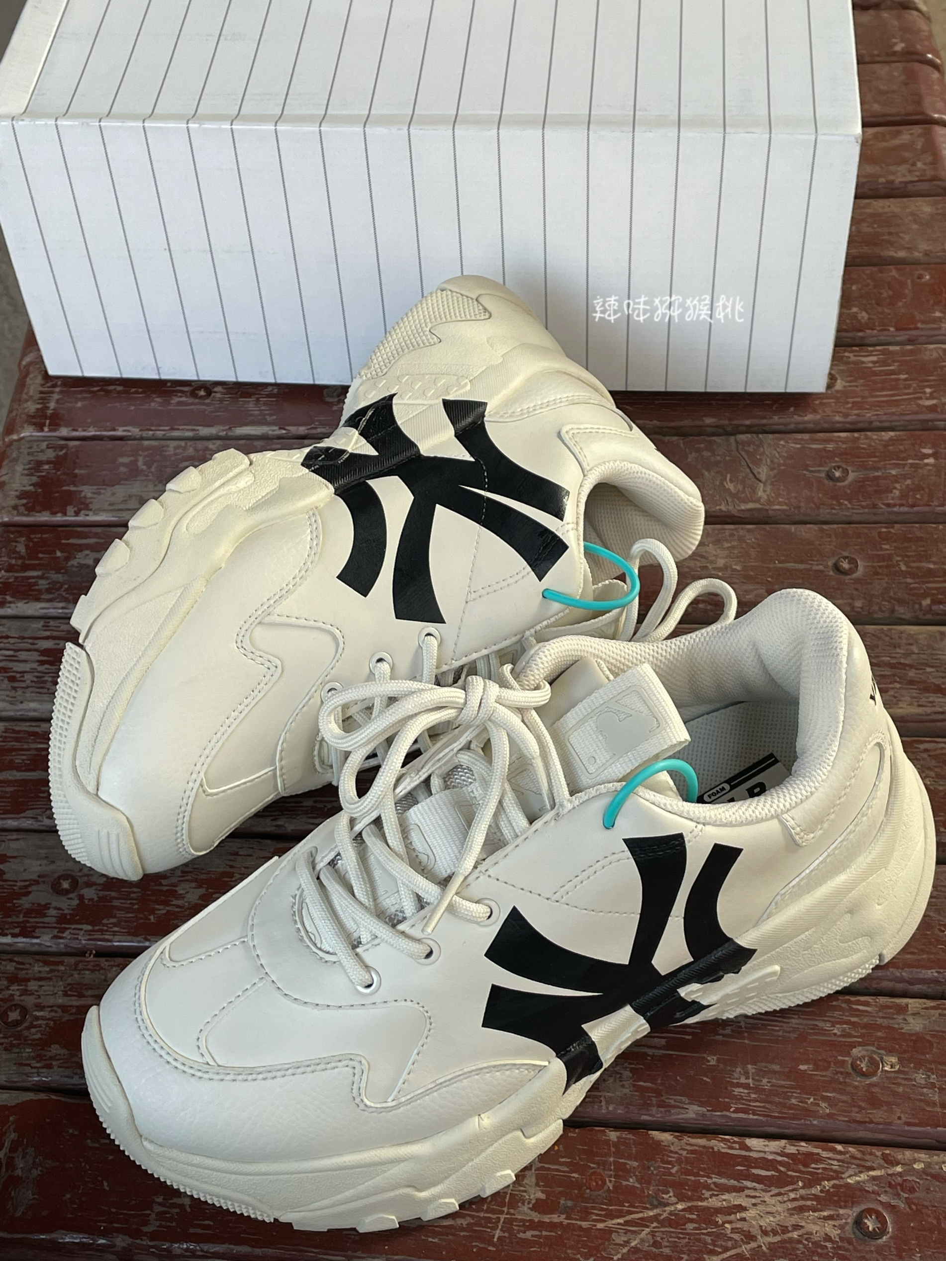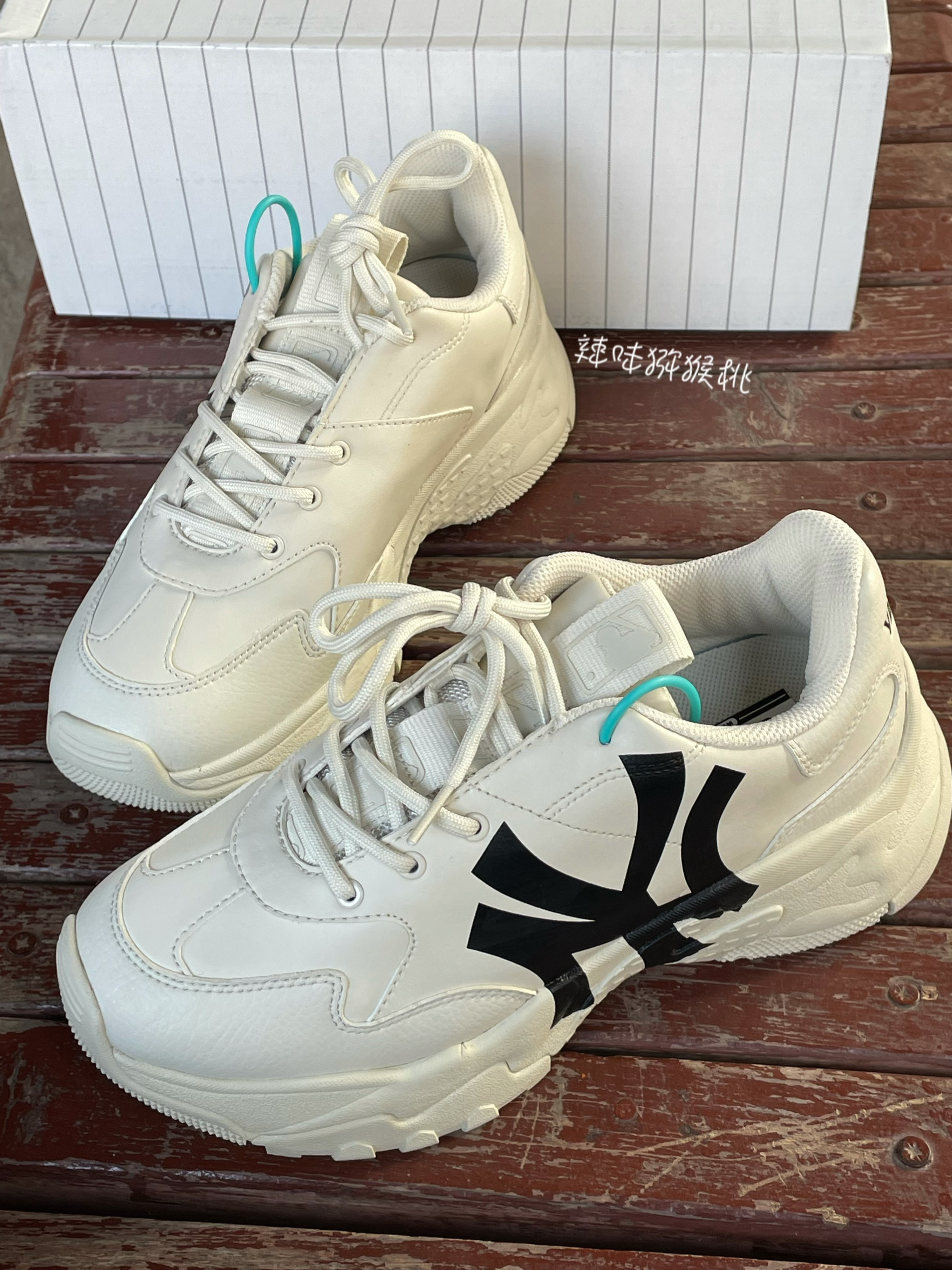 💫:MLB Big Ball Chunky复古印花 老爹鞋 米黄男女同款 鞋子简约复古,真的很好看,增高效果也是相当好! 鞋子外观配色以米黄色为主色调,黑色对鞋子细节部分进行点缀。鞋身多处线条设计,为鞋子打造了不错的层次感,鞋子侧身黑色大Logo设计,品牌辨识度十足! 整体来说鞋子非常不错,经典线条与时尚元素的精彩交织下复古感十足。 鞋子正常尺码选择,增高效果相当棒!