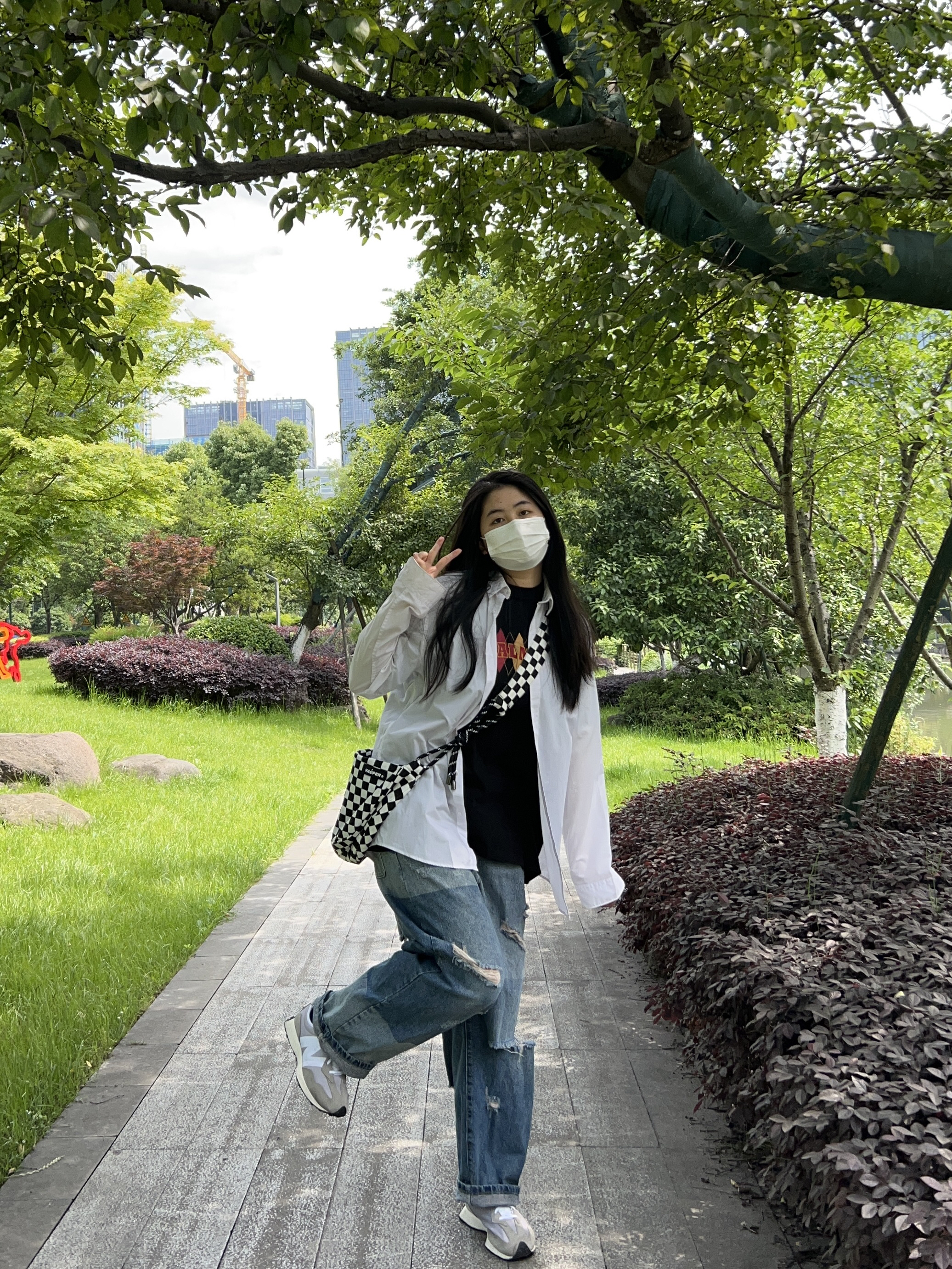 身高170 体重138 牛仔蓝配红色真的好好看诶~ 春夏天真的少不了一件牛仔外套!!! 👔:FEAROM 🎒:alloy