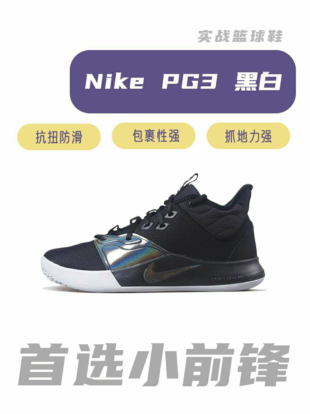小前锋球鞋推荐 1.Nike PG 1 BLACK TIE 黑色 实战篮球鞋 PG1前掌zoom 后掌没有气垫 重心偏高 落地后掌会震脚 鞋底纹路抓地力很强,适合小前锋 2.Nike PG 3 EP lridescent 黑白 实战篮球鞋 抗扭 脚感 鞋面包裹 稳定性这些性能都是可以的 小前锋可以首选 3.PUMA Clyde all Pro “Lakers”实战篮球鞋 包裹感很好 很贴合 重量...