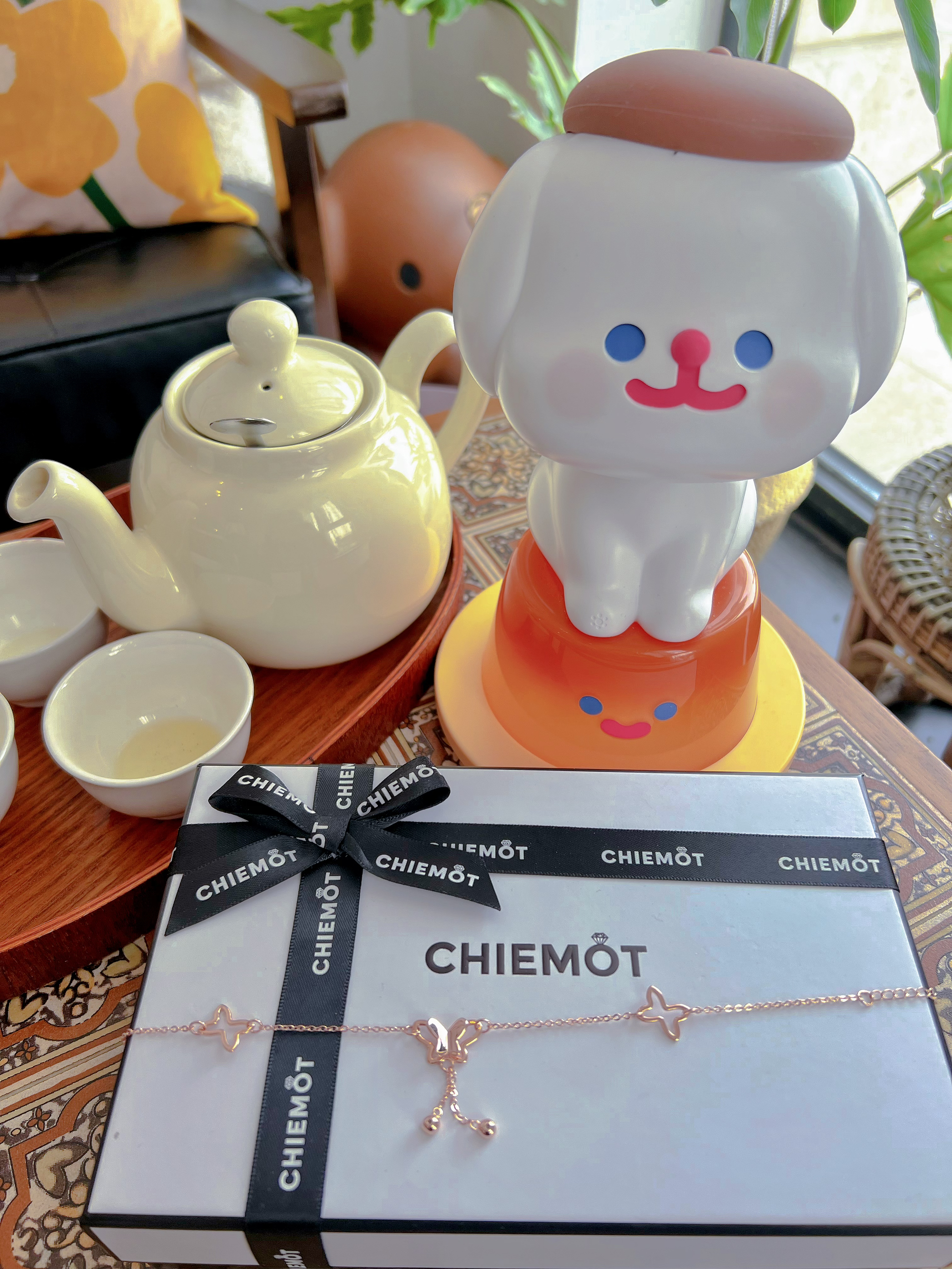 🦋:CHIEMOT 倾情四叶草花灿蝶媚脚链 ⭐️分享一组油画感少女穿搭,坐在地毯上阳光,透过窗帘撒在身上突出少女的曲线,我搭配了这条四叶草蝴蝶脚链,让你赢在细节,夏天穿高跟鞋总觉得腿光秃秃的,带上脚镣,可以让穿搭更有质感~ ⭐️这个少女感的配饰是一个蝴蝶在飞翔的图案,还有两个短短的流苏珍珠~
