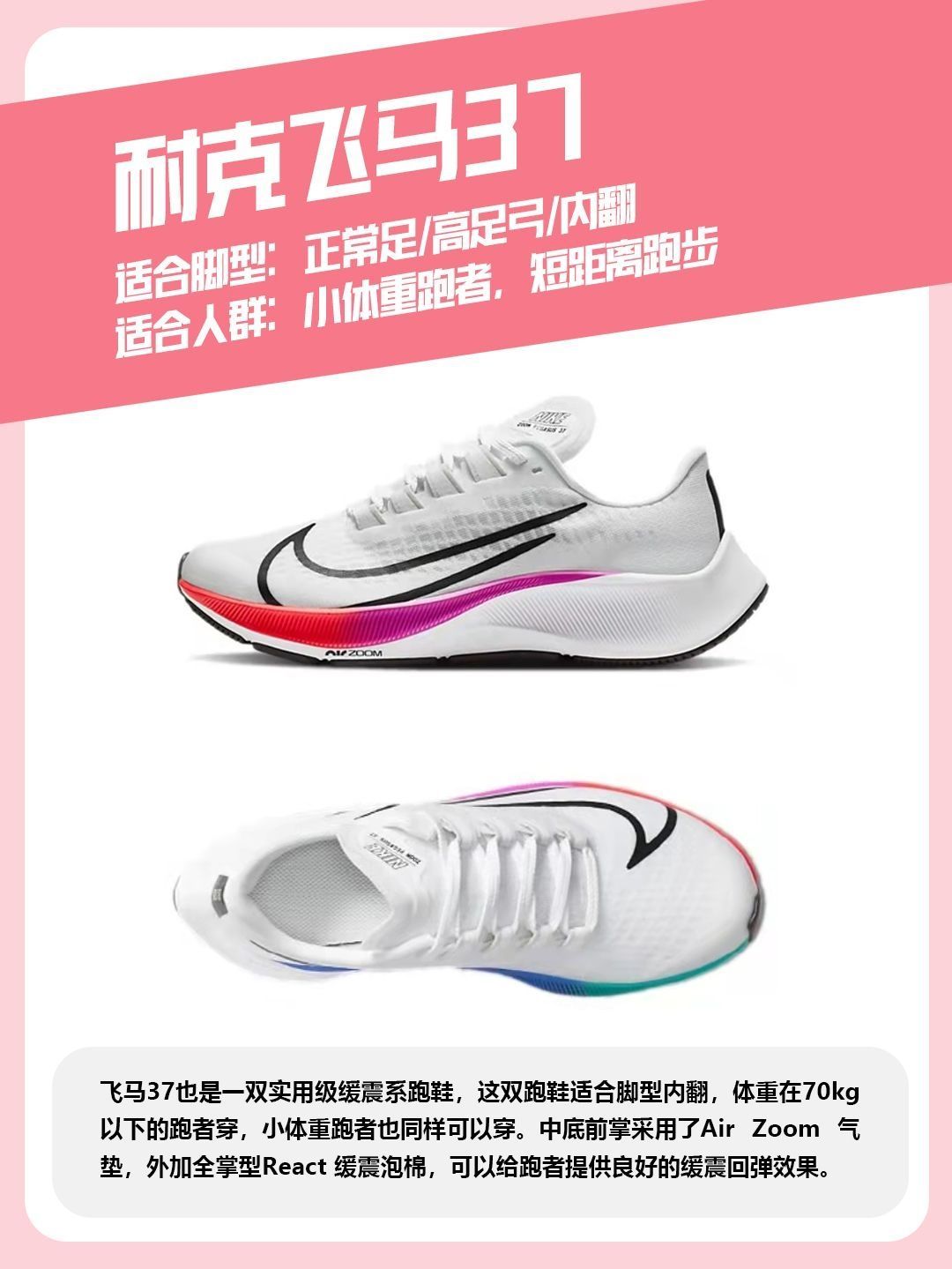 本篇笔记关联了Nike Air Zoom Pegasus 37 飞马 气垫 舒适耐磨 轻便透气 织物 缓震 减震 防滑 防水 合成革 跑鞋 GS/白色/黑色/紫色等商品,为用户提供真实的使用体验和购买参考。