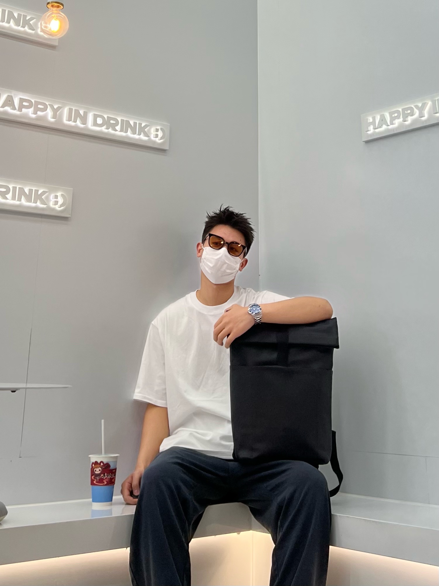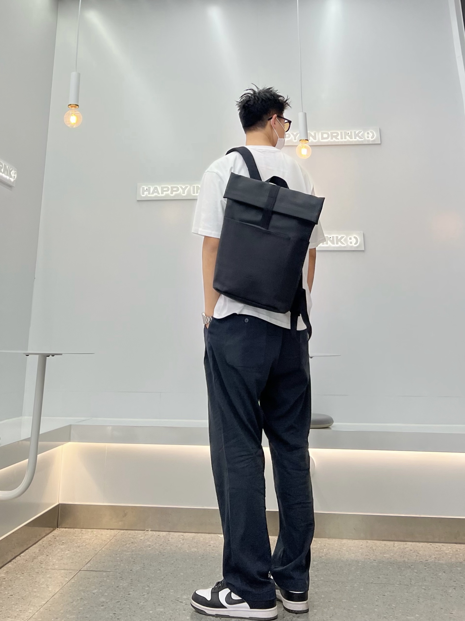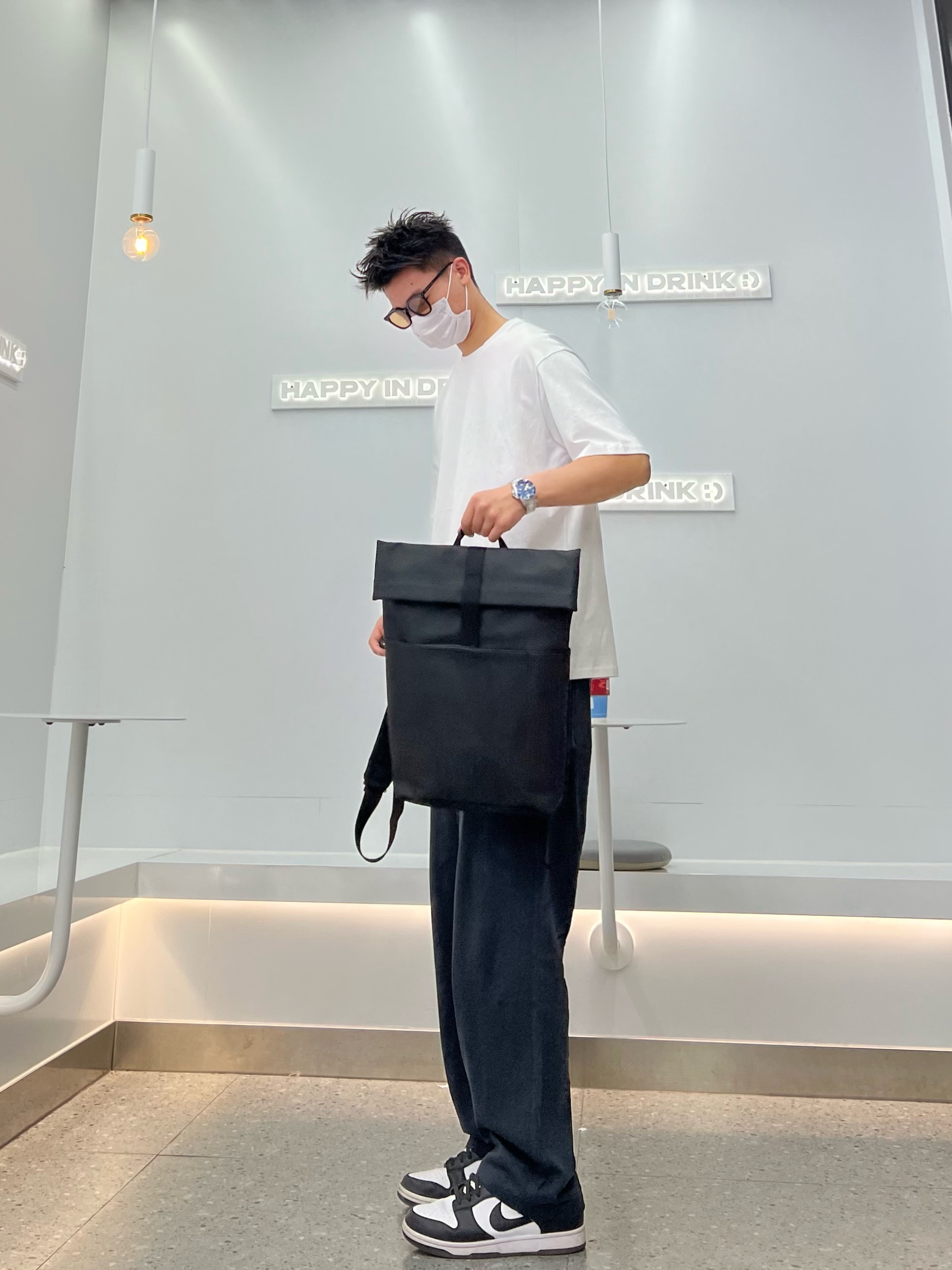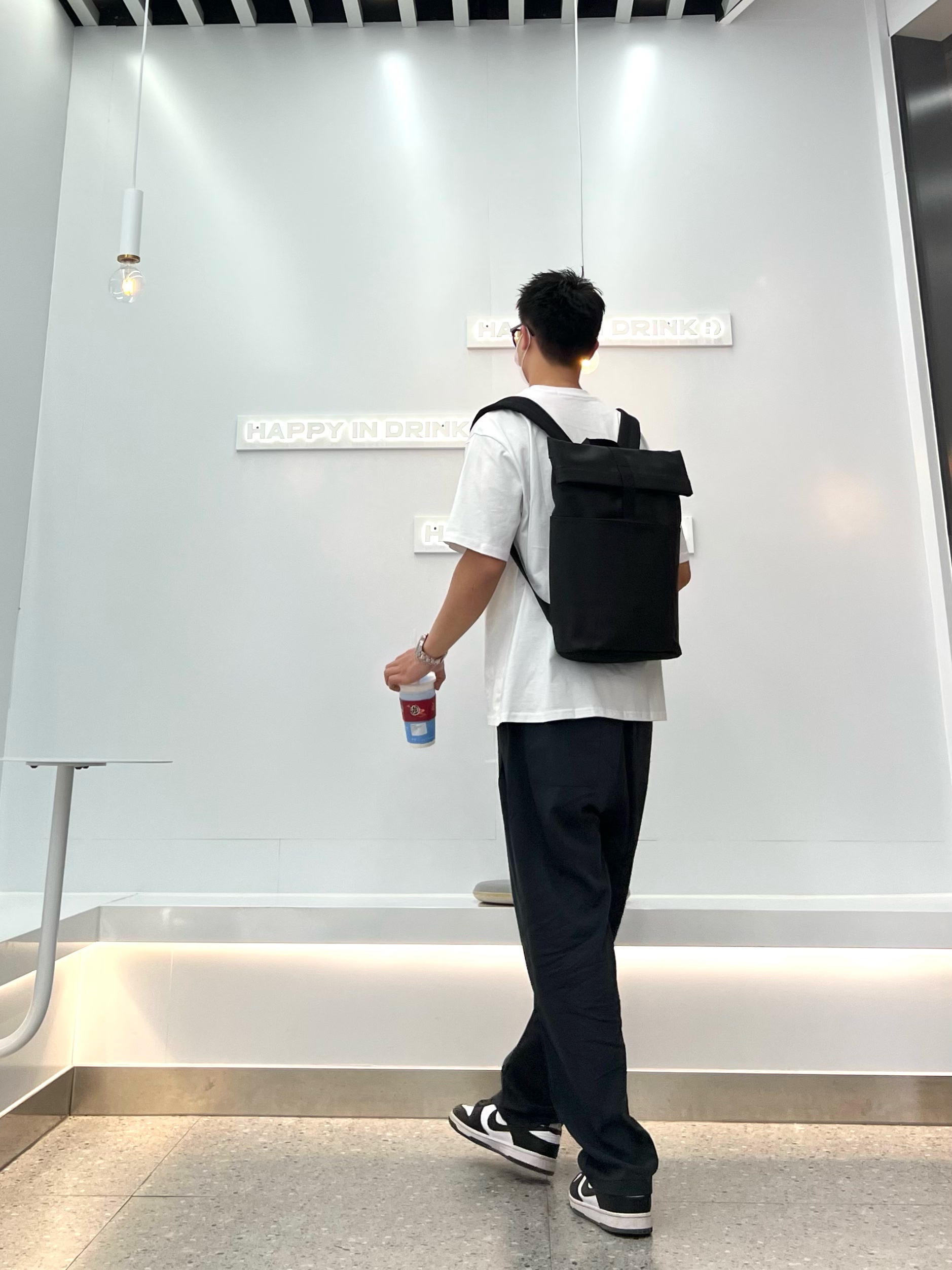 👔冠军白色t恤 👖黑色垂感直筒裤 👟dunk熊猫 🎒黑色双肩包