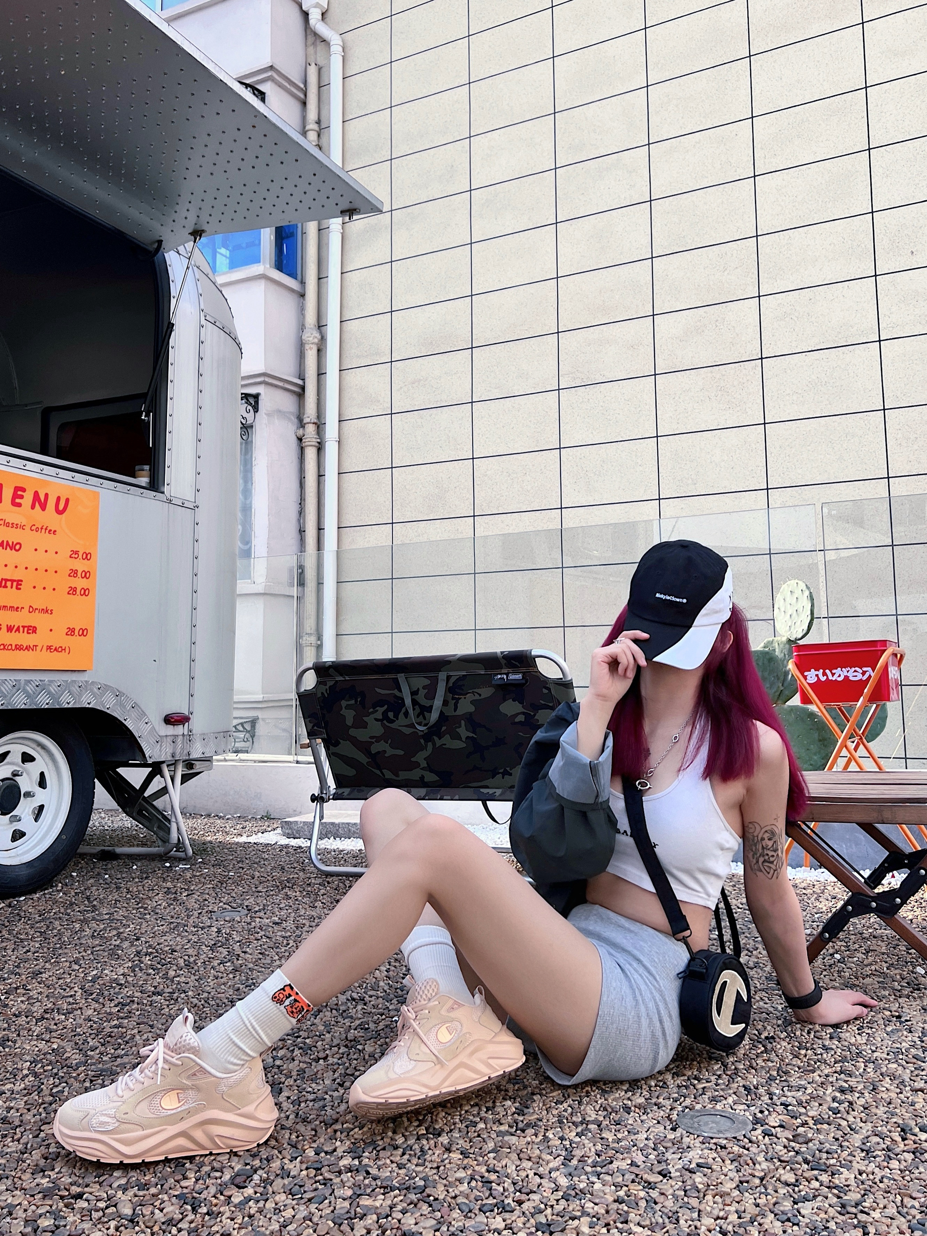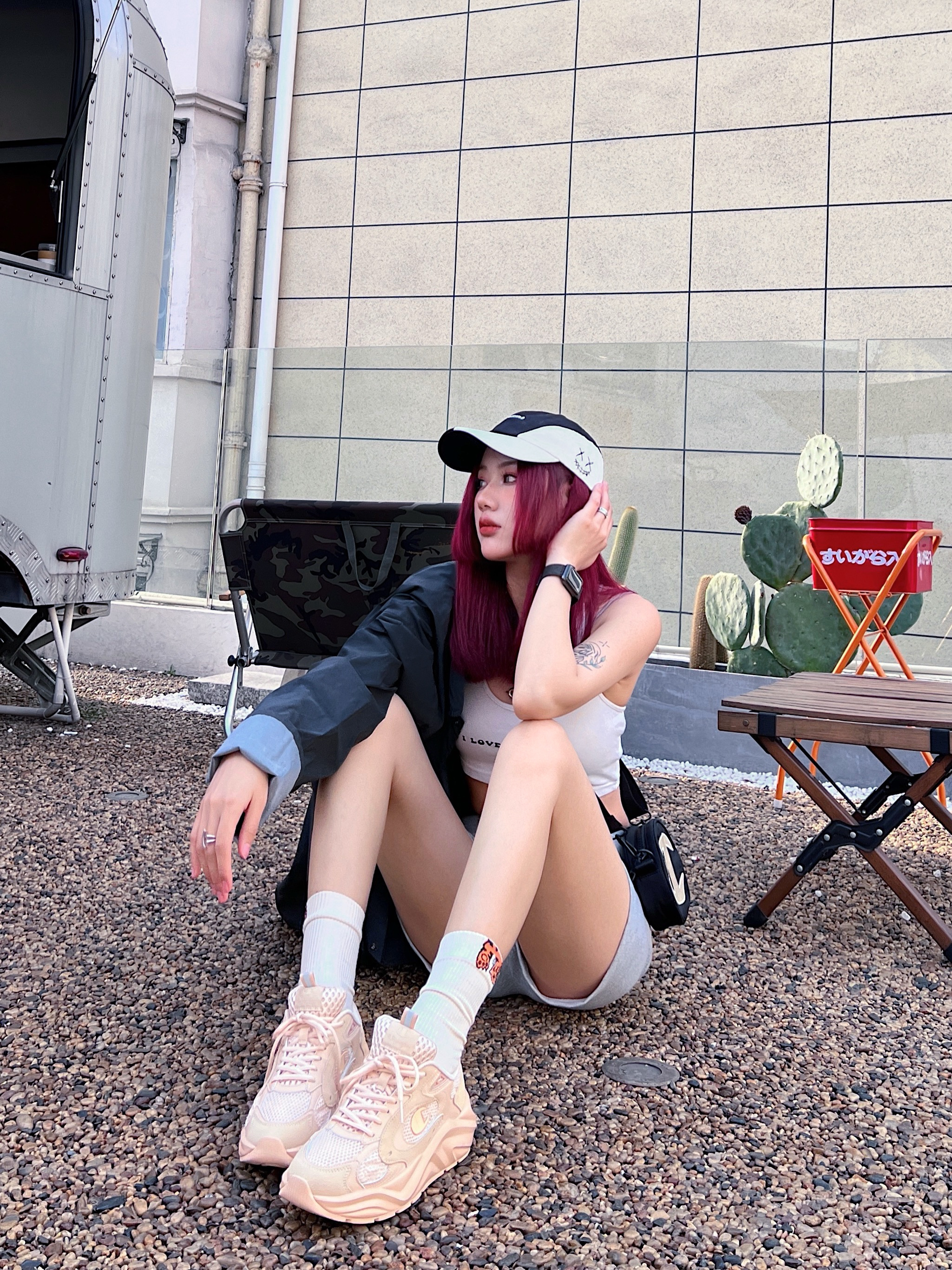 ▫️终于到了可以随便穿衣的季节啦~春天的太阳都特别温柔! ▫️又来到了这个露天咖啡馆 带着我新染的发色来打卡 很难不想咔擦个几百张~ 今天就是说一整个休闲运动辣妹‼️ ▫️穿搭想法: 春天就要把色彩穿在身上~黑白灰三原色 的基础上 可以在鞋子配饰上搞点小动作 就拿我今天穿的Champion鞋来说 颜色很亮 就很吸睛 搭配同色系的袜子还有包包 增加整体造型的丰富性 厚底鞋就有种莫名的可可爱爱~省下了...