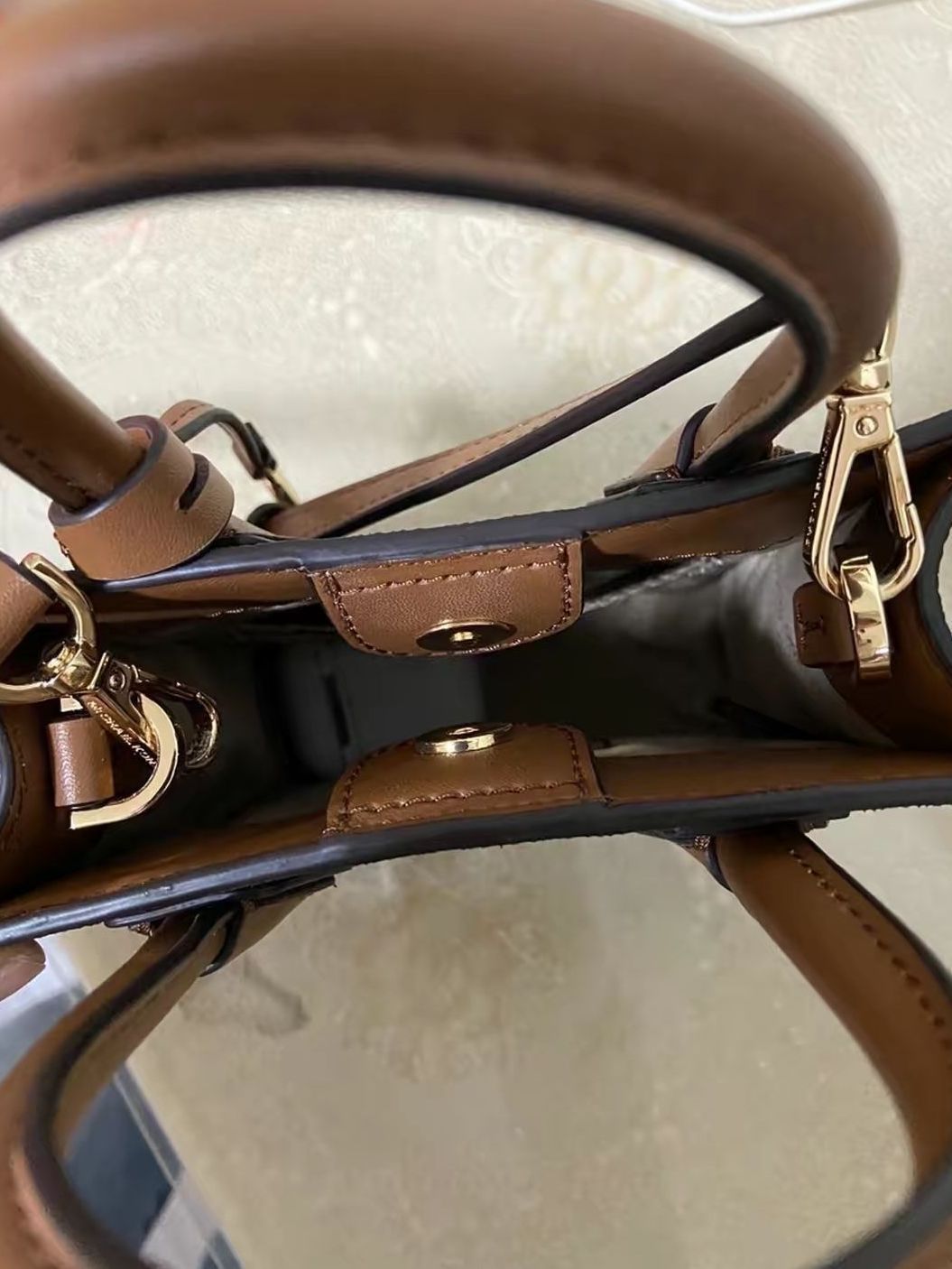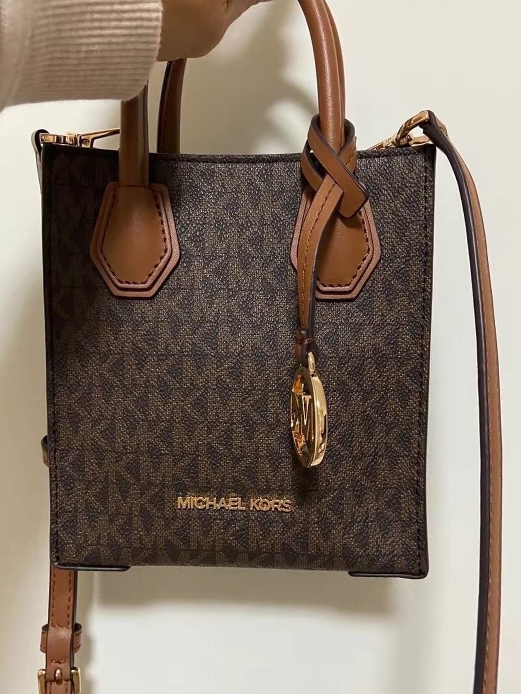 本篇笔记关联了Michael Kors Mercer 迷你 人造革通勤风老花满印LOGO琴谱配牛皮荔枝纹磁扣开合手提单肩斜挎包 橡果棕等商品,为用户提供真实的使用体验和购买参考。
